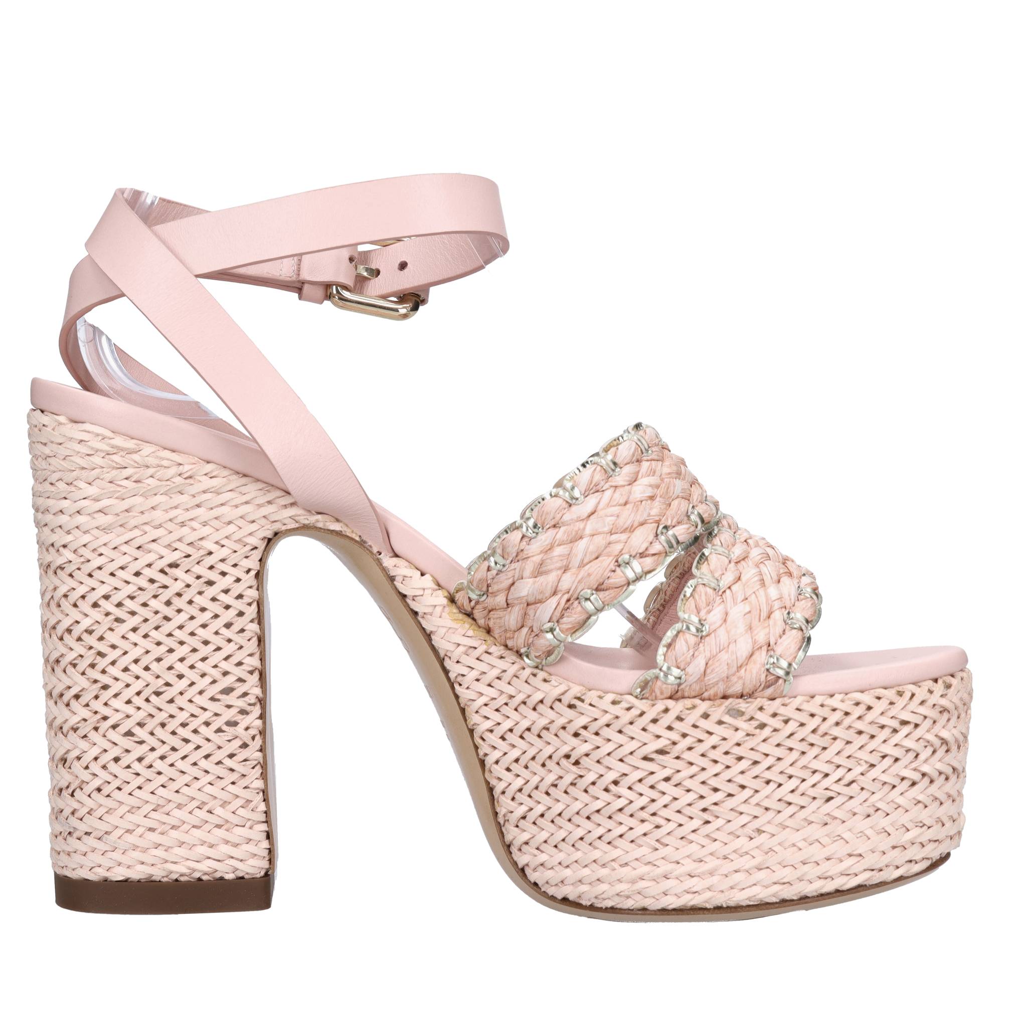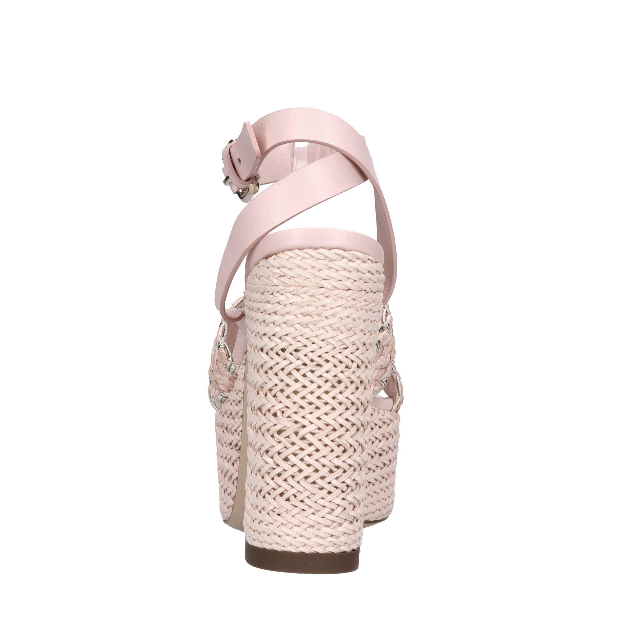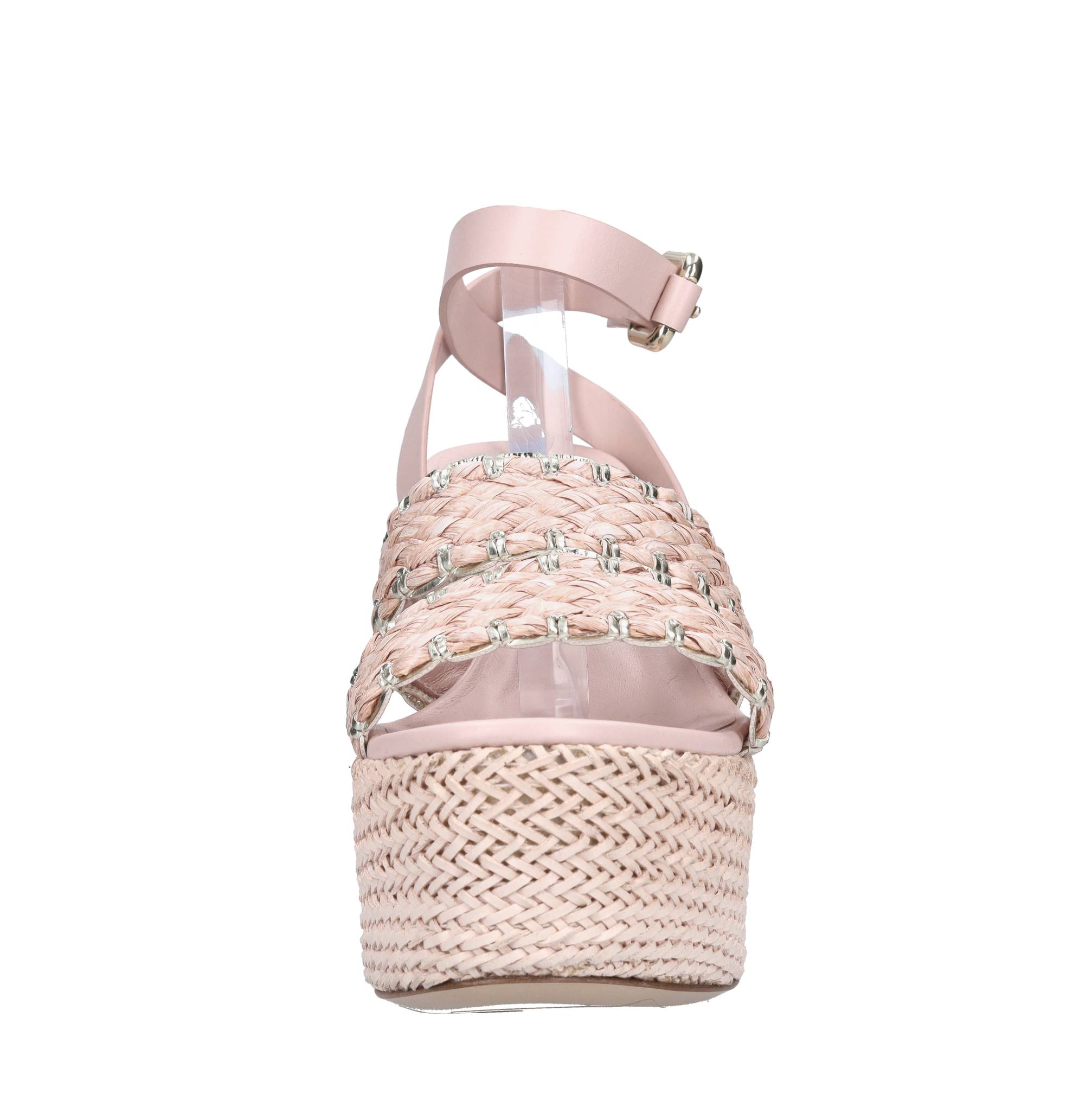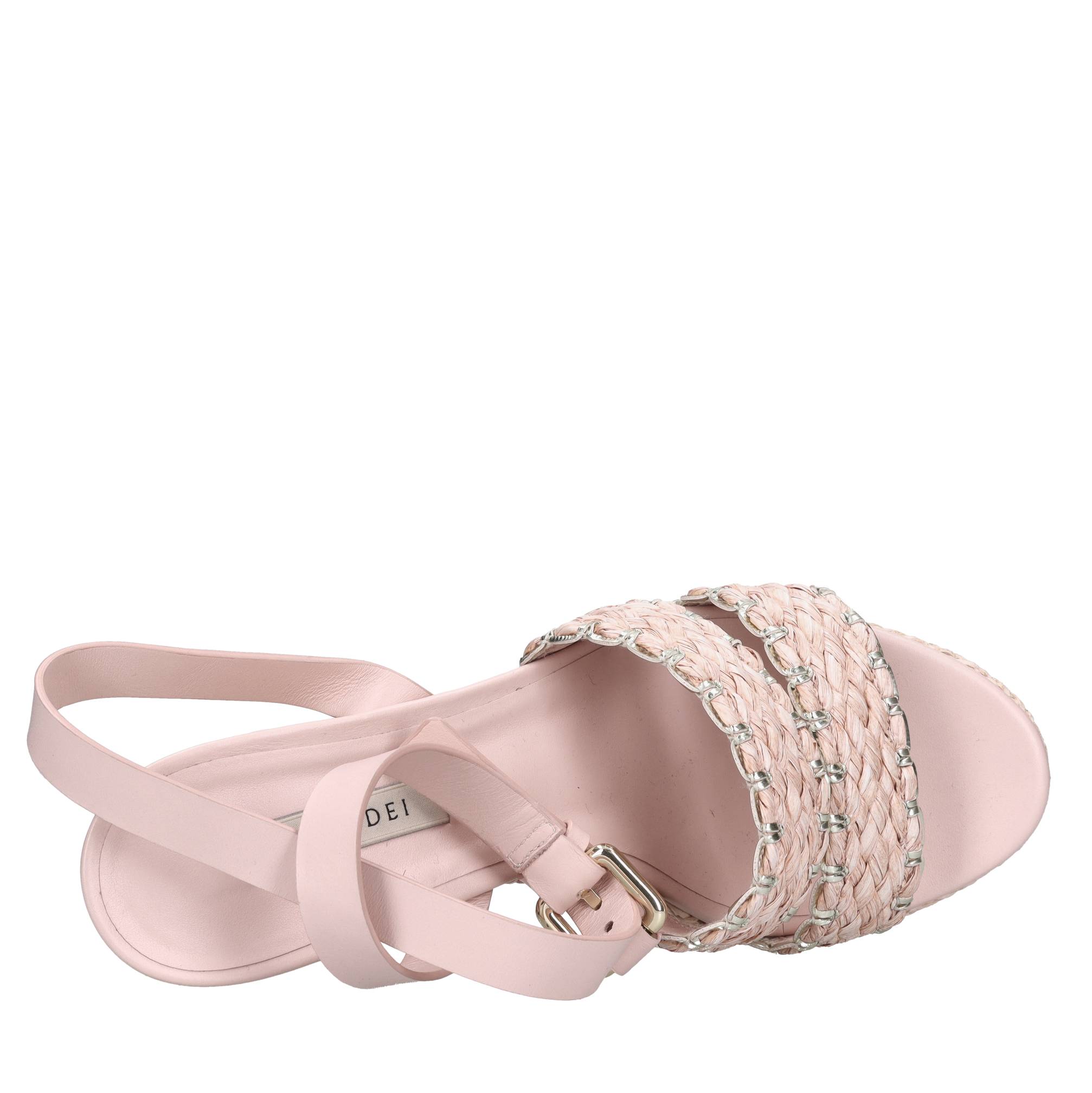 Sandalias de cuero y mob. Suela exterior de cuero. Parte superior interna en la piel y la turba. Muestras. Pequeñas imperfecciones en el cuero. Plaquetas: 5 cm. En la caja neutra.