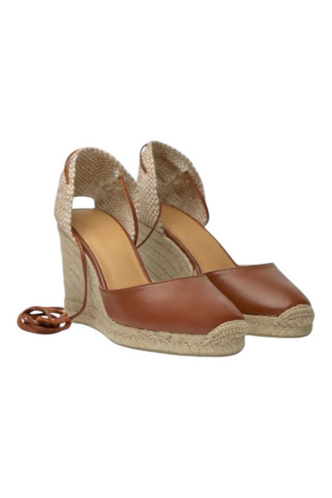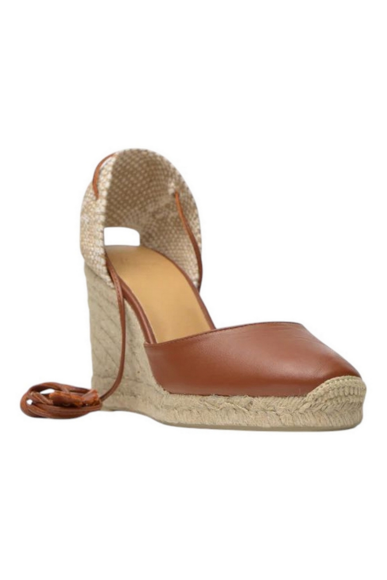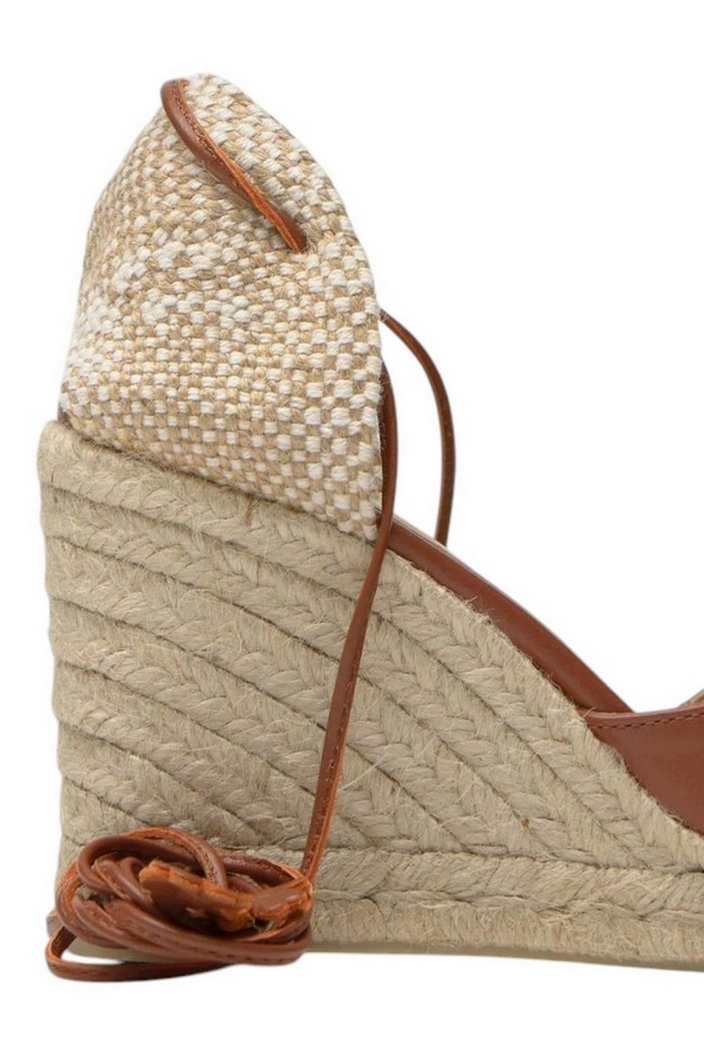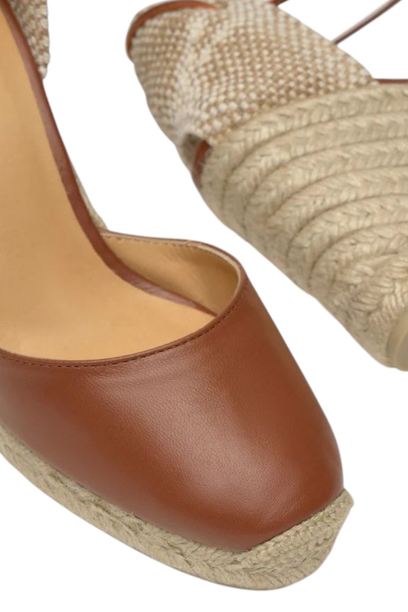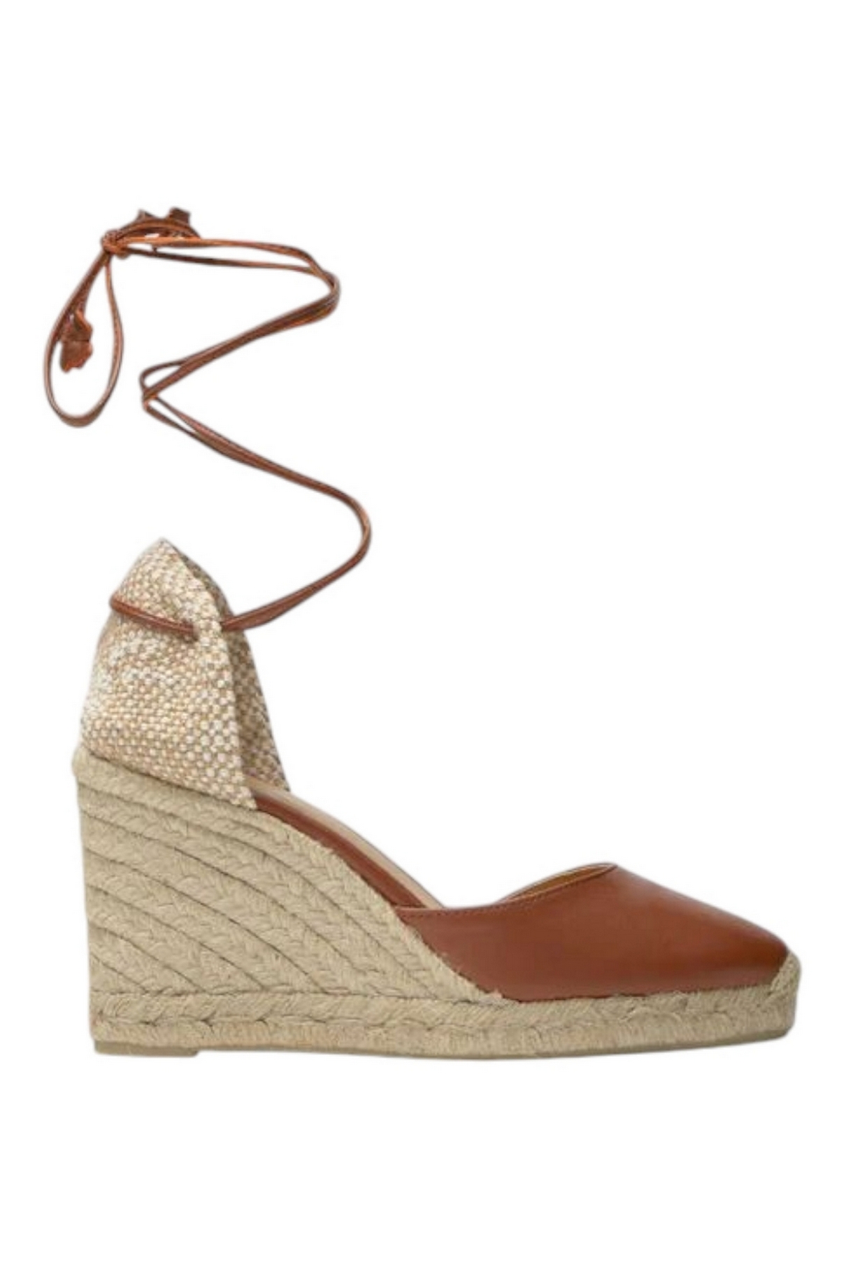 Espadrilla Carina di Castaner en nappa con cierre de cordones de cuero, plantilla acolchada y cuña de 9 cm de jute. Composición: 100% cuero. Zeppa 2 cm. Tacón 7 cm