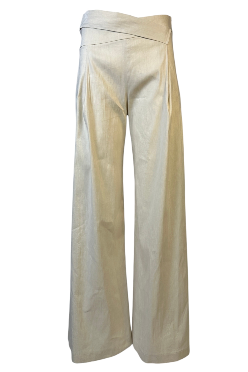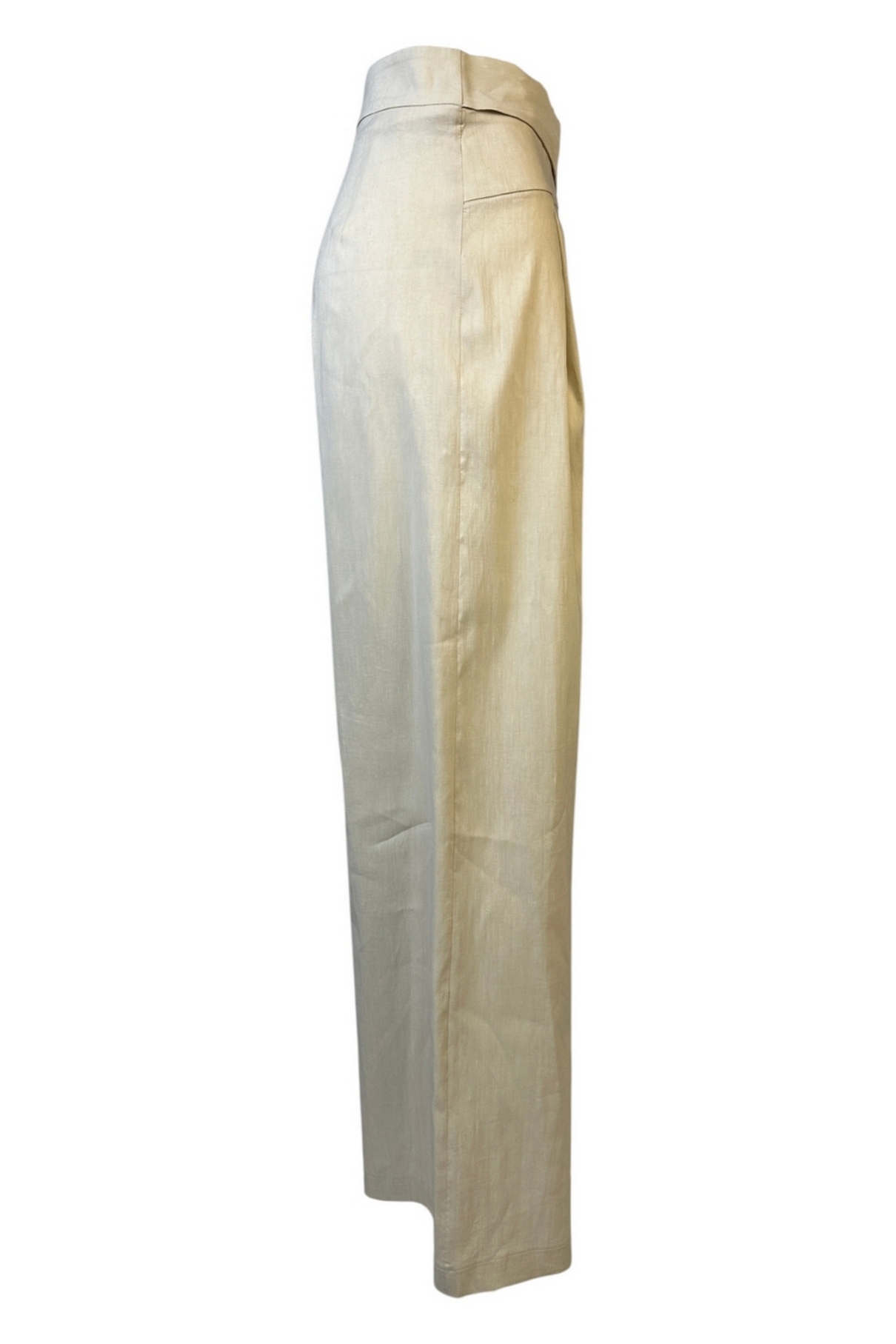 Trousers D.exterior. Modelo de palacio. Pinces en el frente. Detalles intersección en la vida. Cierre lateral. Apto regular. Composición: 69% lino, 31% elastano. Hecho en Italia.