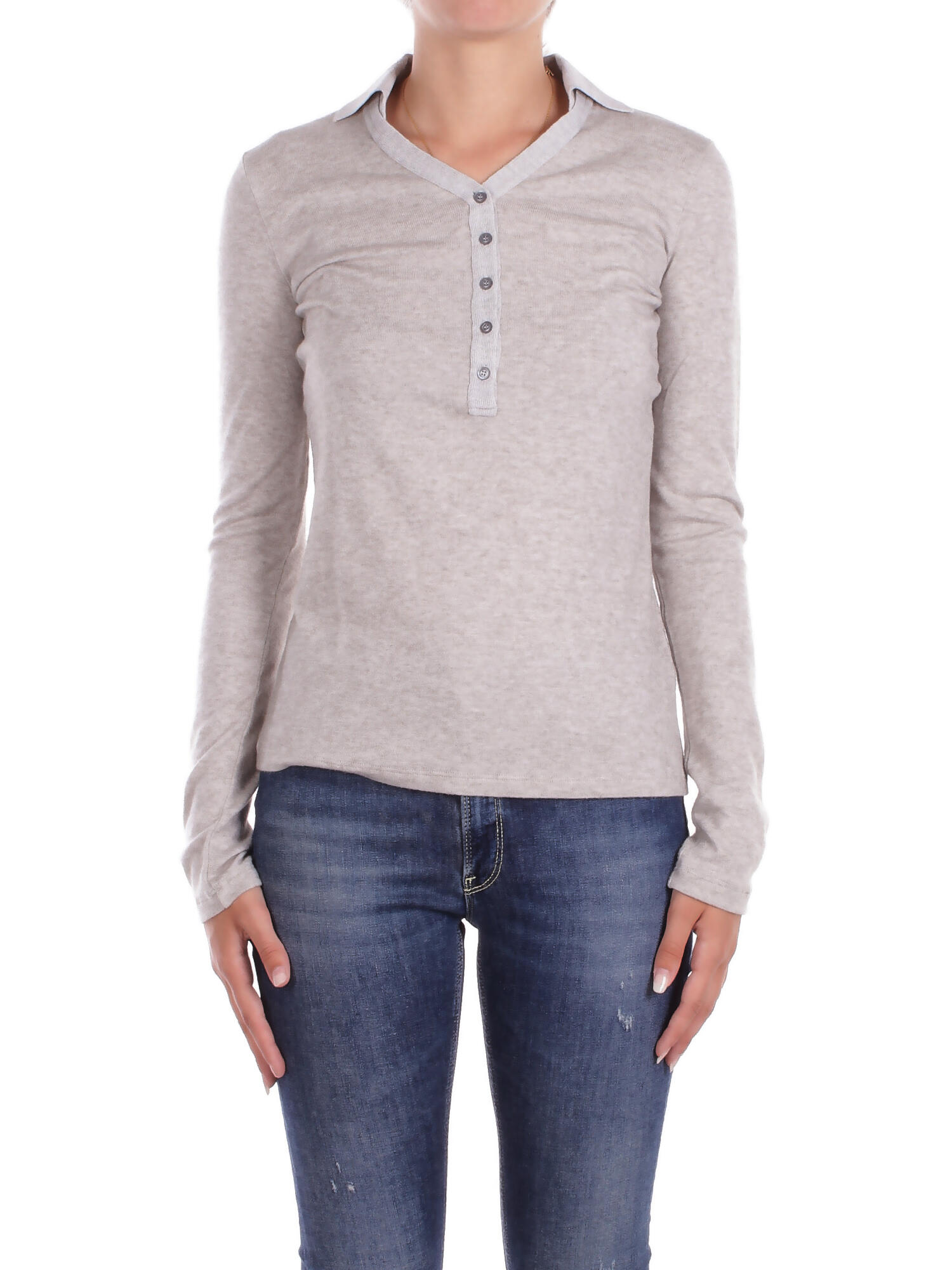 Polo femenino Dondup Logo Rear Cierre con botones Modelo de altura 1.76 cm Tamaño usado : S ita Fit : Composición regular : 50% viscosa 25% poliéster 25% poliamida Código del proveedor: DS055 JS0308XXX903