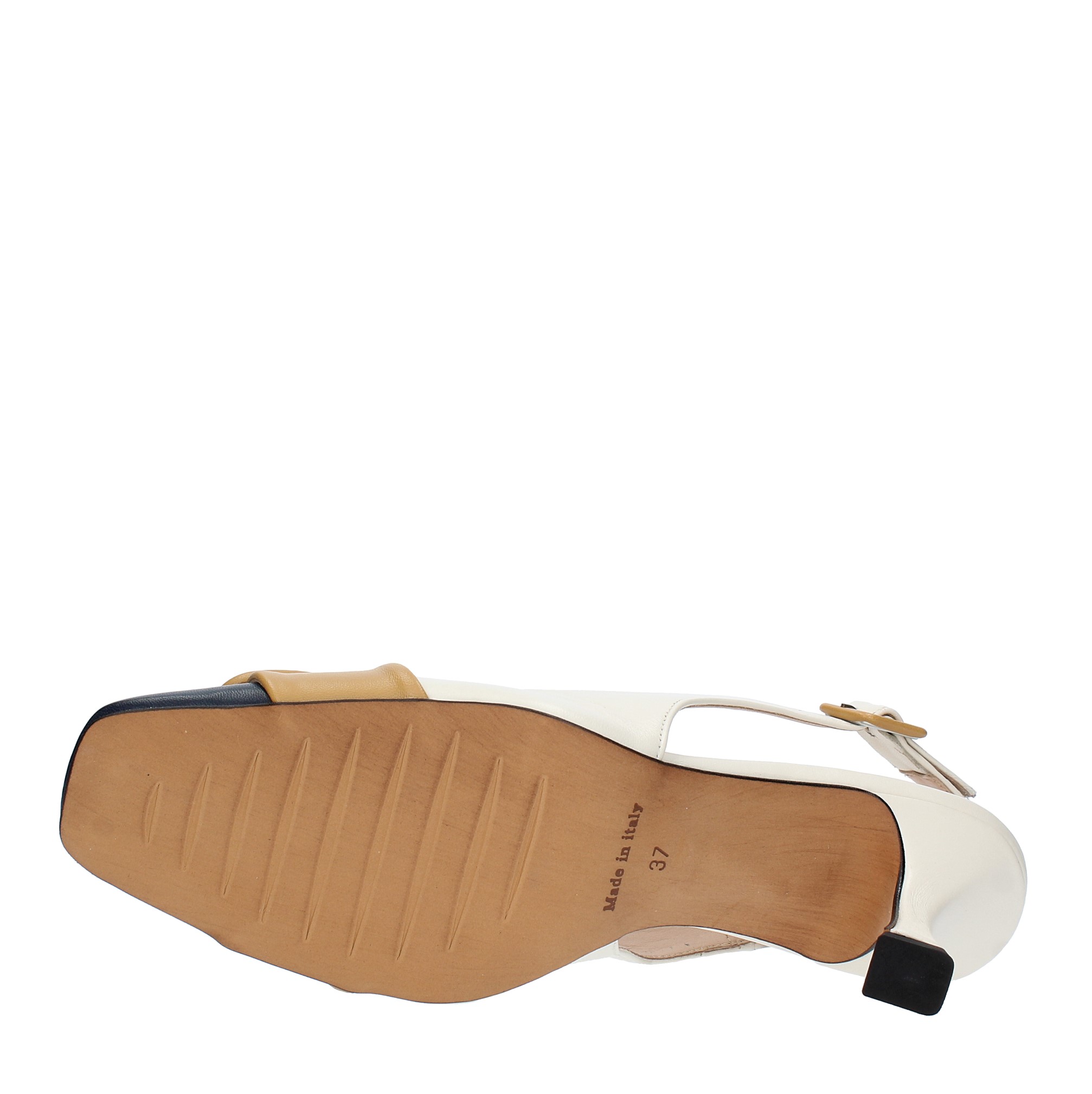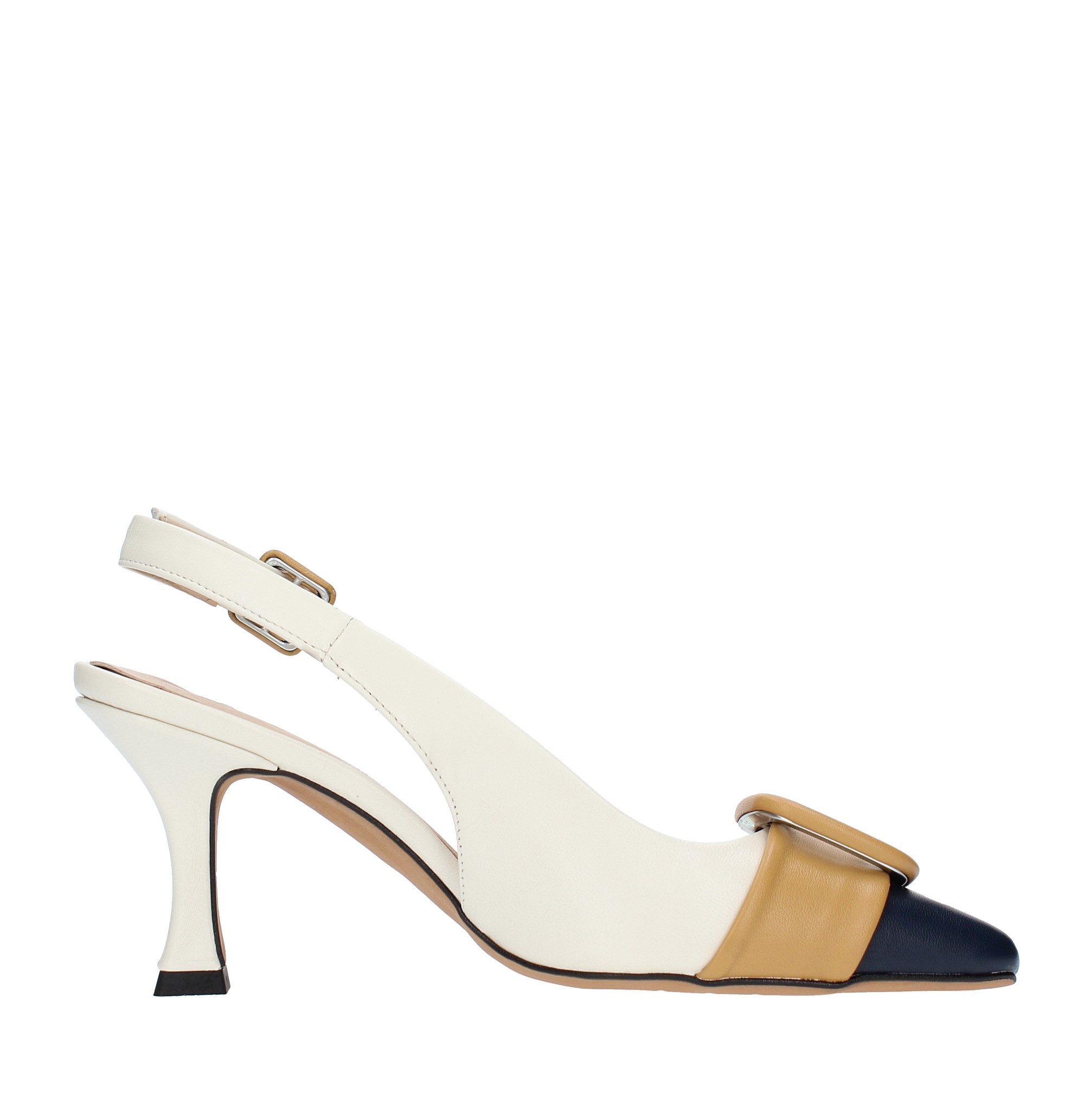 Escote destalonado en napa. Suela exterior en material sintético. Parte superior interna de cuero.