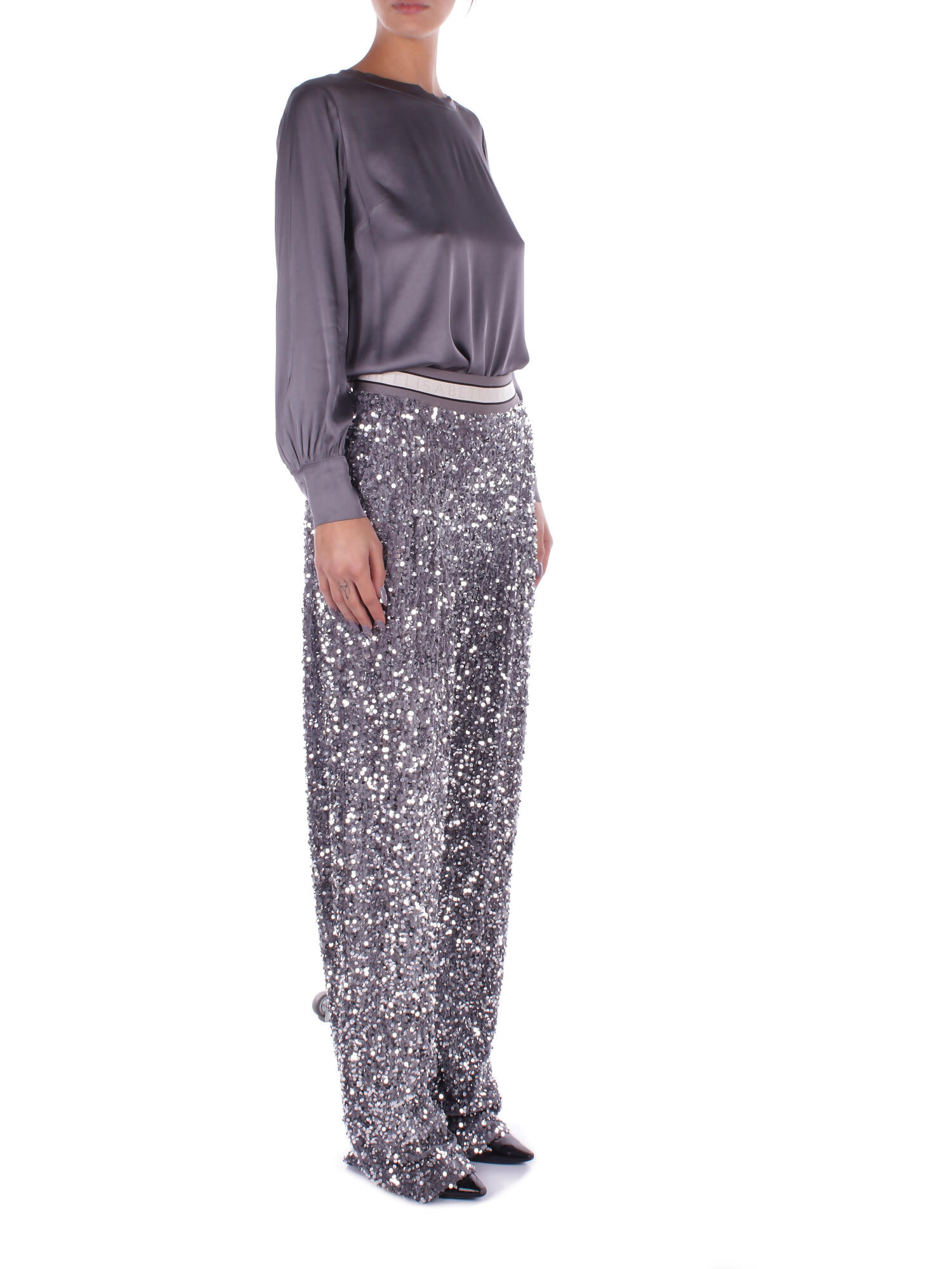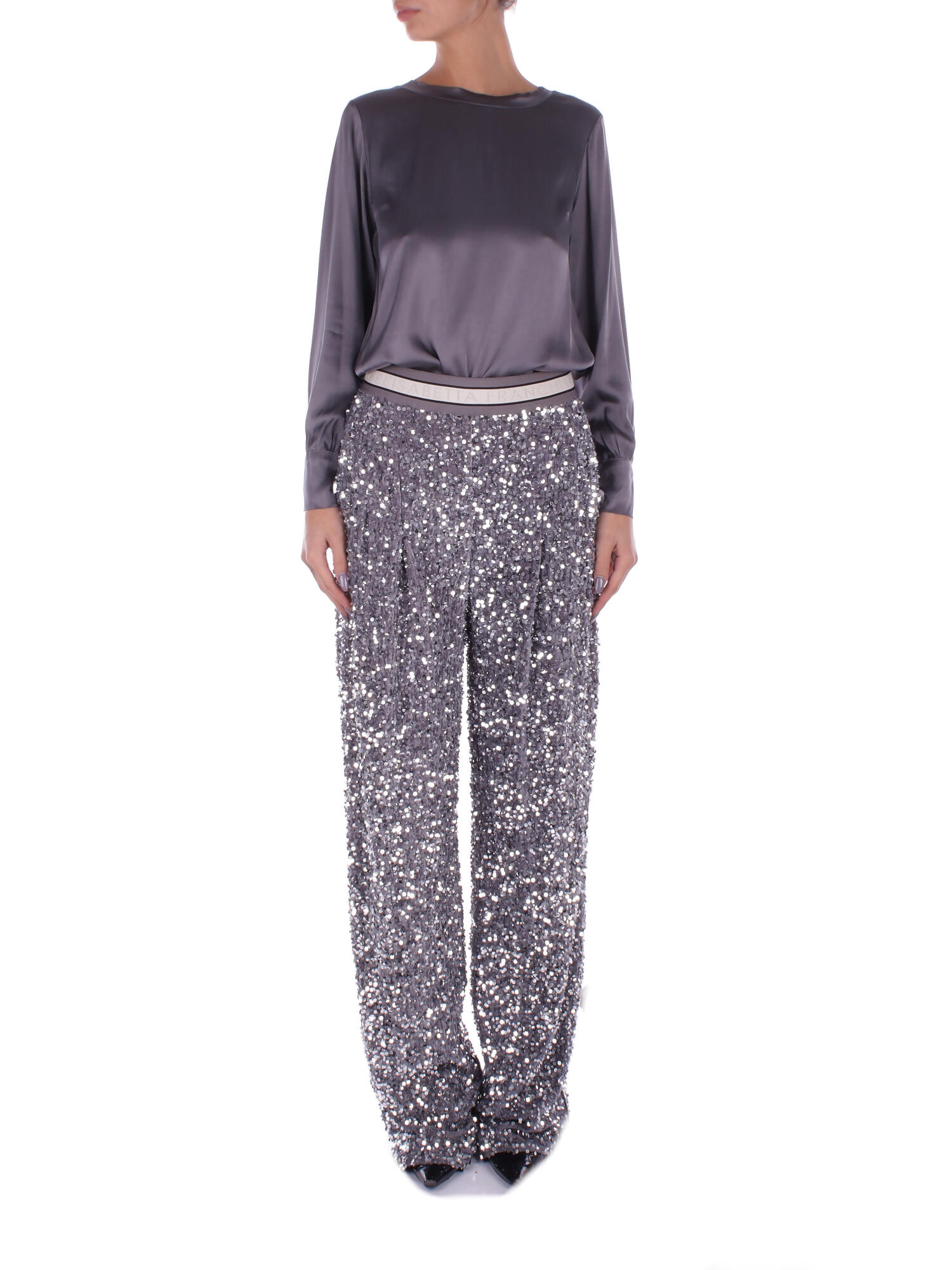 Pantalón principal de mujer Elisabetta Franchi Cintura elástica Dos bolsillos delanteros Altura del modelo: 1,77 cm Corte: regular Talla usada: 40 ita Composición: 100% poliéster Código del proveedor: PA06347E2CG8