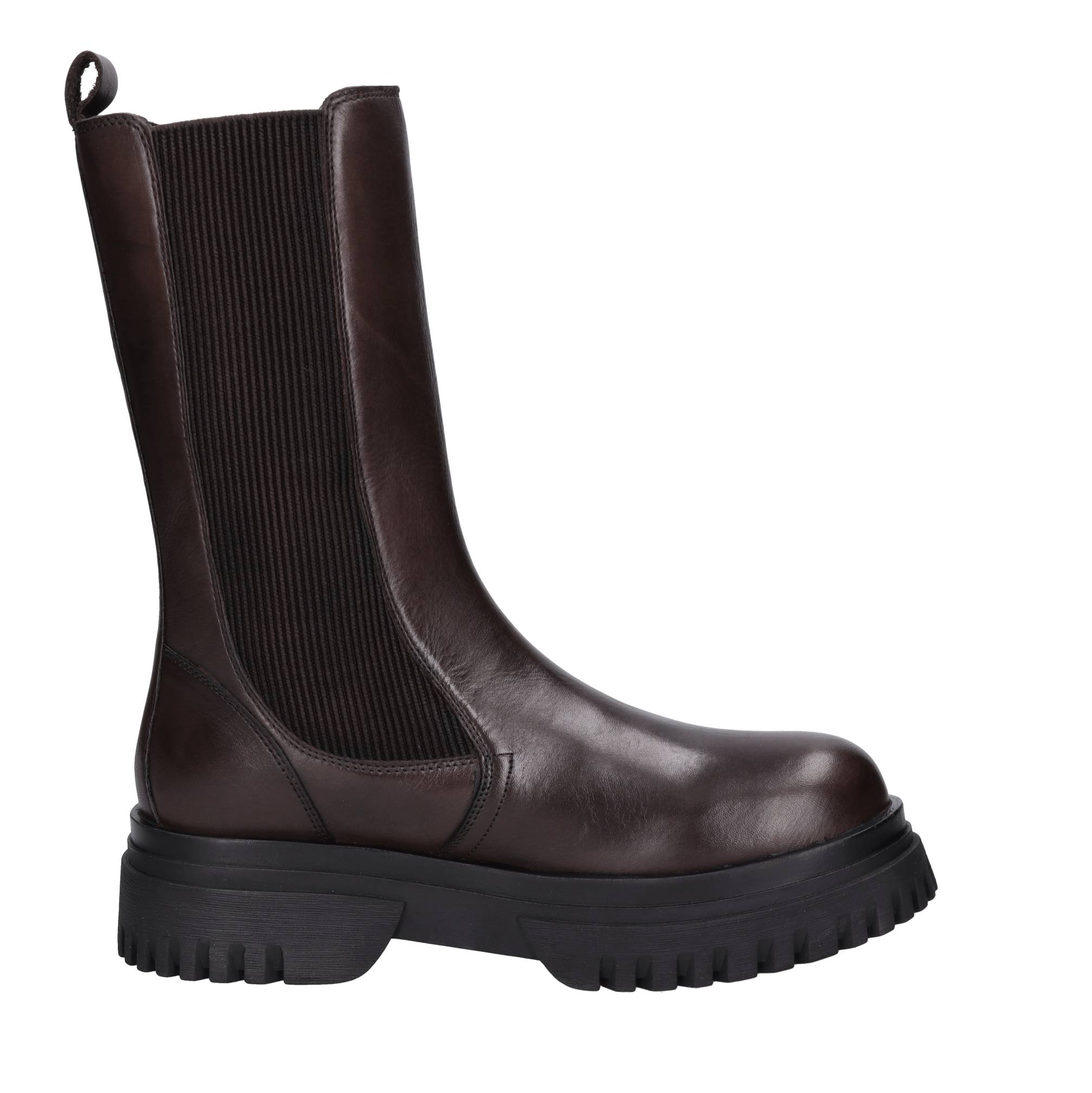 Botines de piel. Suela exterior de goma. Parte superior interna de cuero. Tejido elástico en ambos lados.