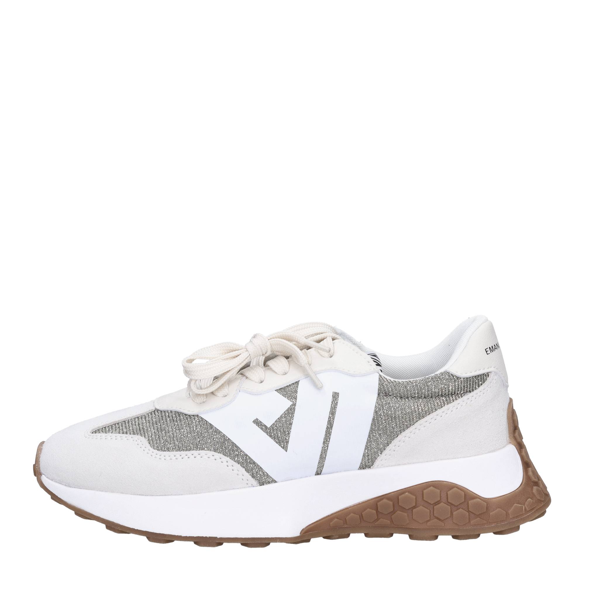 Zapatillas en tejido y ante. Cierre frontal con cordones. Suela exterior de goma. Parte superior interna en tela.