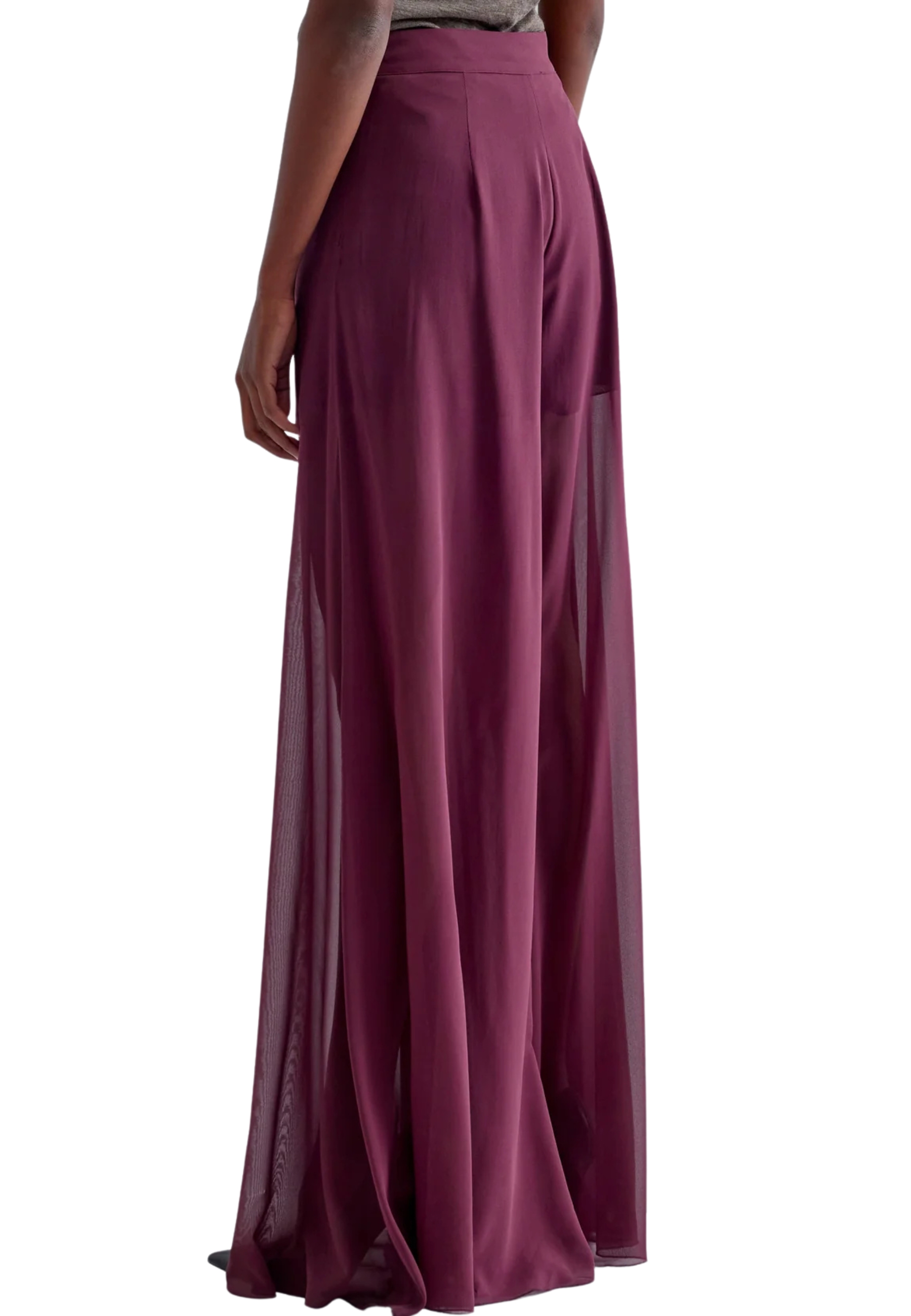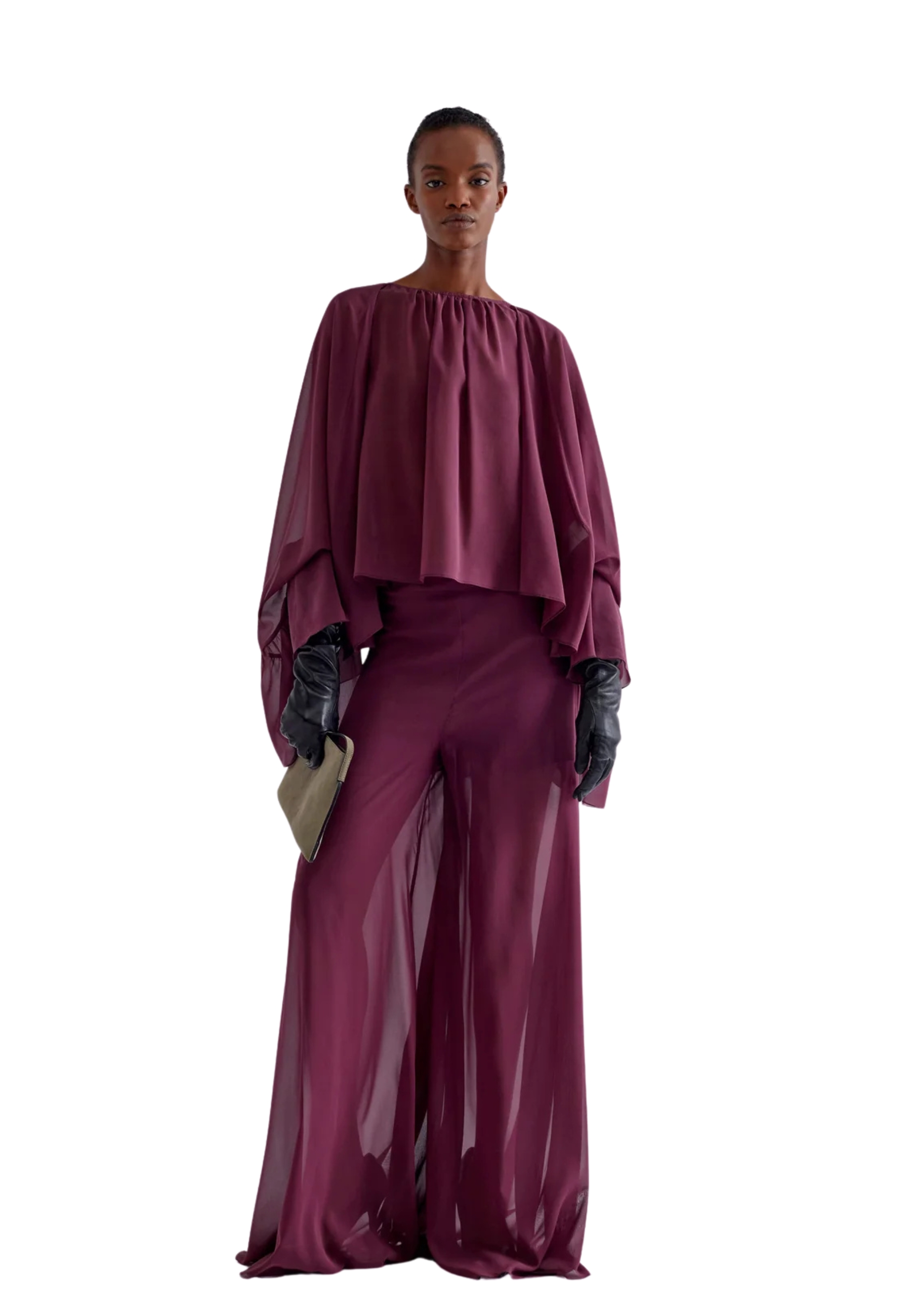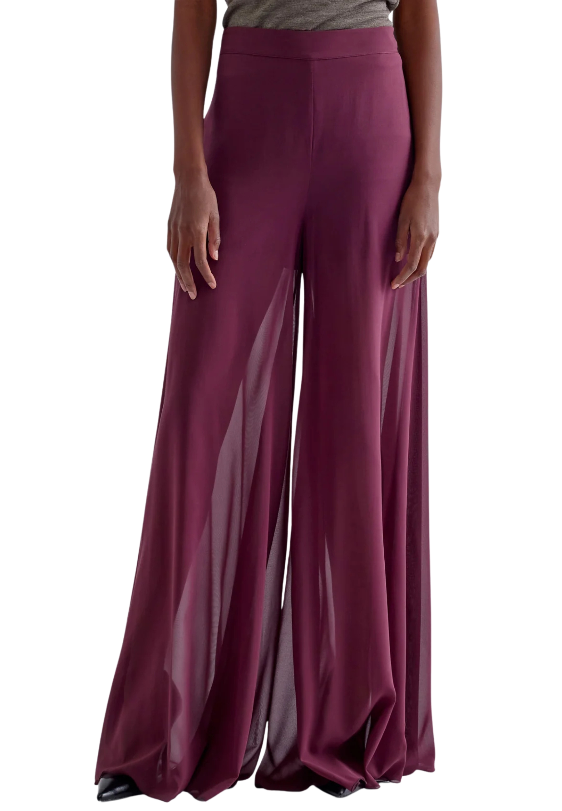 Pantalones largos en georgette, modelo Alta cintura con cremallera invisible en el lado, pierna ancha de la línea a la parte inferior.