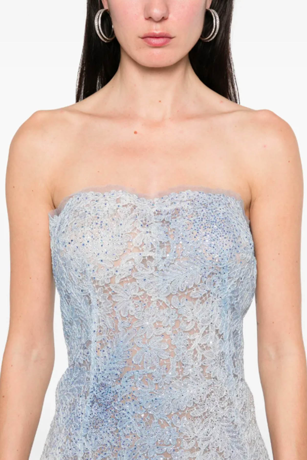 Modelo con bustier, cierre trasero con cremallera oculta, forro parcial, espaciamiento central en la espalda, decoración con piedras preciosas, diseño adherente y longitud media. Composición algodón 39%, poliéster 26%, elastano 18%, poliamida 17% Hecho en Italia