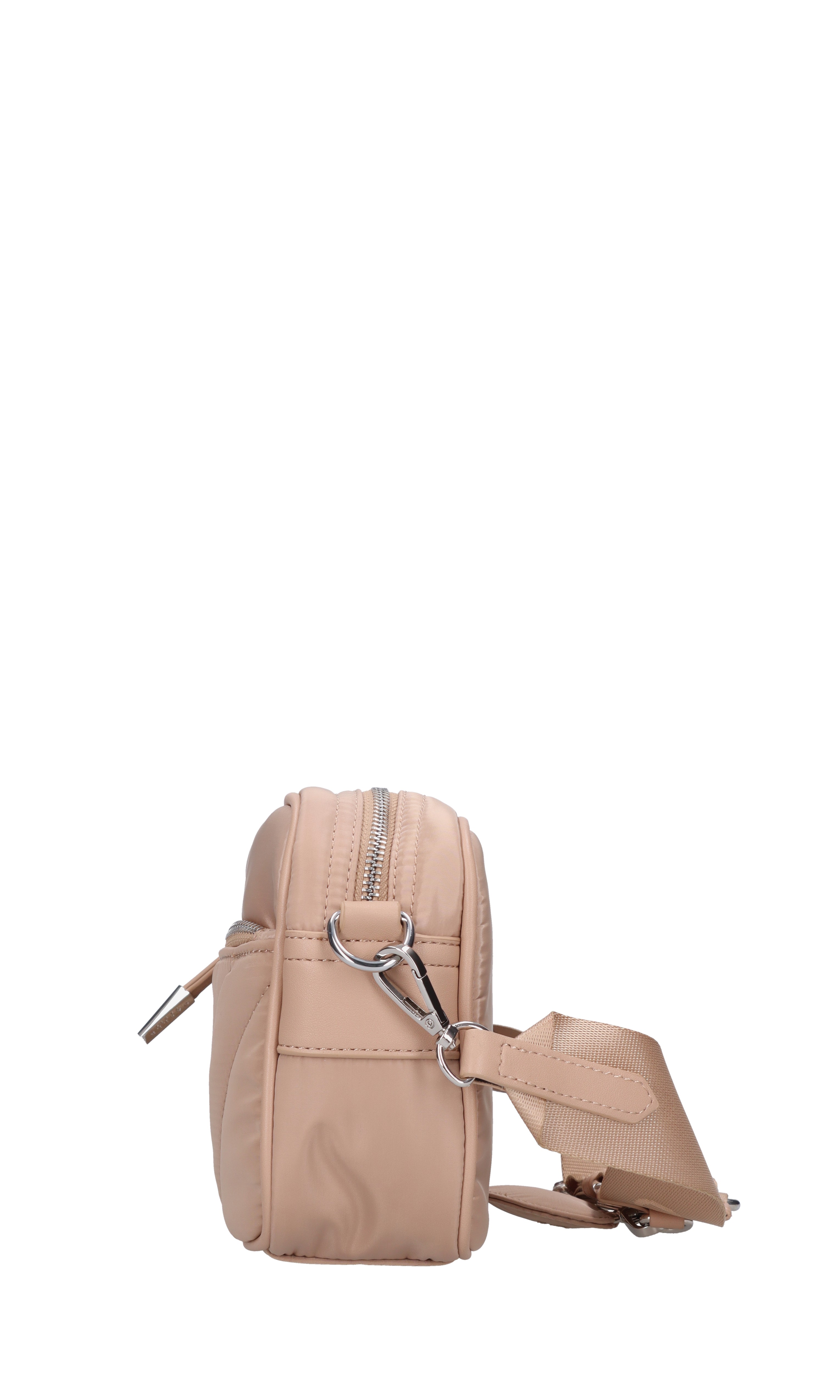 Bolsa de tela. Cierre con cremallera. 1 compartimento. Correa de hombro ajustable y extraíble. Encanto extraíble.