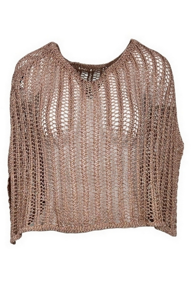 Mantella Gaynor Bongard en lurex. Procesamiento de red. Composición: 80% viscosa, 20% fibra metálica. Hecho en Italia.