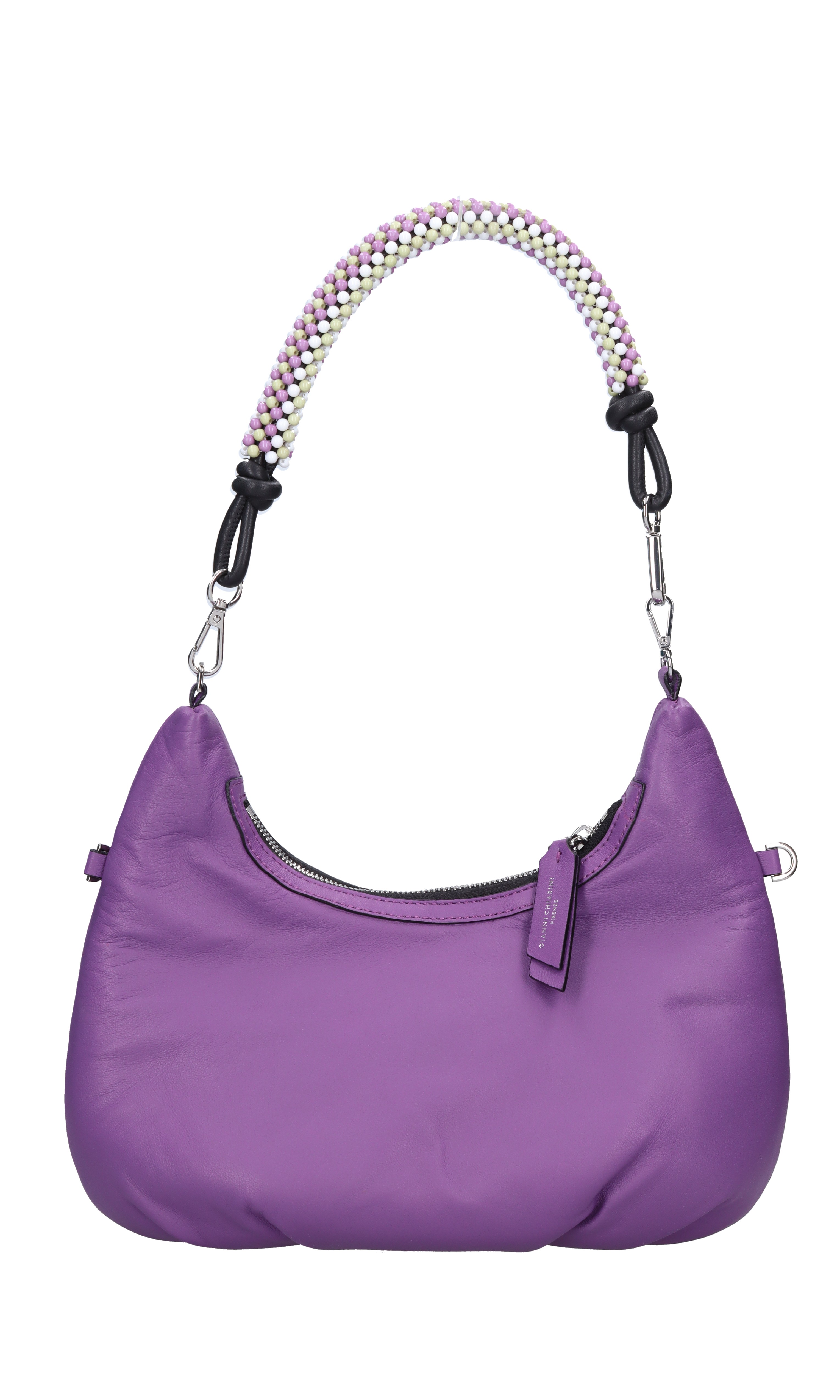 Bolso bandolera de piel para adolescente. Color platino. Cierre con cremallera. 1 compartimento. Asa y bandolera extraíbles y ajustables.