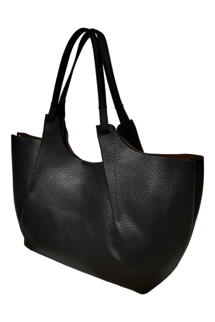 Bolso de Dua Gianni Chiarini. Destaca por un diseño simple pero contemporáneo. Fabricado en piel suave con grano maxi, tiene un compartimento mono extraíble con un embrague interno, perfiles superiores en cuero martillado y dobles mangos en tono. Práctica y esencial, es la bolsa ideal para completar el aspecto de cada mujer. Se puede llevar a mano o cruzbody gracias a la correa de hombro que tiene. Tamaño: 24x27x12 cm.
