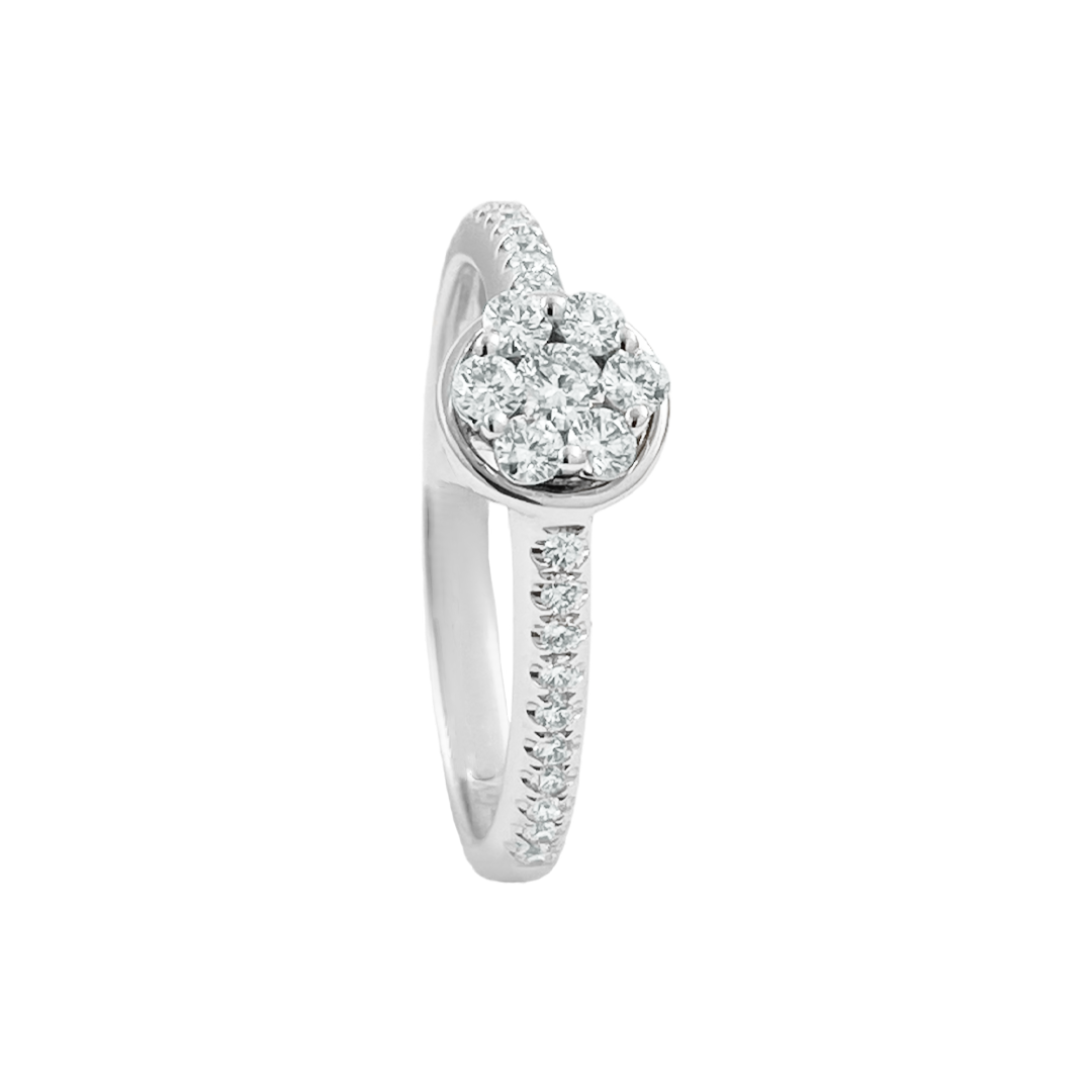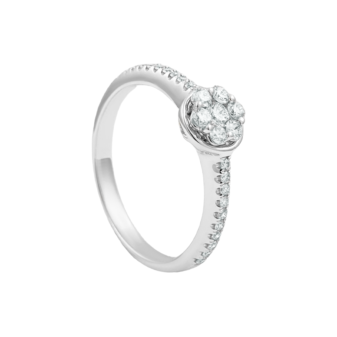 Anillo de oro blanco 750% Modelo solitario con diamantes corte brillante.
