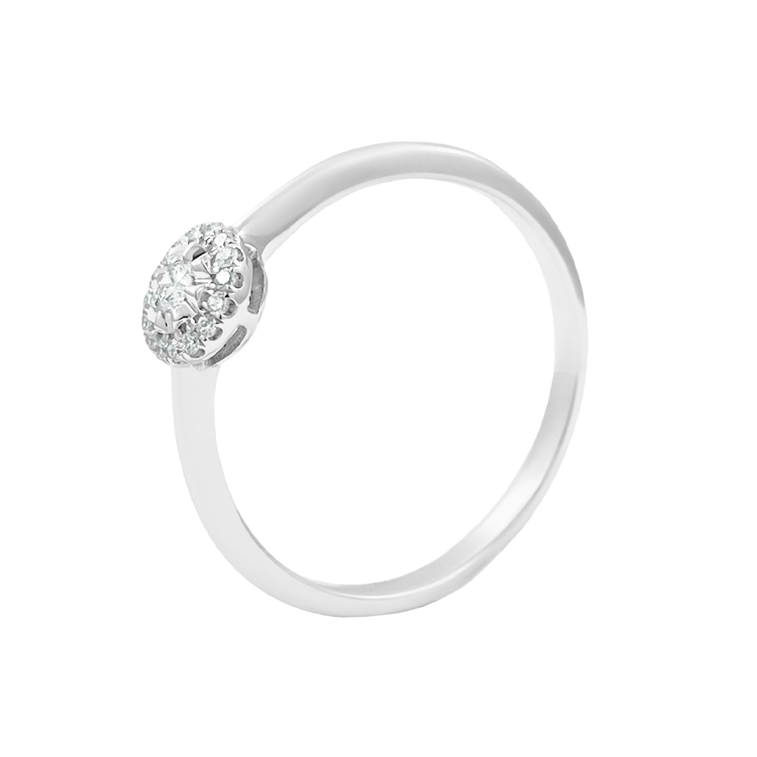 Anillo de oro blanco 750% Modelo solitario con diamantes corte brillante.