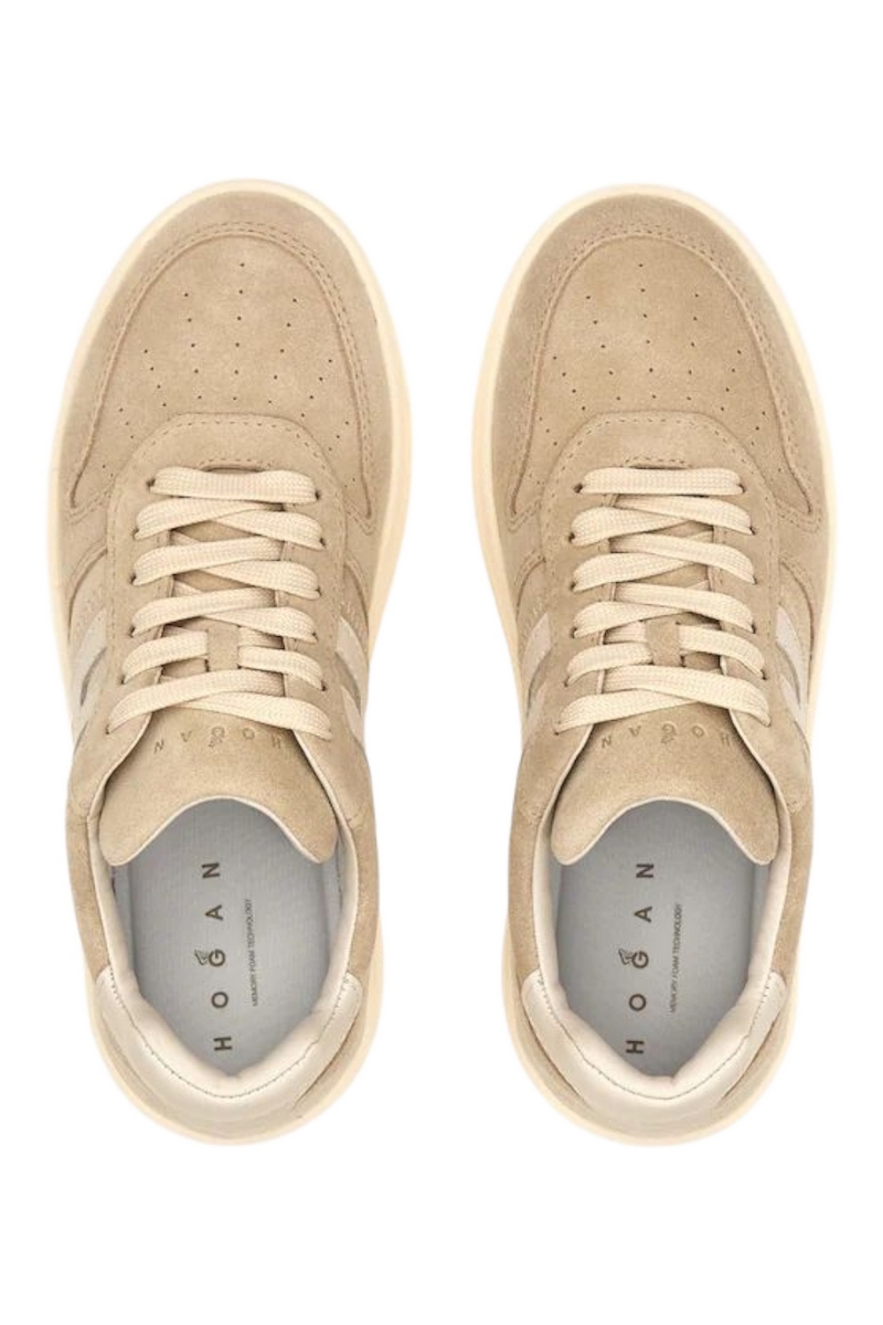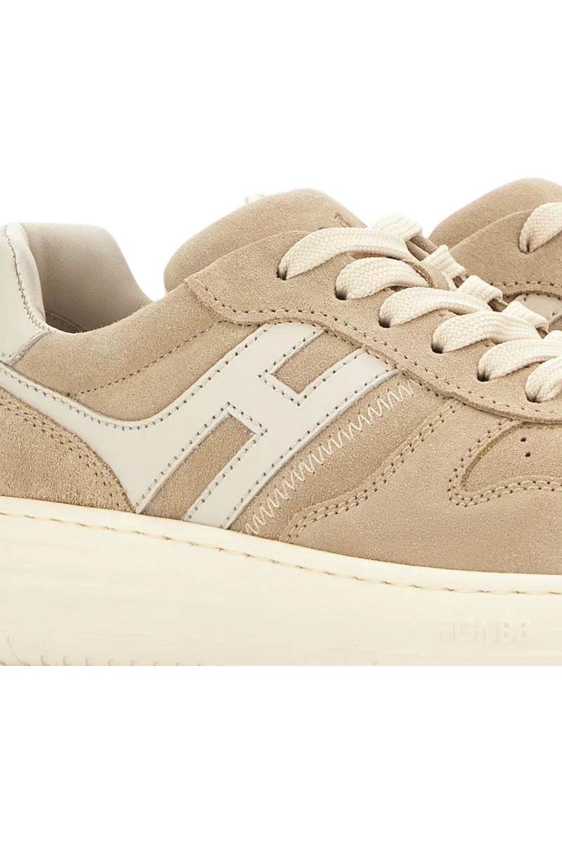 Sneakers Hogan H630. Combinan líneas inspiradas en el mundo del baloncesto y estilos típicos de la marca. La parte superior de la sueda con insertos de cuero liso se caracteriza por una H alargada que gira alrededor del tacón. La suela está en extralight eva, con logotipo grabado en el lado y líneas sombreadas que reinterpretan los icónicos surcos de Rebel. Debe-tener del armario contemporáneo, este modelo dinámico se complementa con una plantilla de espuma de memoria que garantiza suavidad y amortiguación. Hecho en Italia. Suede superior. H lado y detalles en cuero liso. Suela de espuma de memoria de 9 mm. Suela de goma. Altura total 4 cm. Instrucciones de cuidado y mantenimiento incluidos. Funda de tela incluida. Incluye un par de cordones adicionales.