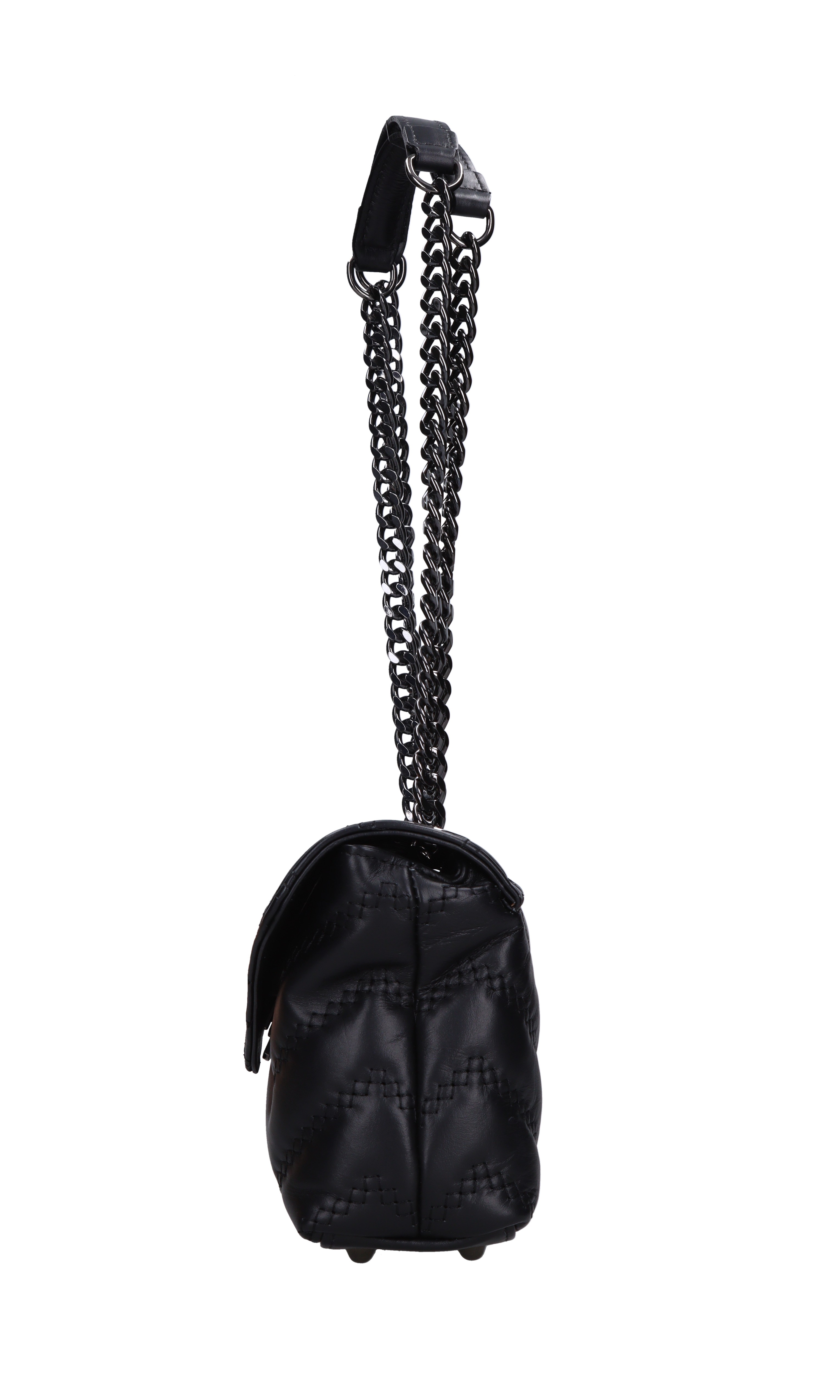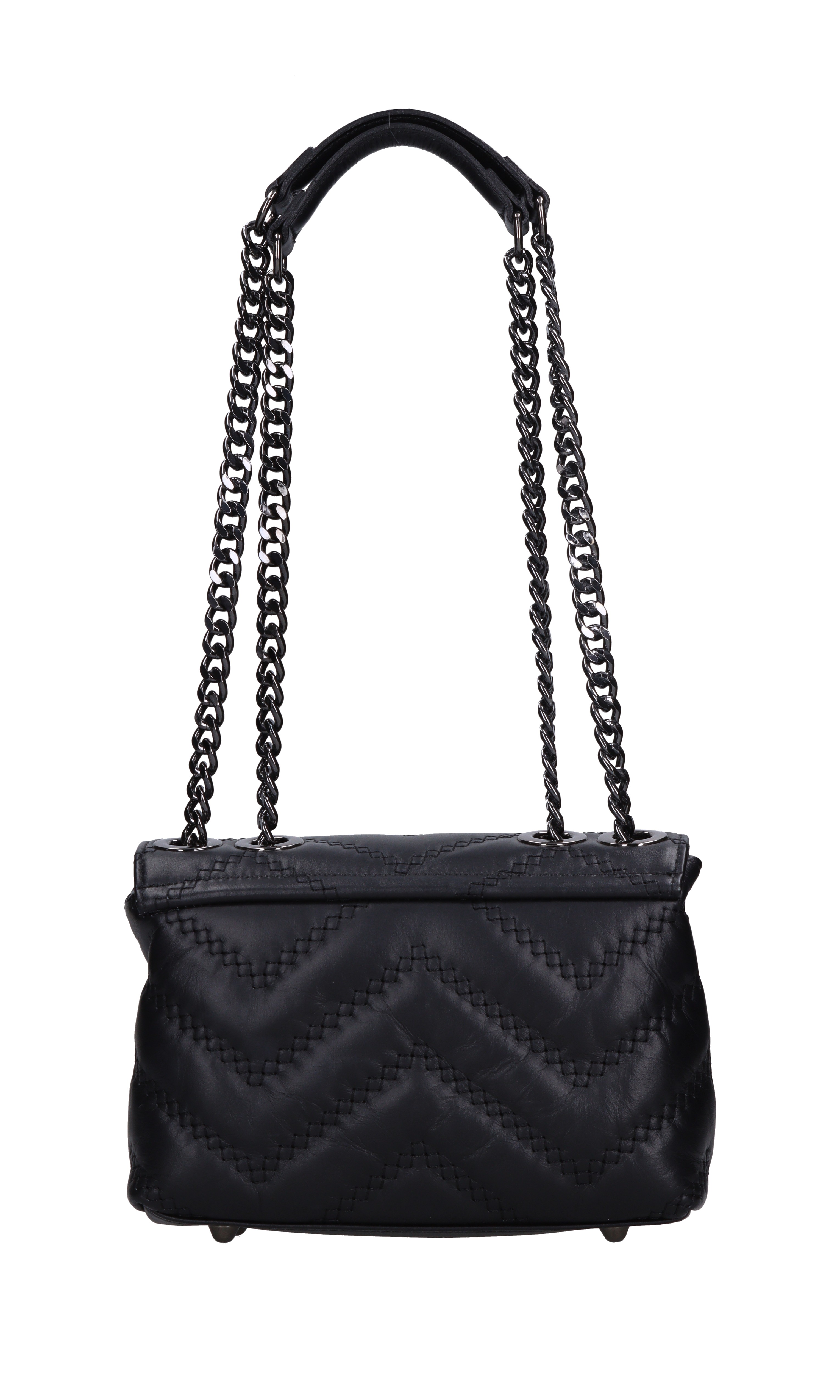 Bolso de cuero. 3 departamentos. Cierre con solapa con botón de cierre. El hombro de la cadena principal. Enganchado en una cucaracha transparente.