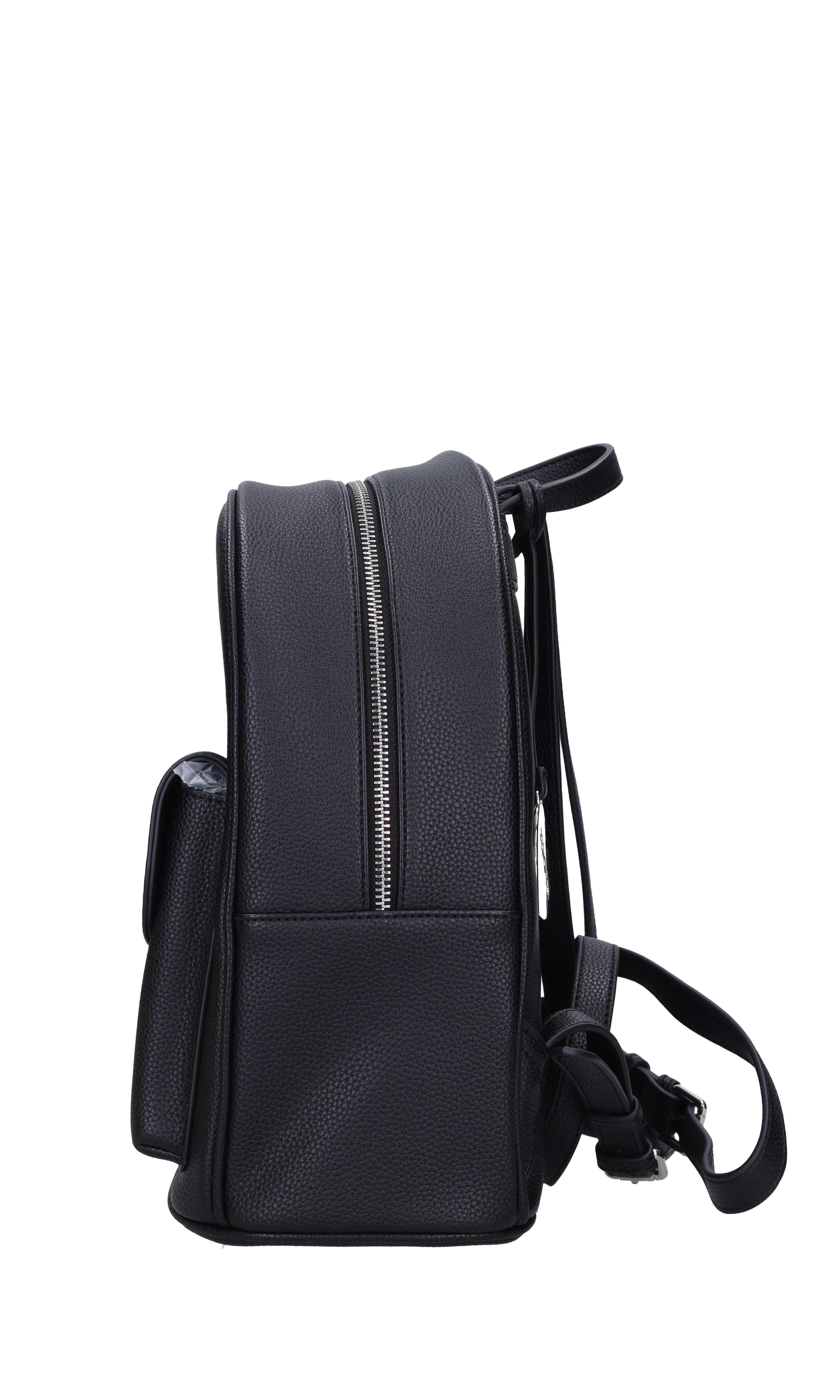 Mochila de cuero Faux. 1 Comparto. Cierre de cremallera. Charm extraíble. Bolsillo con cierre de solapa con botón automático. Enganchado en una cucaracha transparente.