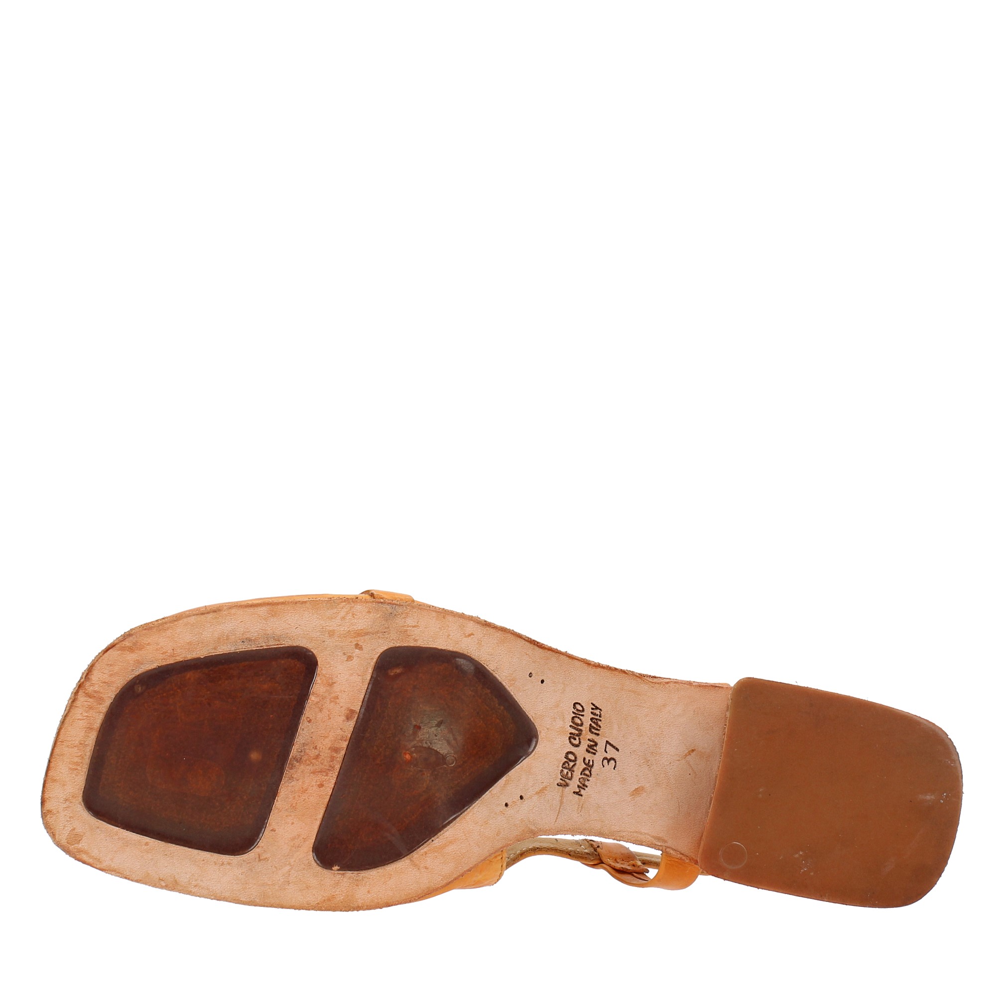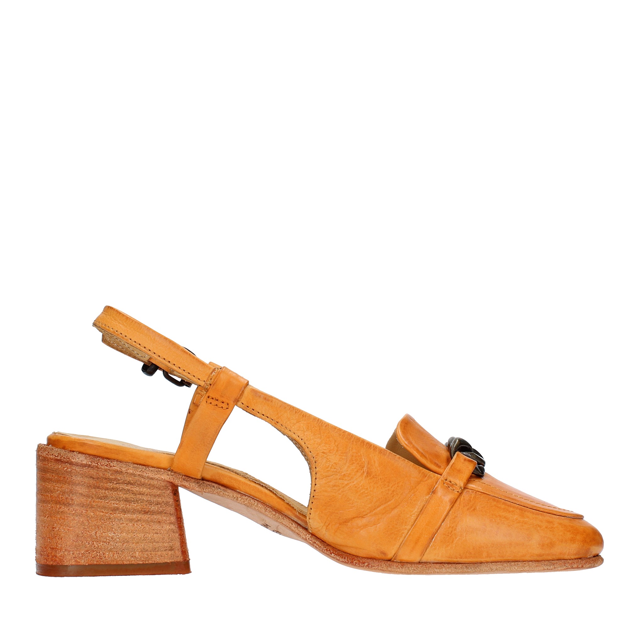 Salón destalonado en piel. Suela exterior de piel y goma. Parte superior interna de cuero. Este producto fue fabricado íntegramente en Italia y sometido a un tratamiento de lavado centrífugo donde cada irregularidad es una ventaja y no un defecto.