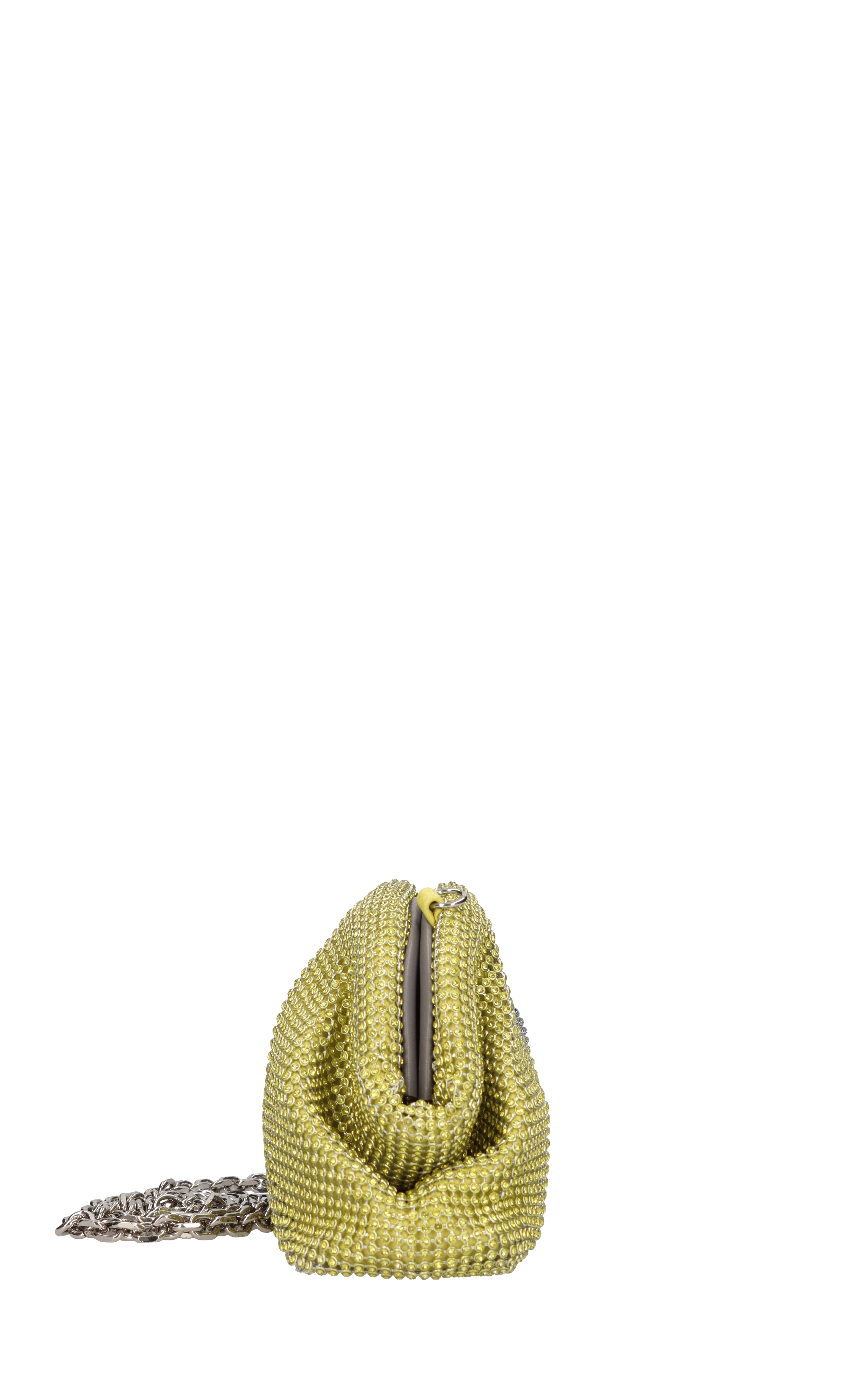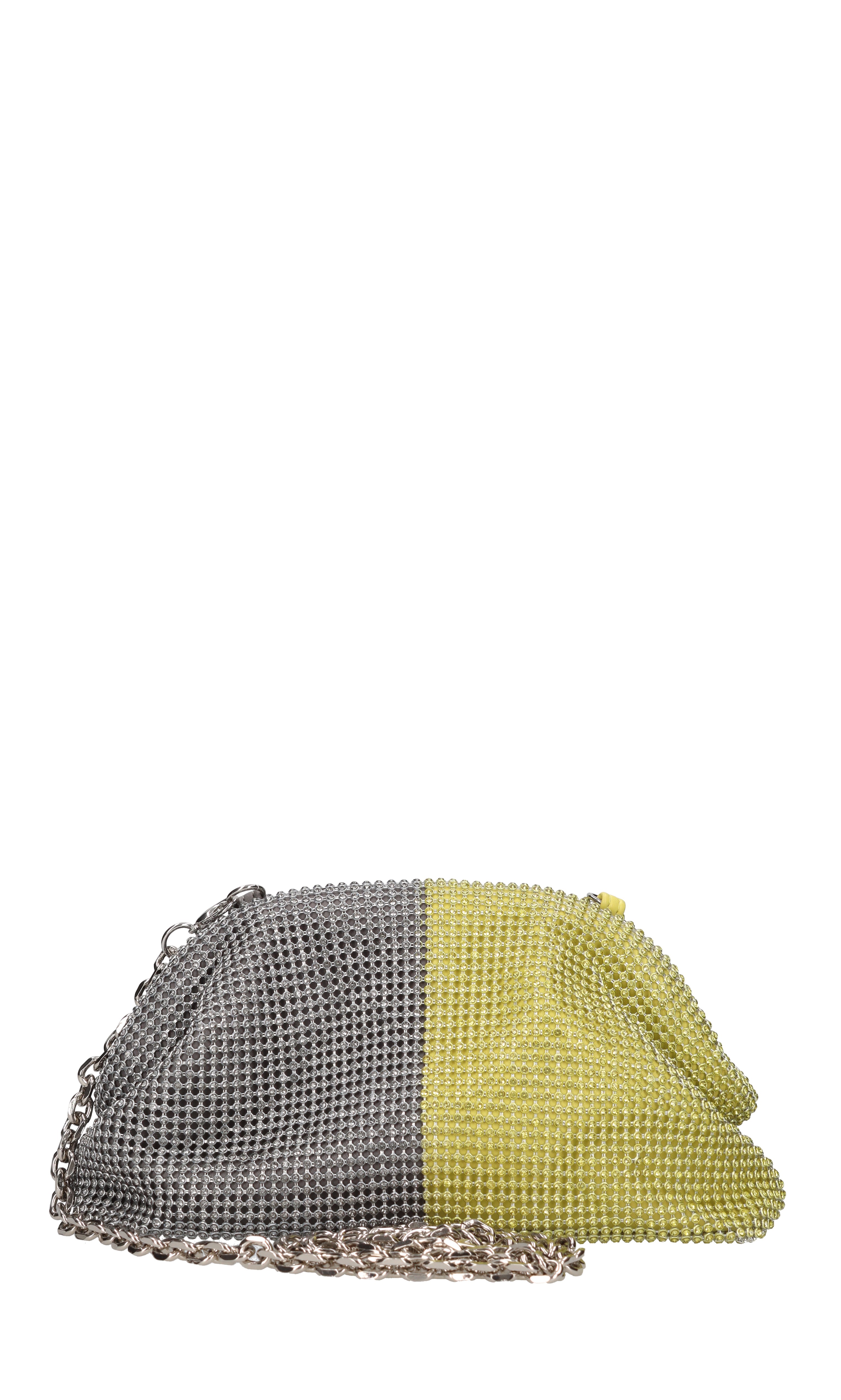 Bolsa de malla metálica. 1 compartimento con cierre magnético. Bandolera de cadena extraíble en color plateado.