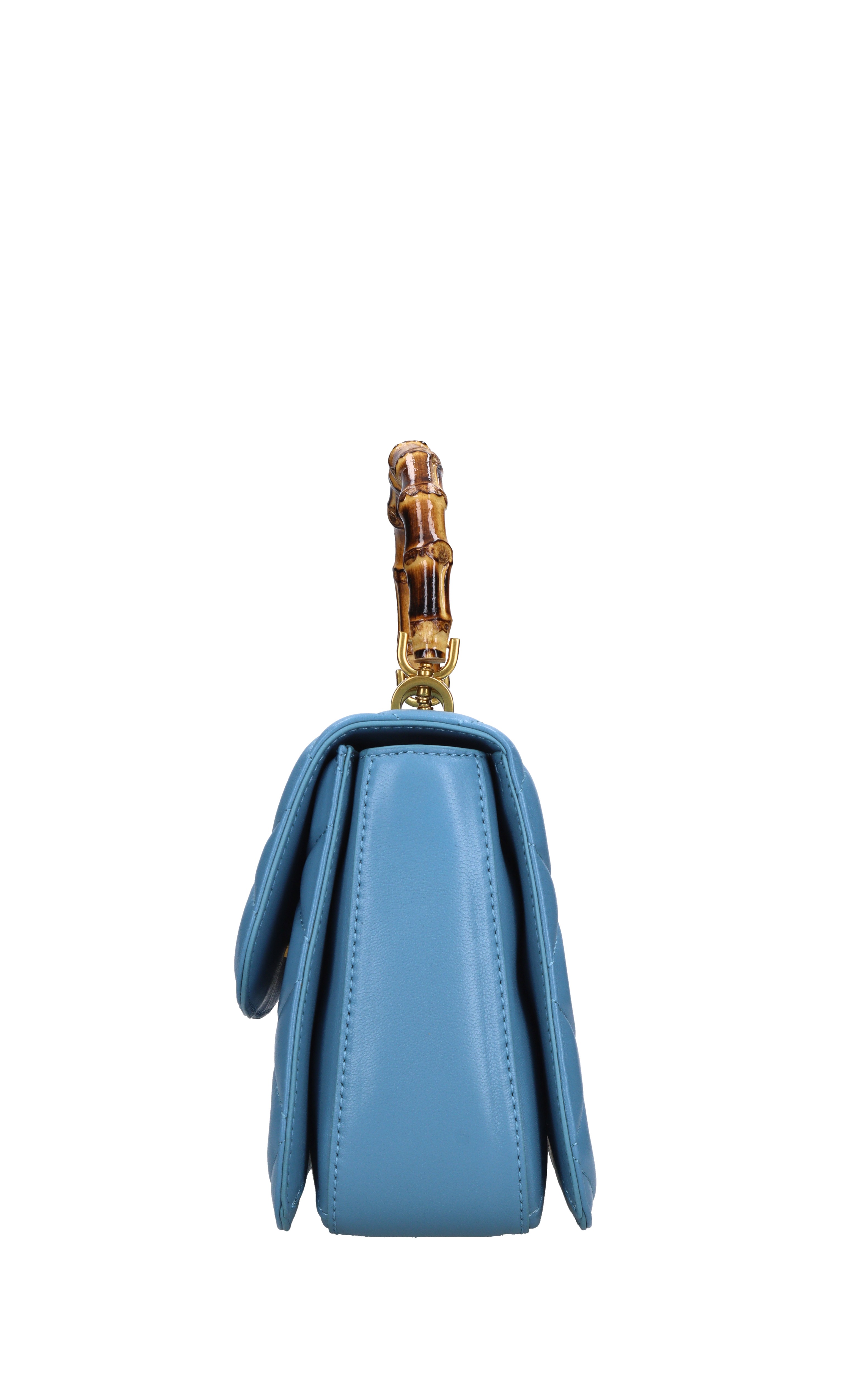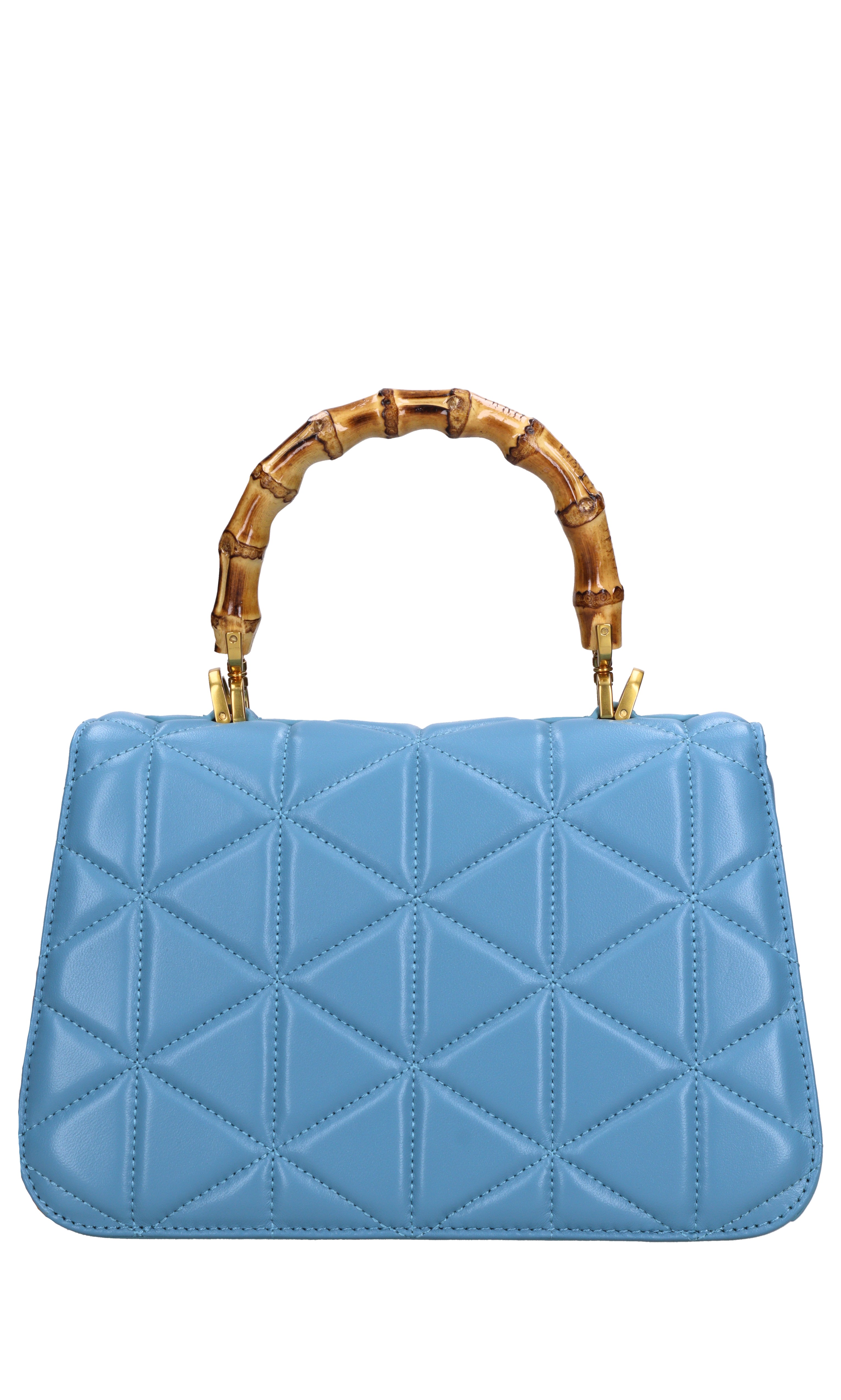 Bolso de piel de med. 2 departamentos. Cierre con solapa con botón de cierre. Correa de cuero extraíble. manga de bambú.