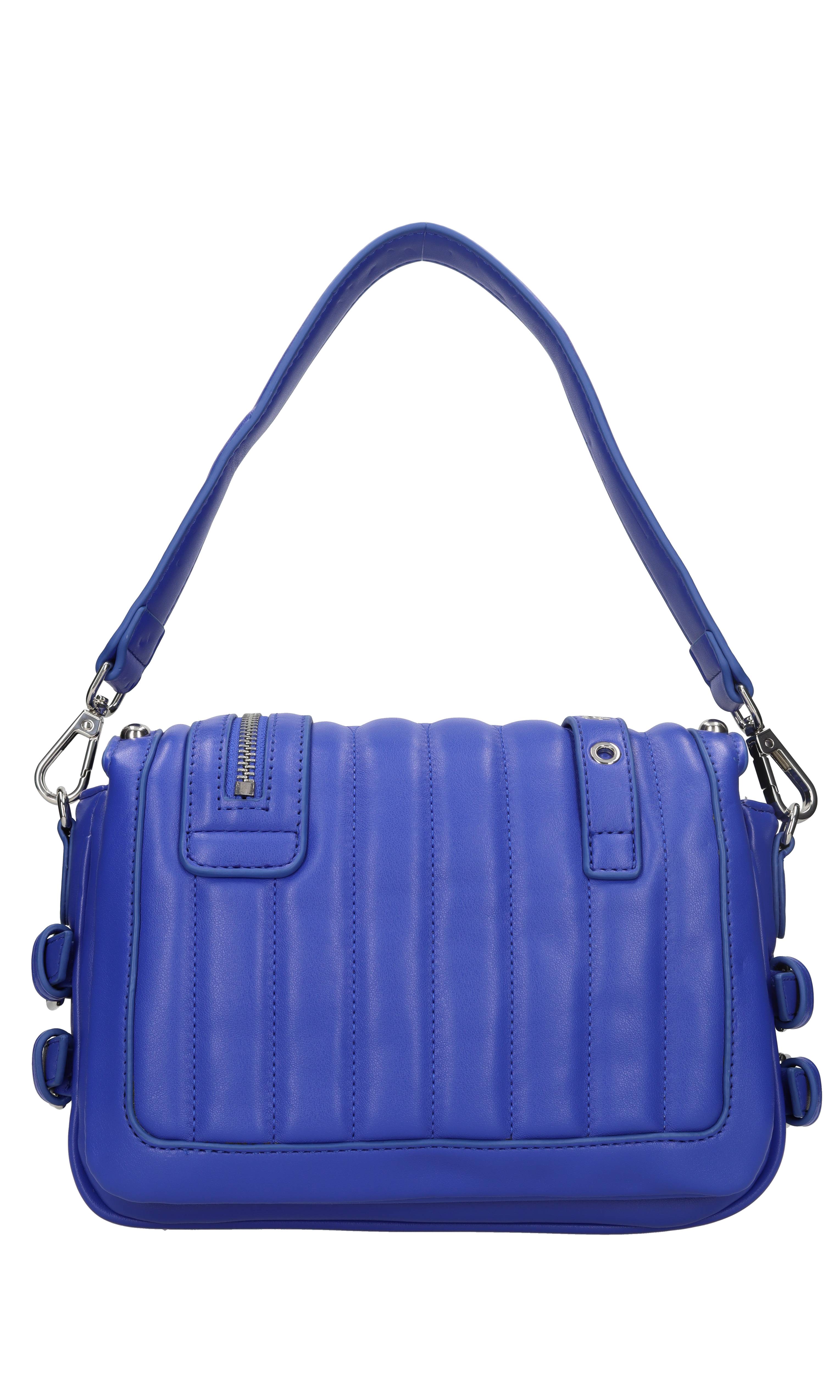 Bolso de cuero. Dos compartimentos. Cierre con solapa con botón automático. Correa de cadena extraíble. Envuelta en sobre transparente.