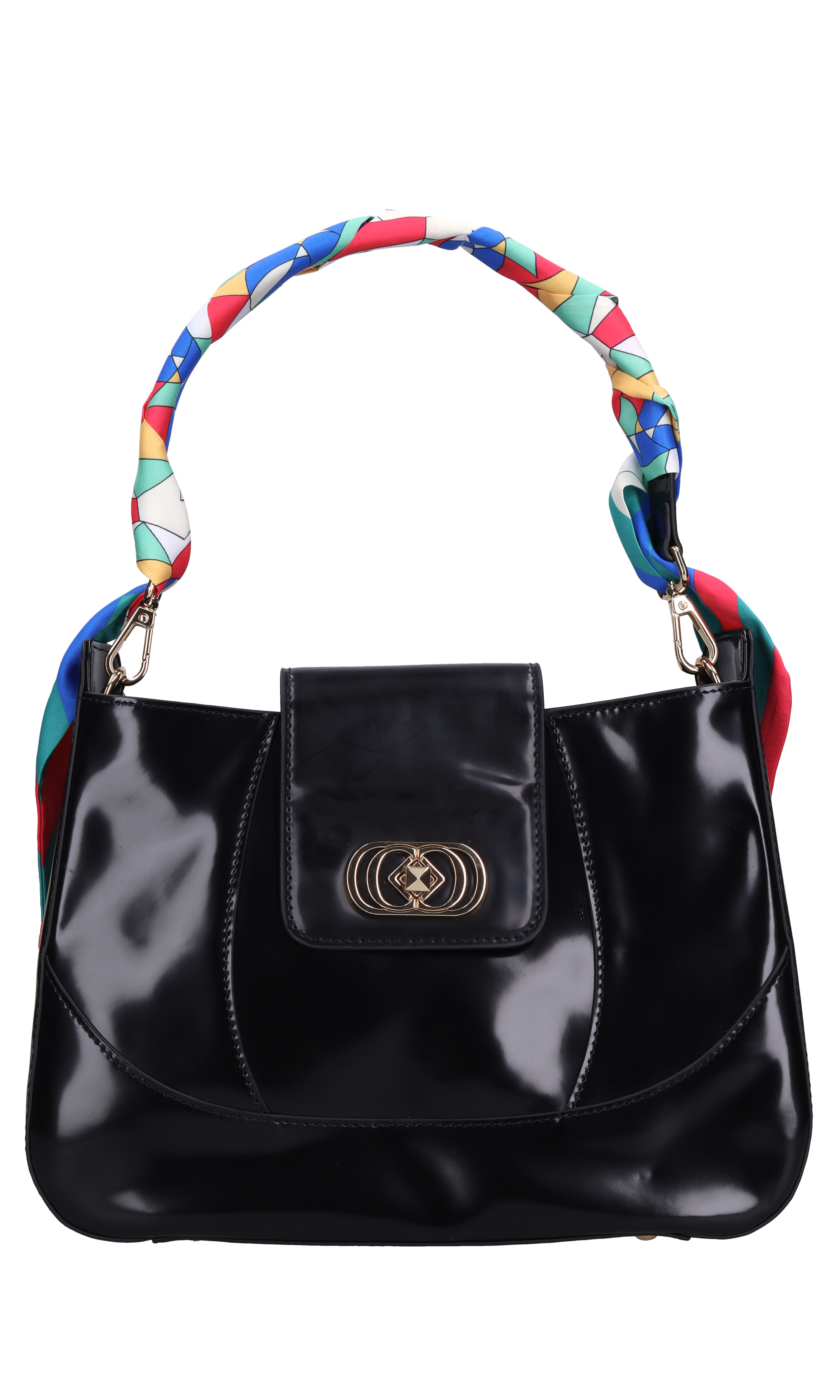Bolso GLOSS en pintura. 1 compartimento. Cierre con botón. Pintar y desmontable correa de tejido multicolor.