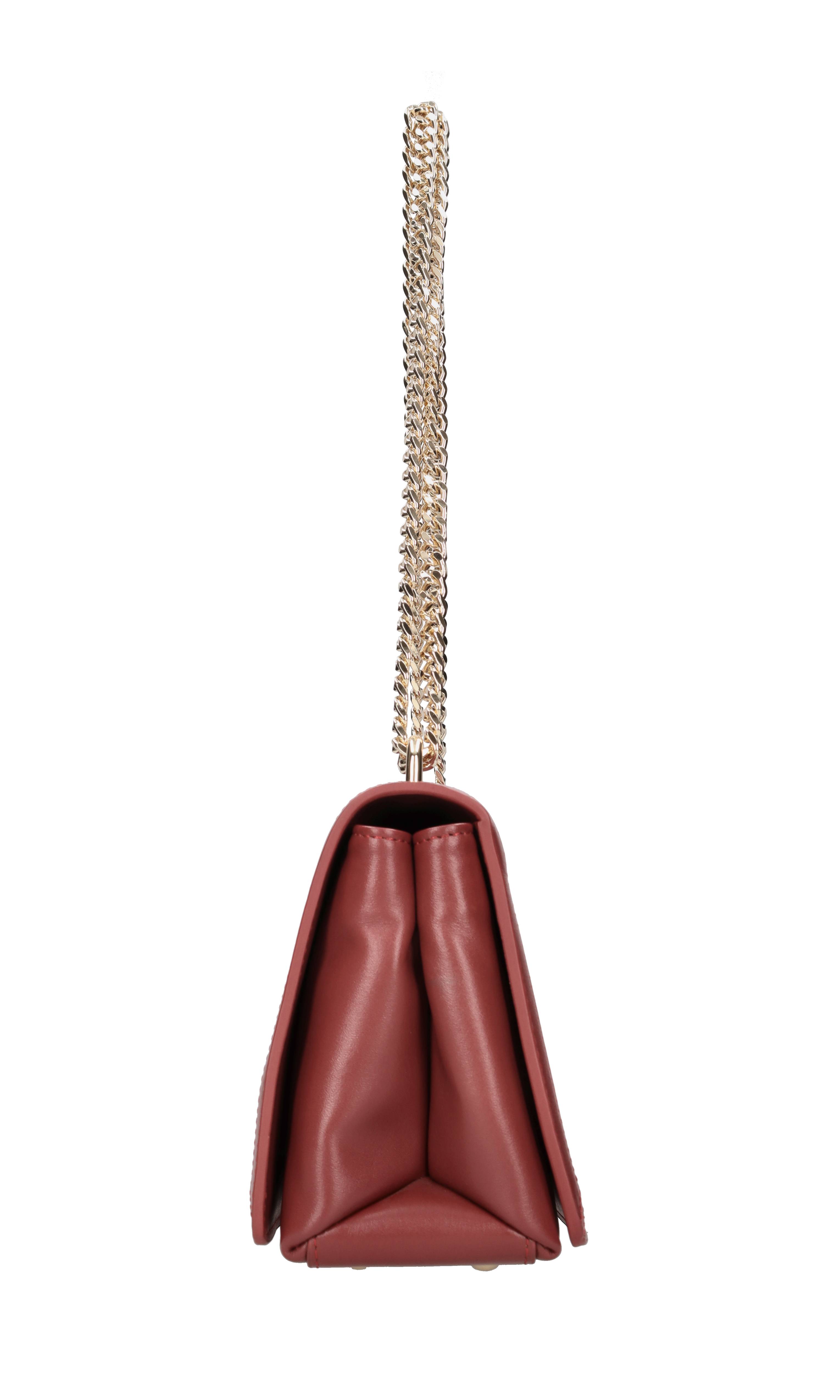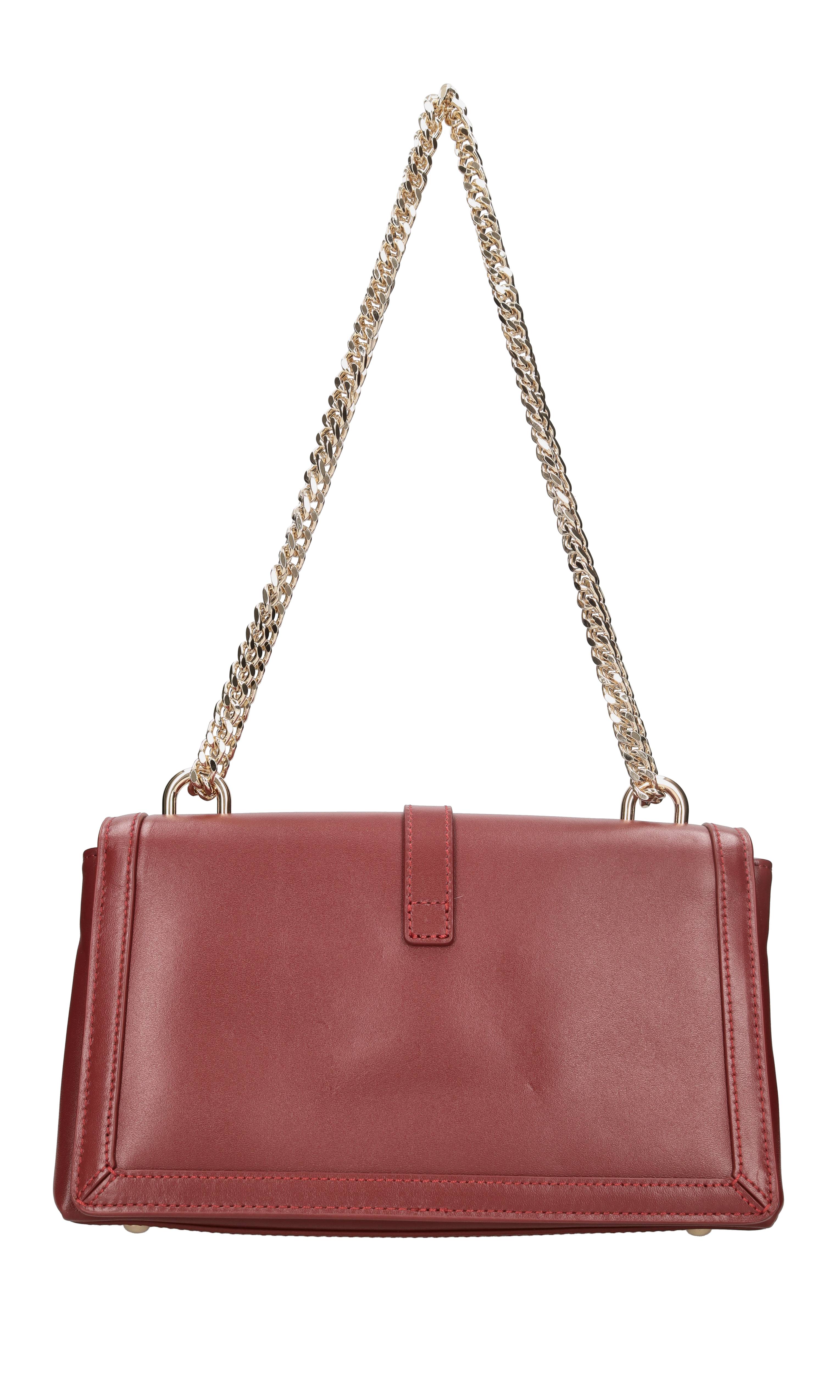 Bolso de cuero. Cierre con solapa con botón de cierre. Un compartimento. Correa de cadena extraíble.