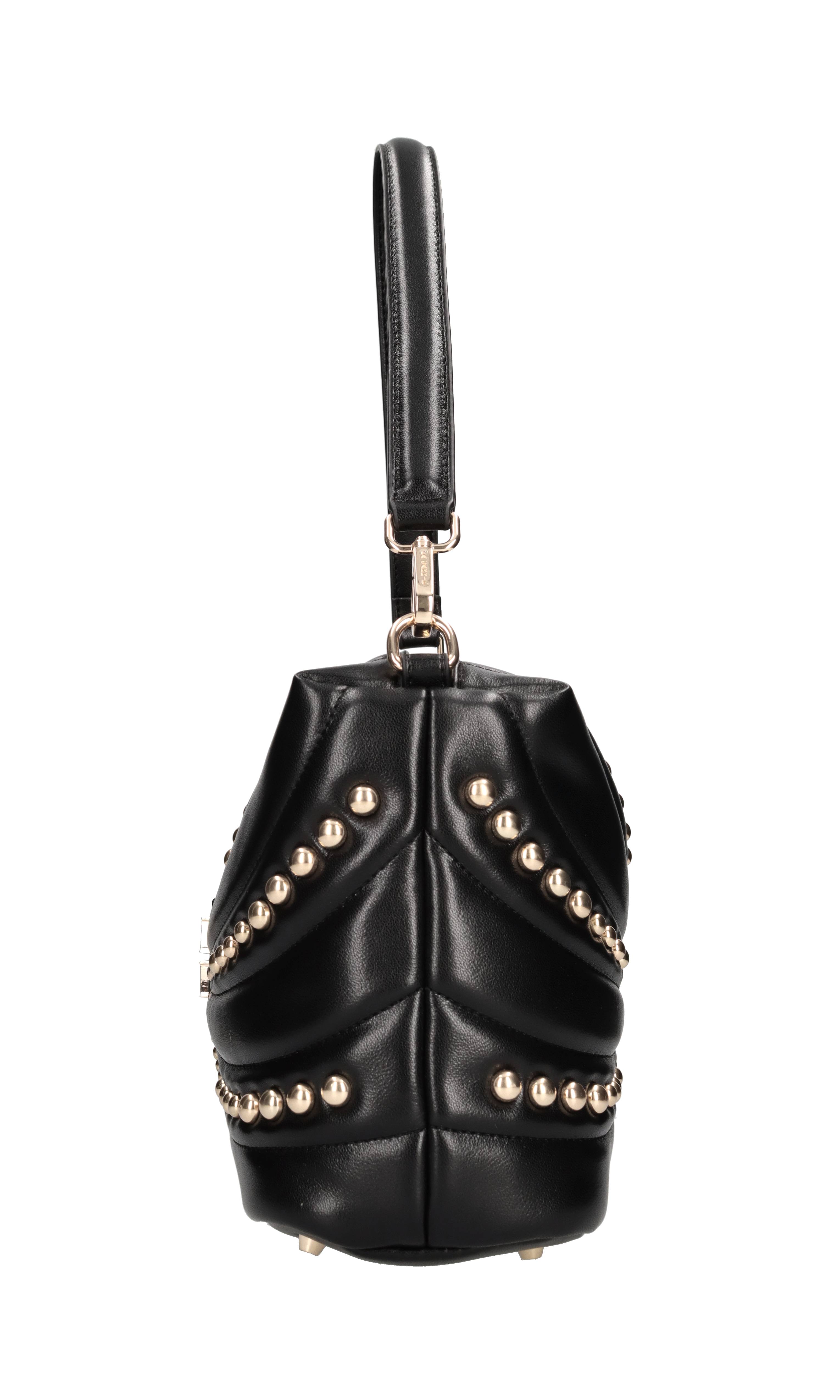 Bolso de Oyster en poliéster. Decorada con estrías de oro. Un compartimento. Cierre de cremallera. Mango de cadena de oro y hoja de eco desmontable.