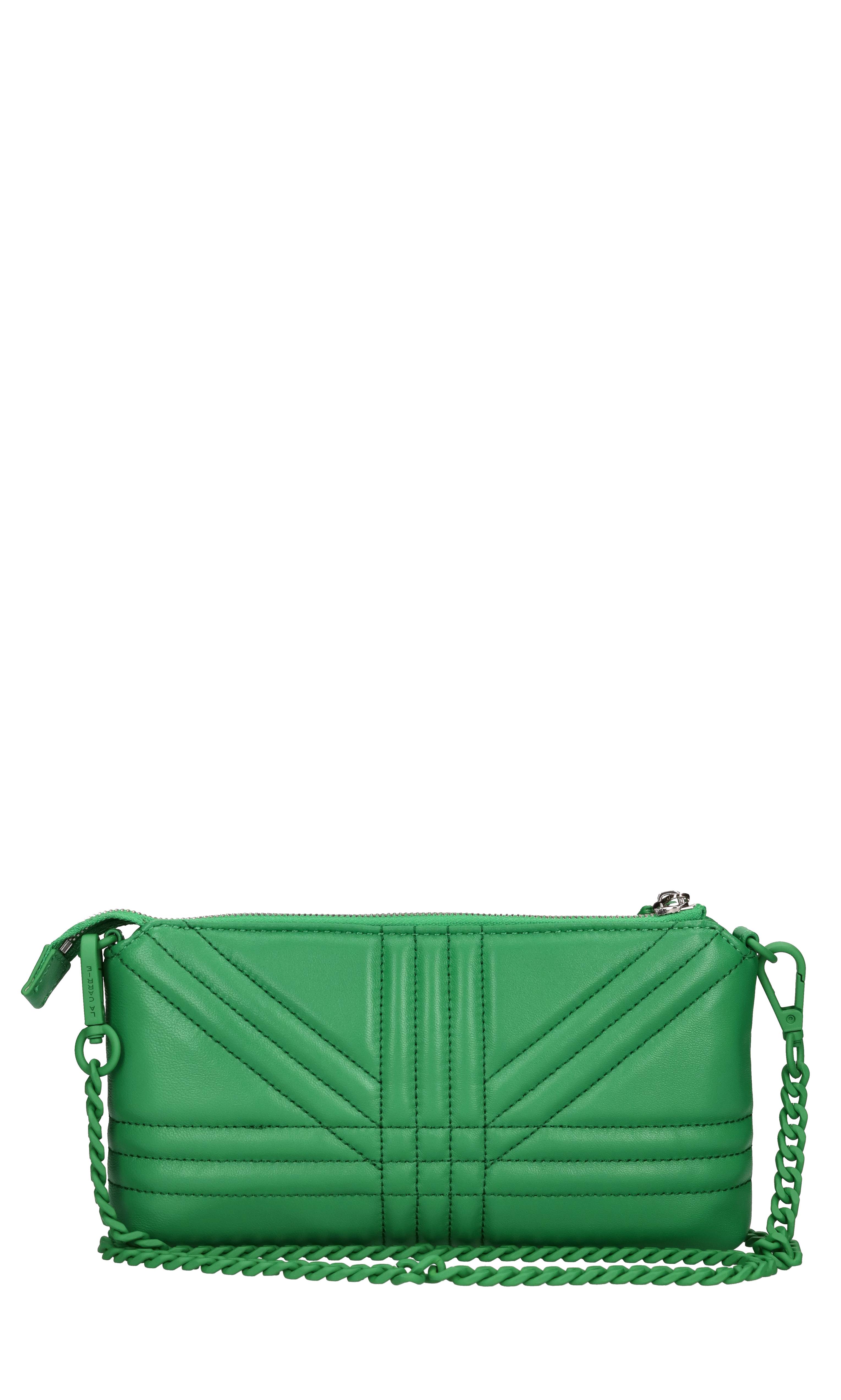 Bolso de cuero doble. Un compartimento. Cierre de cremallera. Tono de cadena en tono y piel extraíble.
