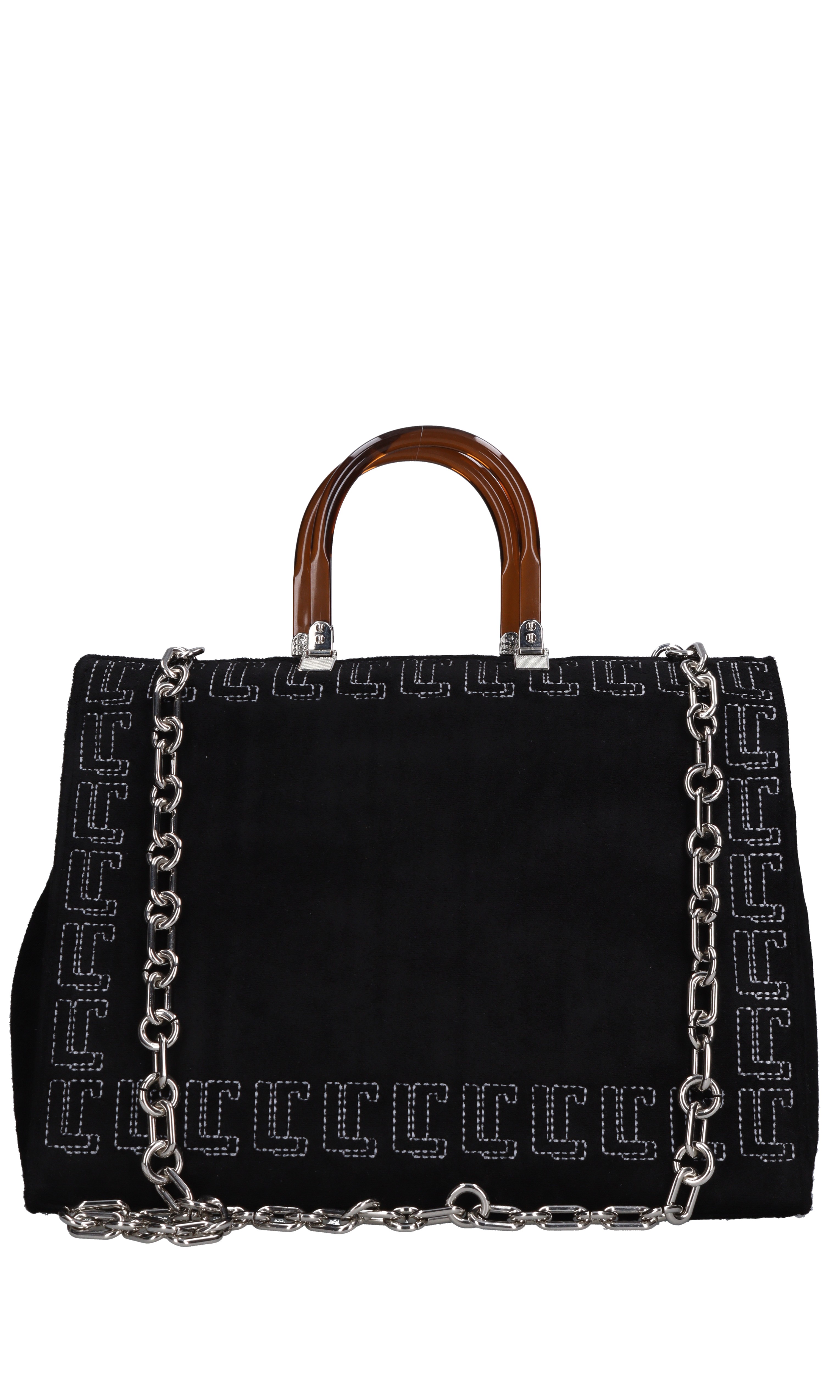 Bolso CELL en tela. Un compartimento. Cierre magnético del botón. Correa de hombro de cadena de plata extraíble. Enganchado en una cucaracha transparente.