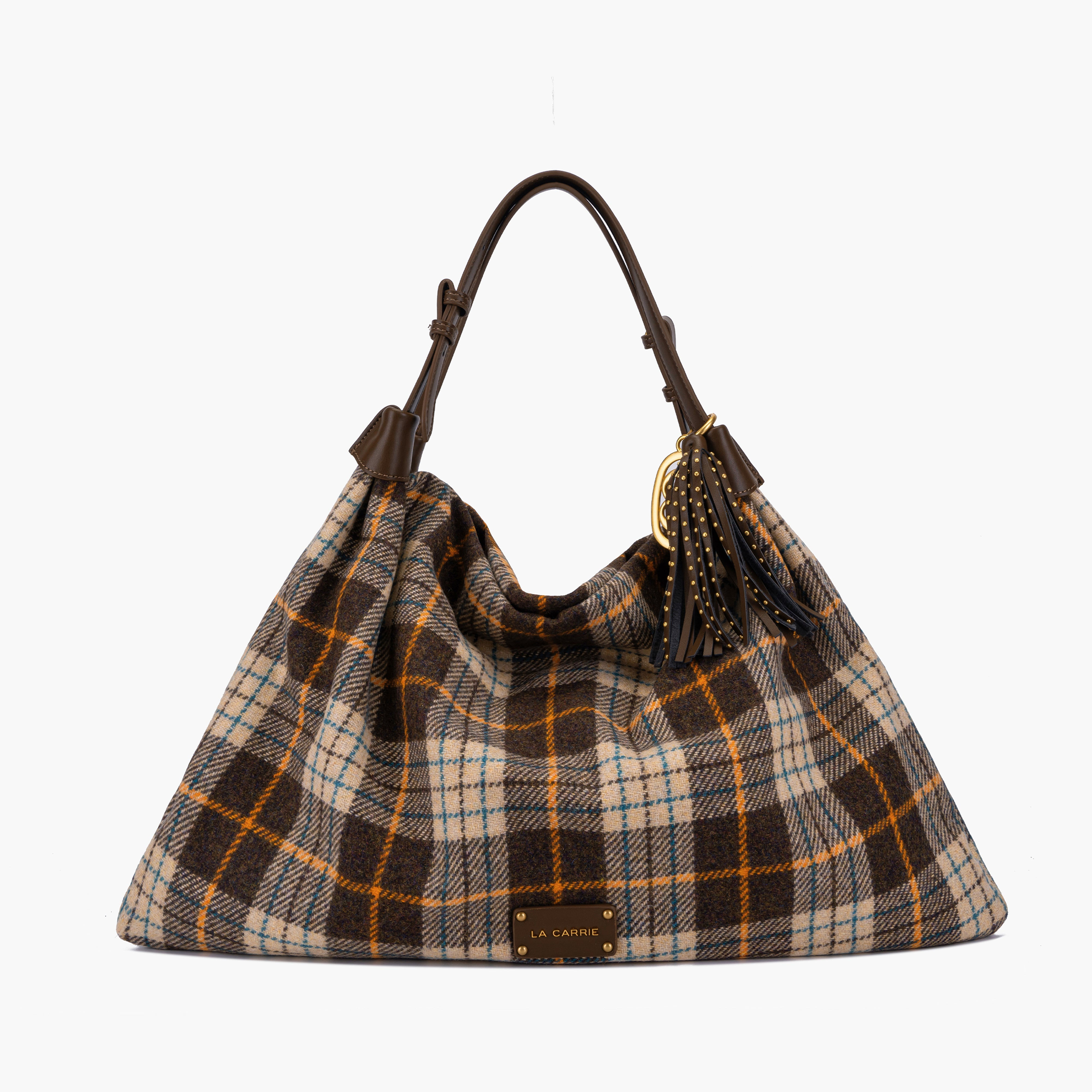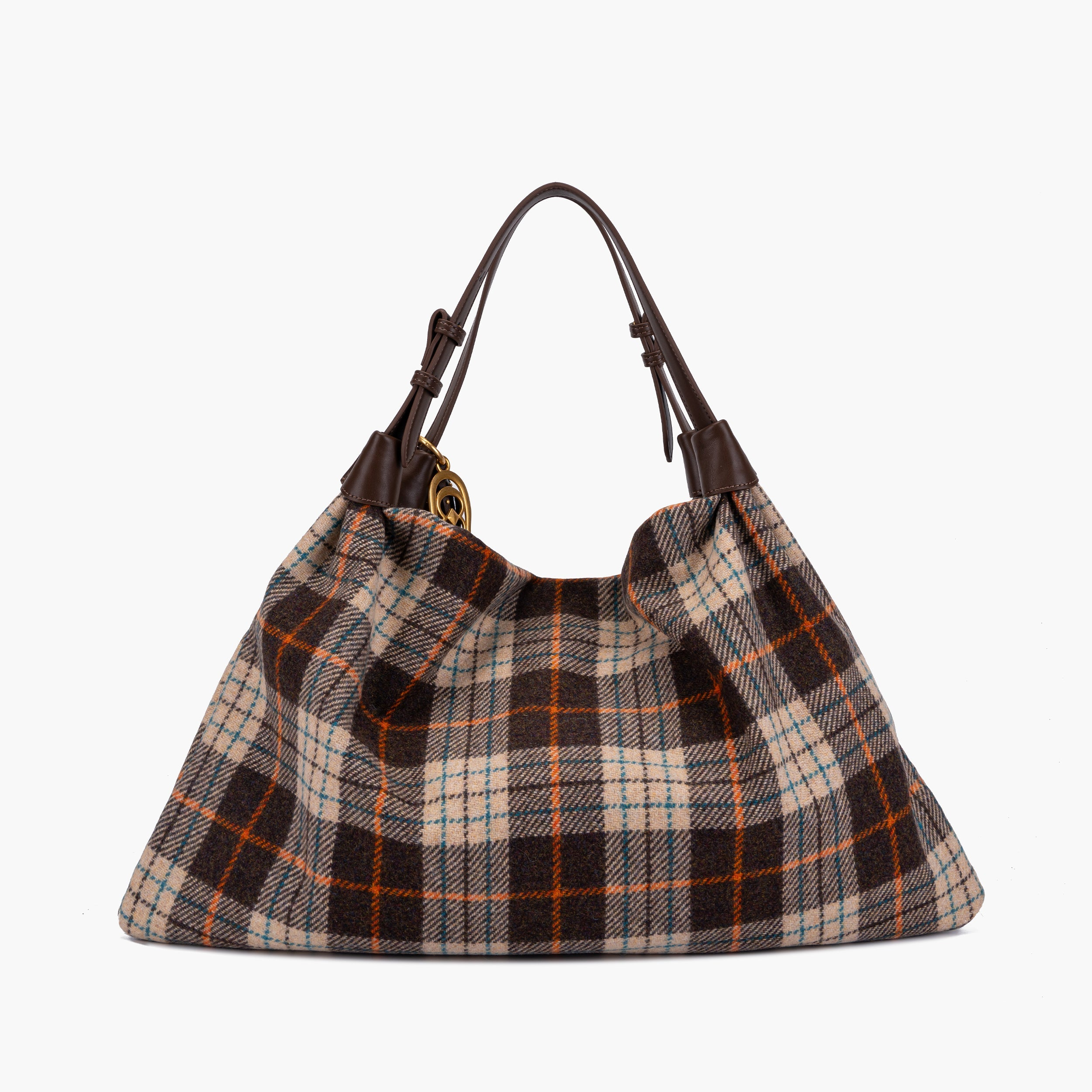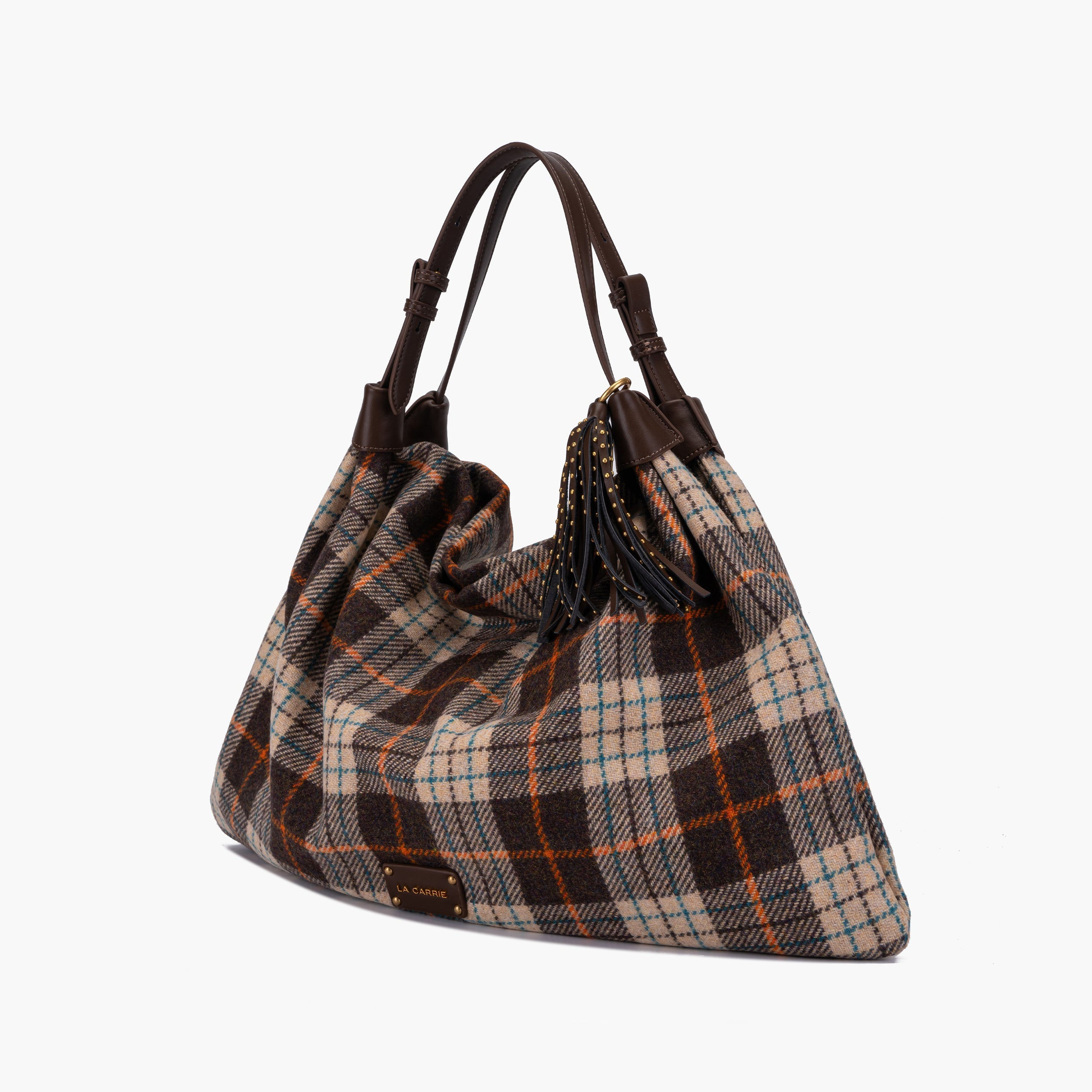 Bolsa de compras suave en tejido tartán con mangos dobles y cierre de cremallera Tamaño: 56x3x32cm