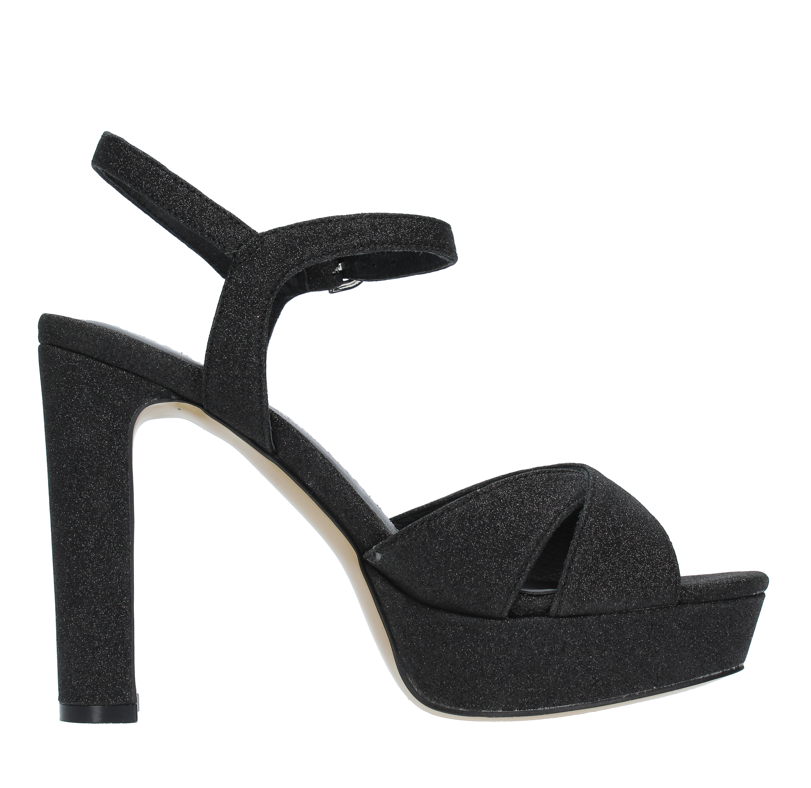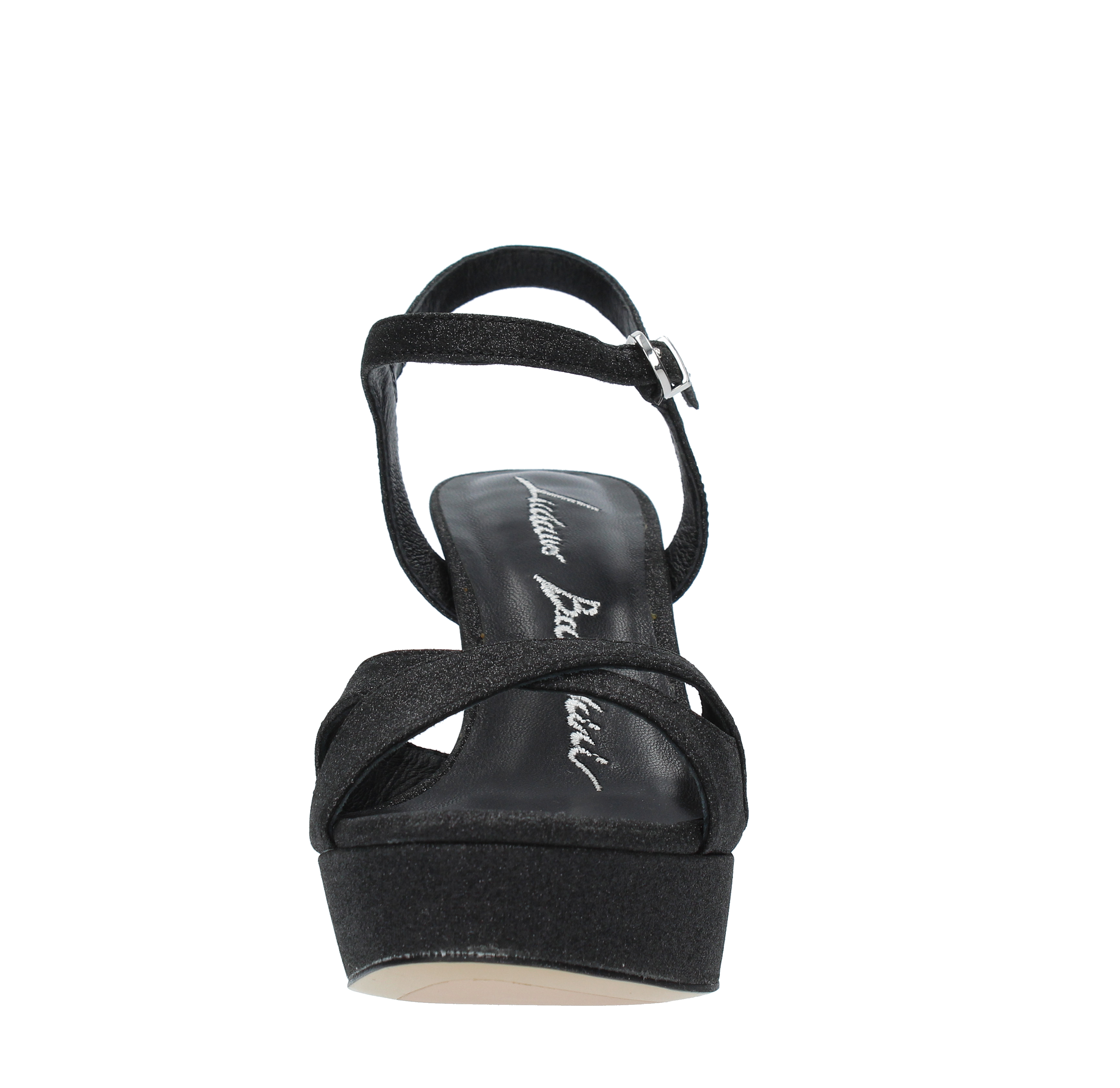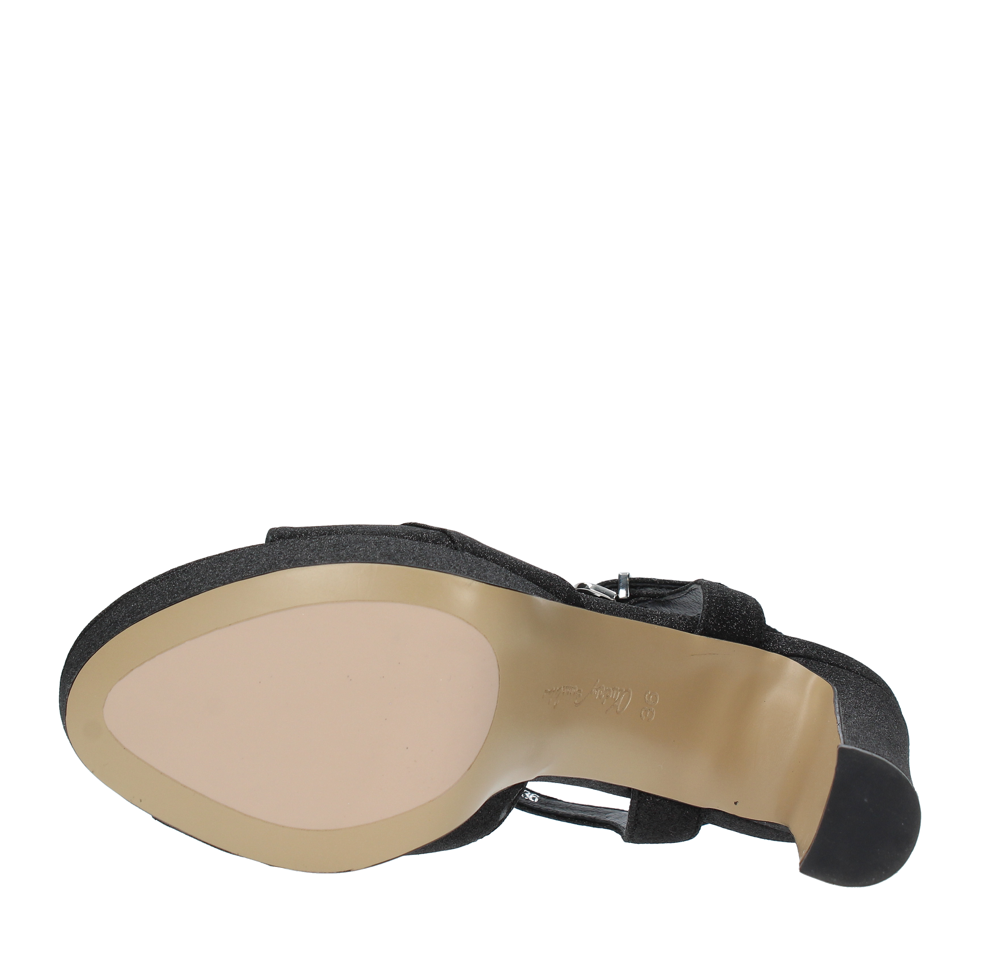 Sandalias modelo LL352V en piel y purpurina. Meseta 3cm. Suela exterior de goma. Parte superior interna de cuero.
