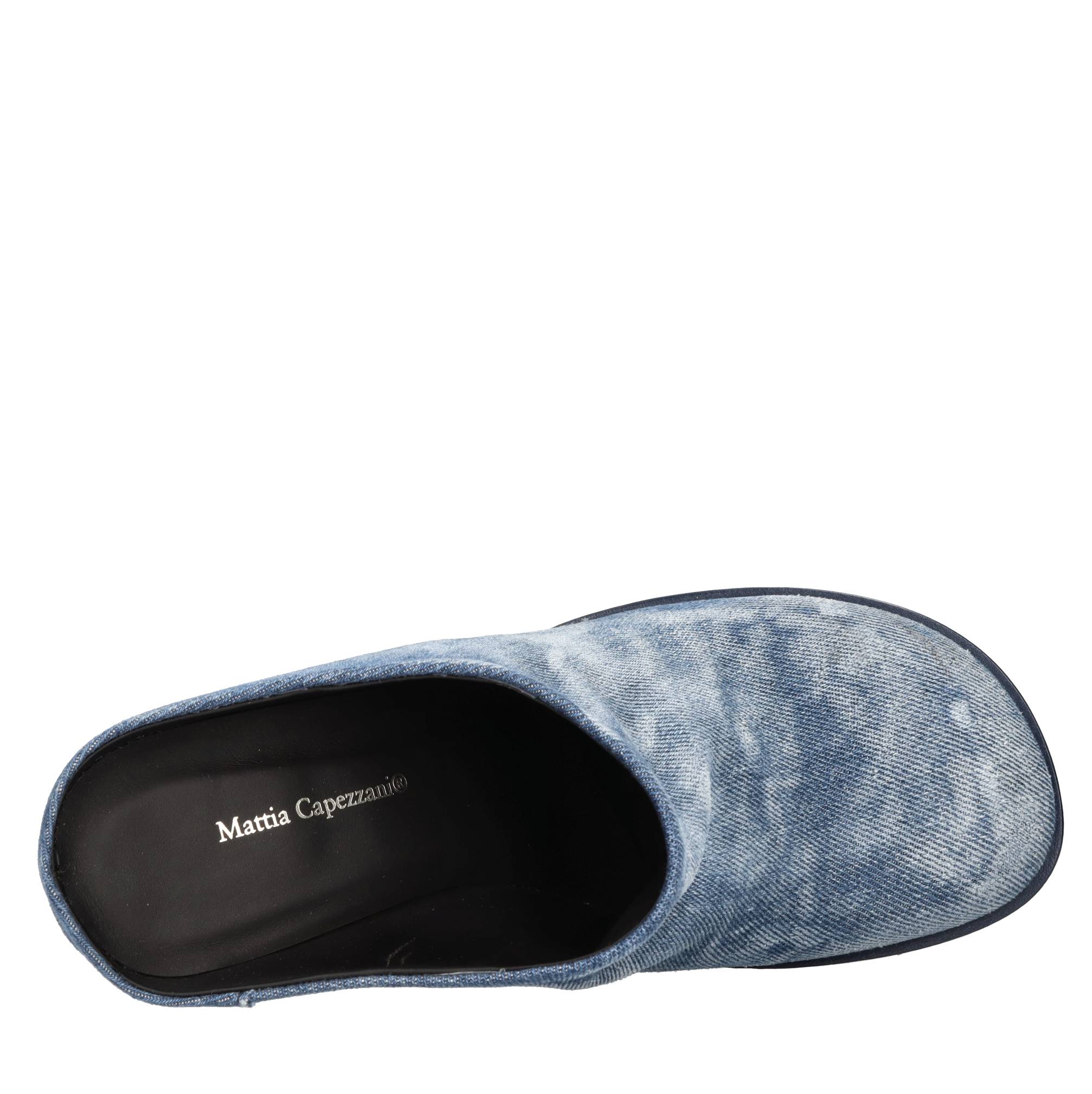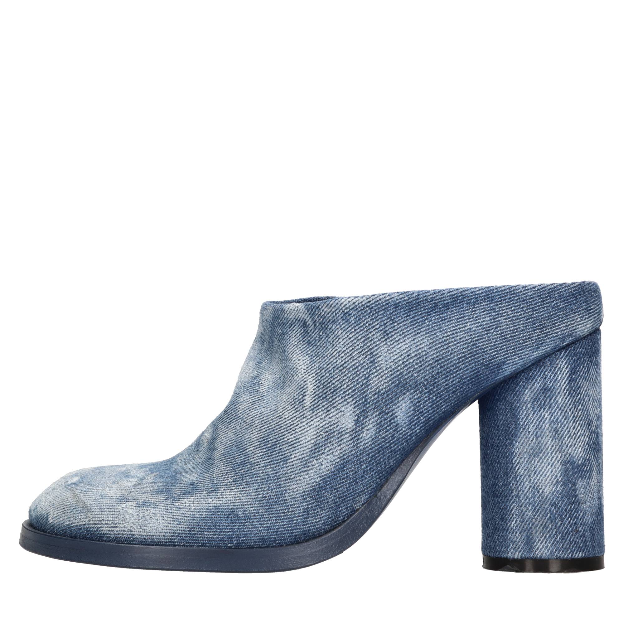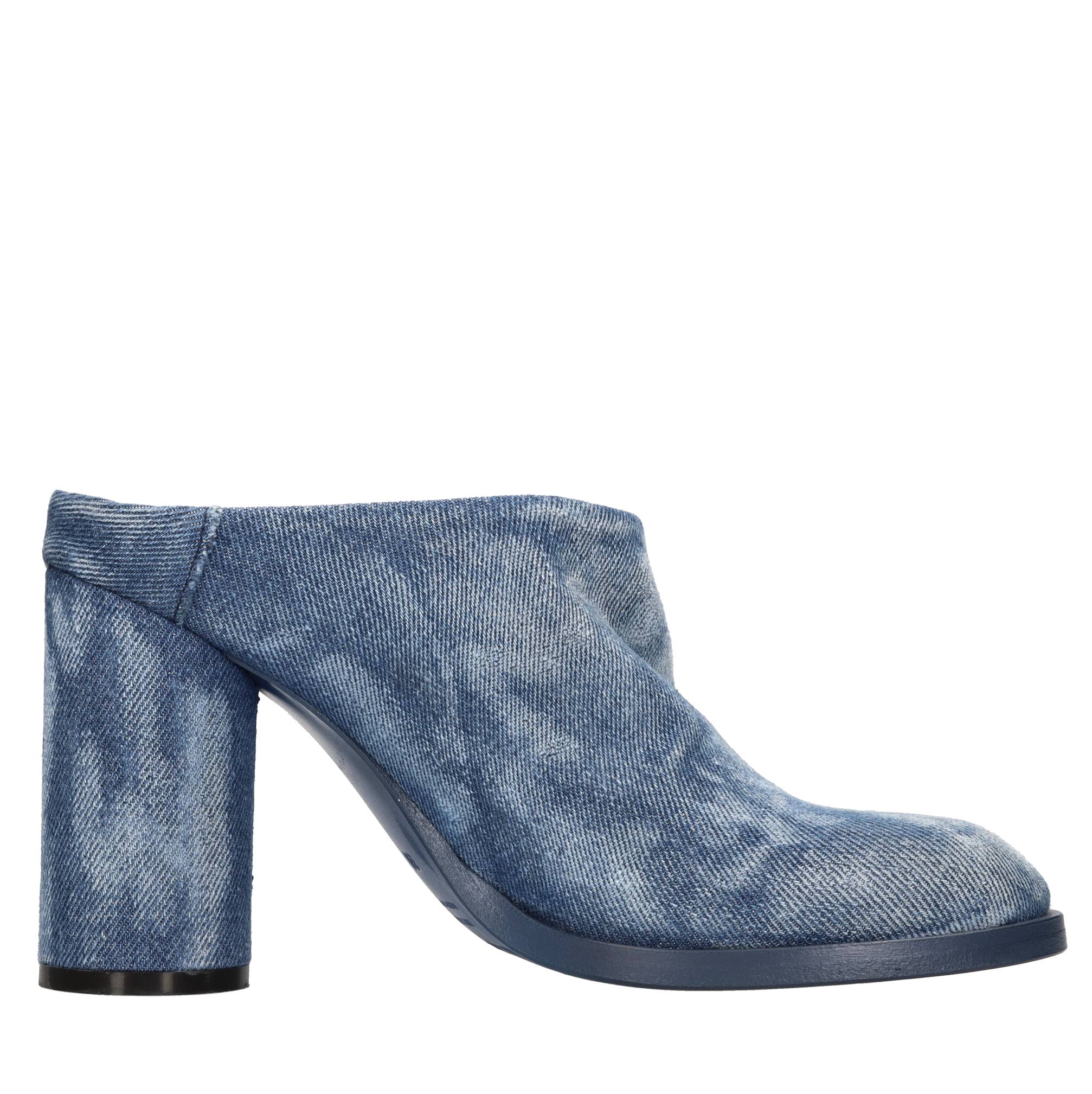Sabot en tela. Superior exterior en cuero. Cuero superior.
