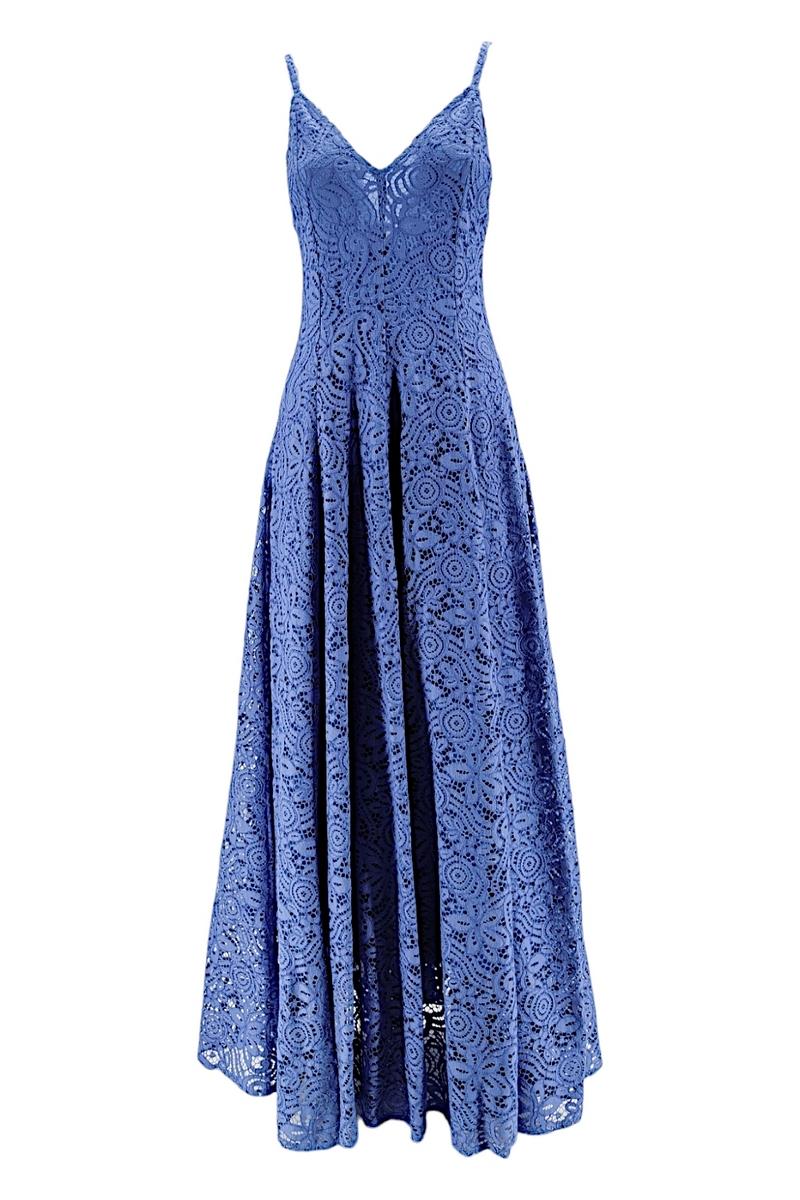Vestido Milva Mi. Modelo de ropa interior, falda de rueda, procesamiento de encaje, cremallera en la espalda. Apto regular. Composición: 46% viscosa, 39% algodón, 15% nylon. Hecho en Italia.