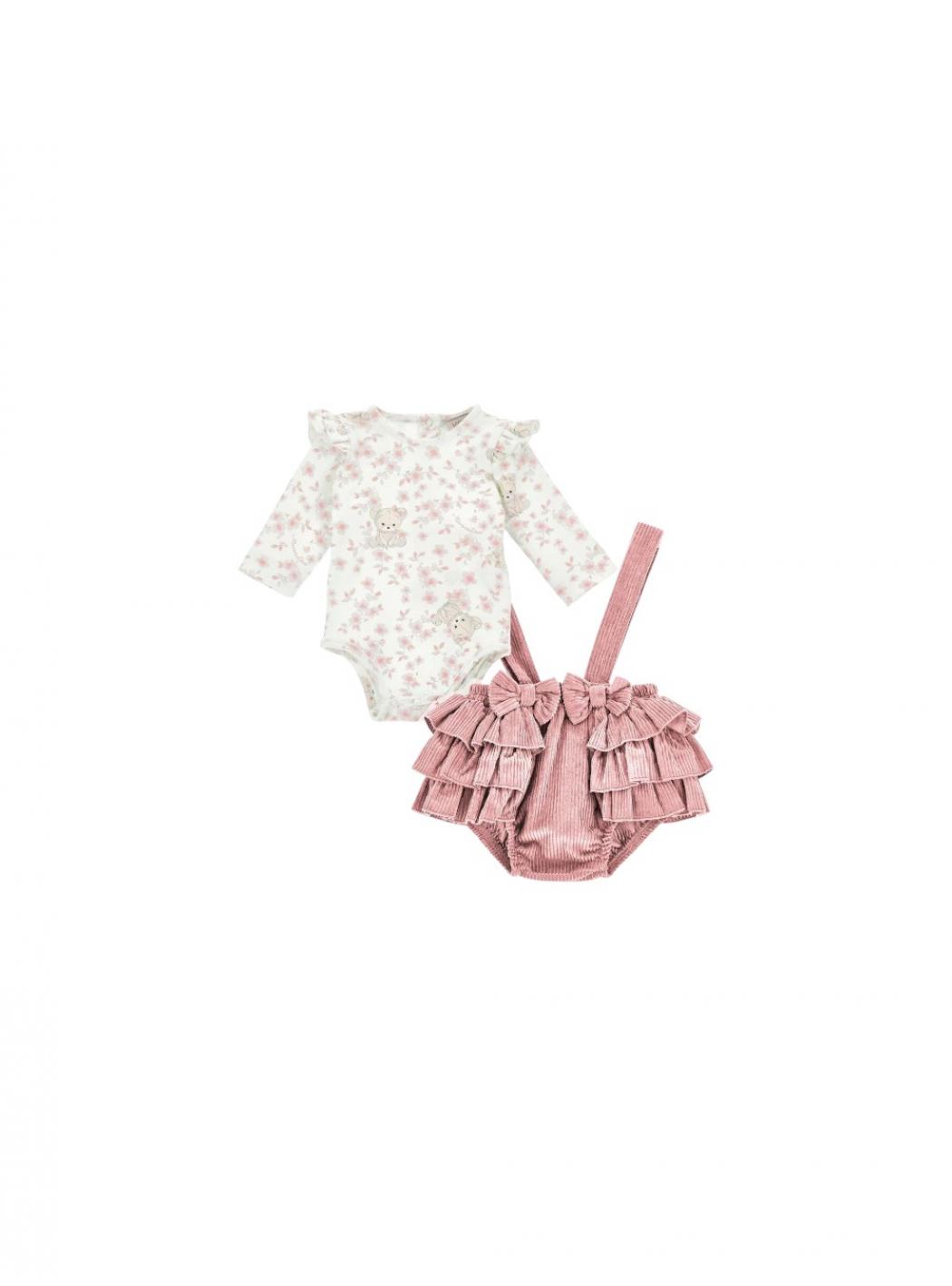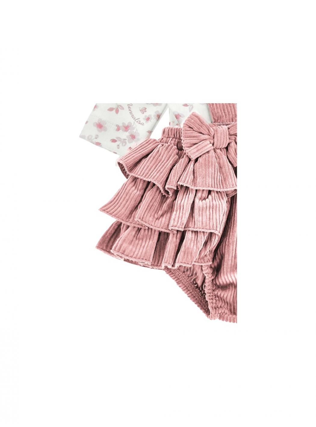 T-shirt shorts and baby band set Monnalisa rosa con correas con botón