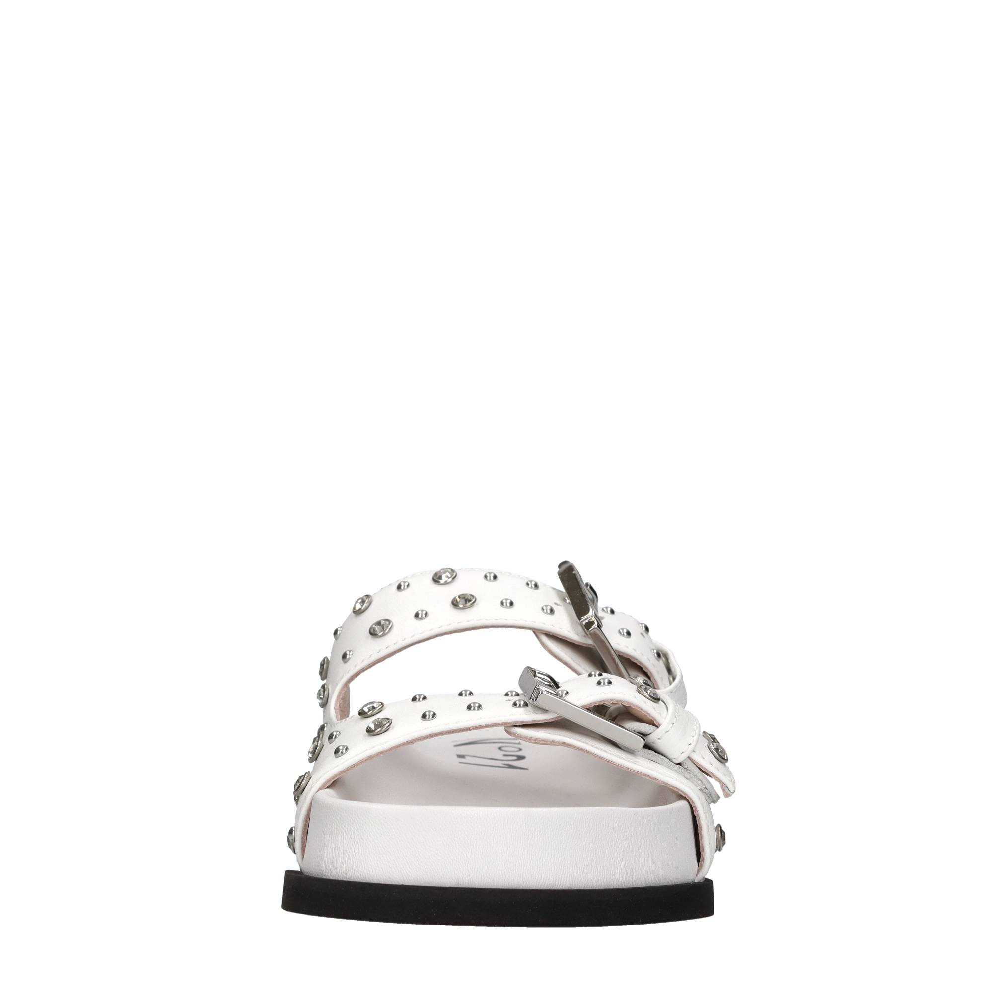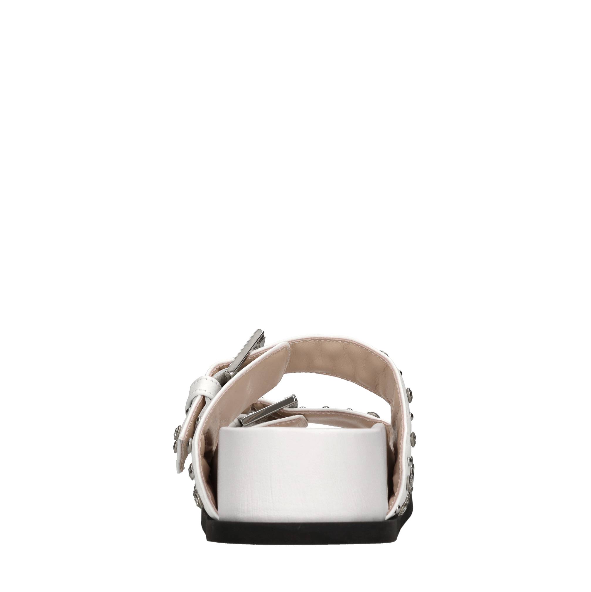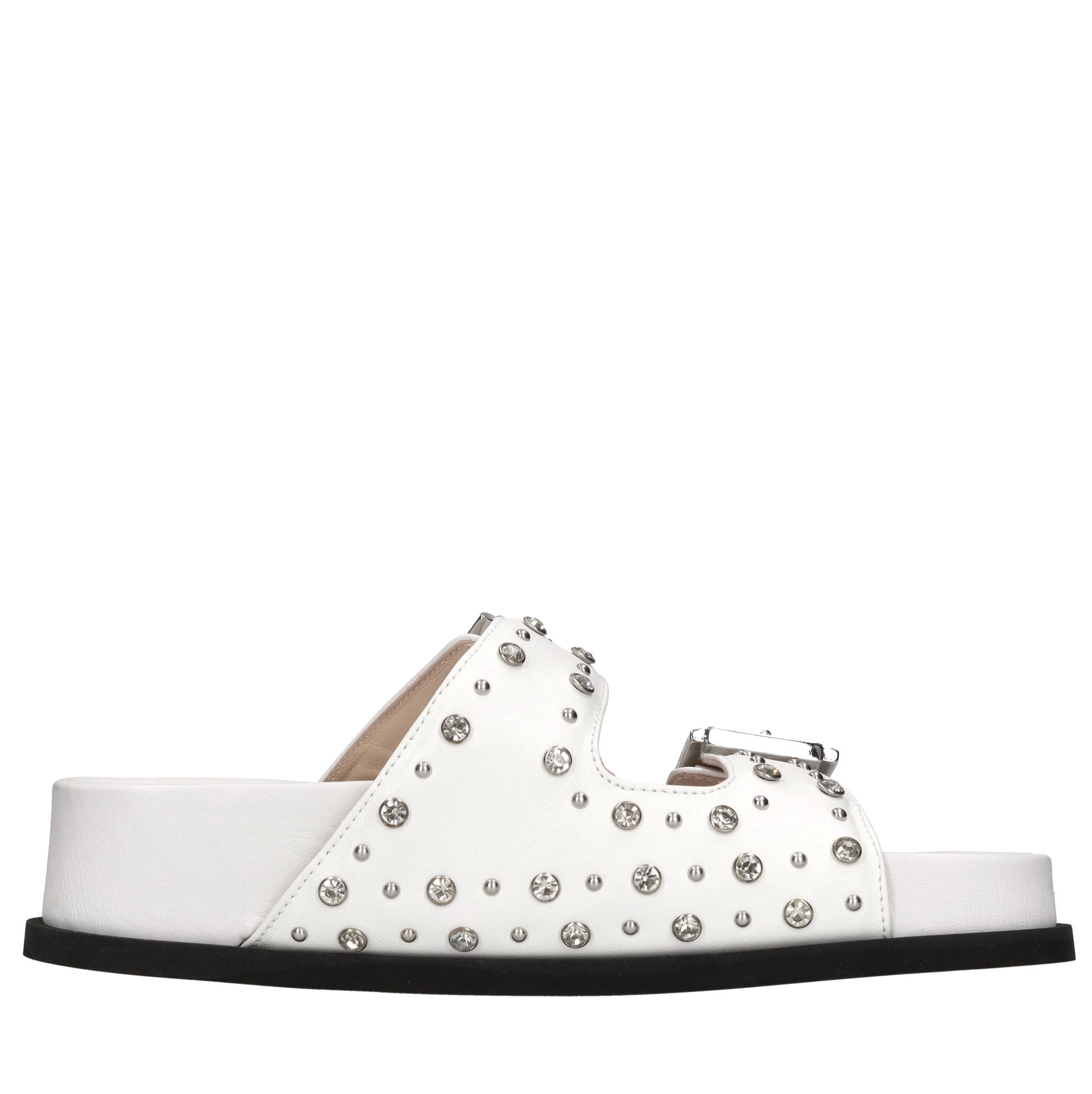 Mulas de cuero. Bolsas y estrados aplicados. Encima de cuero. Suela exterior de goma.