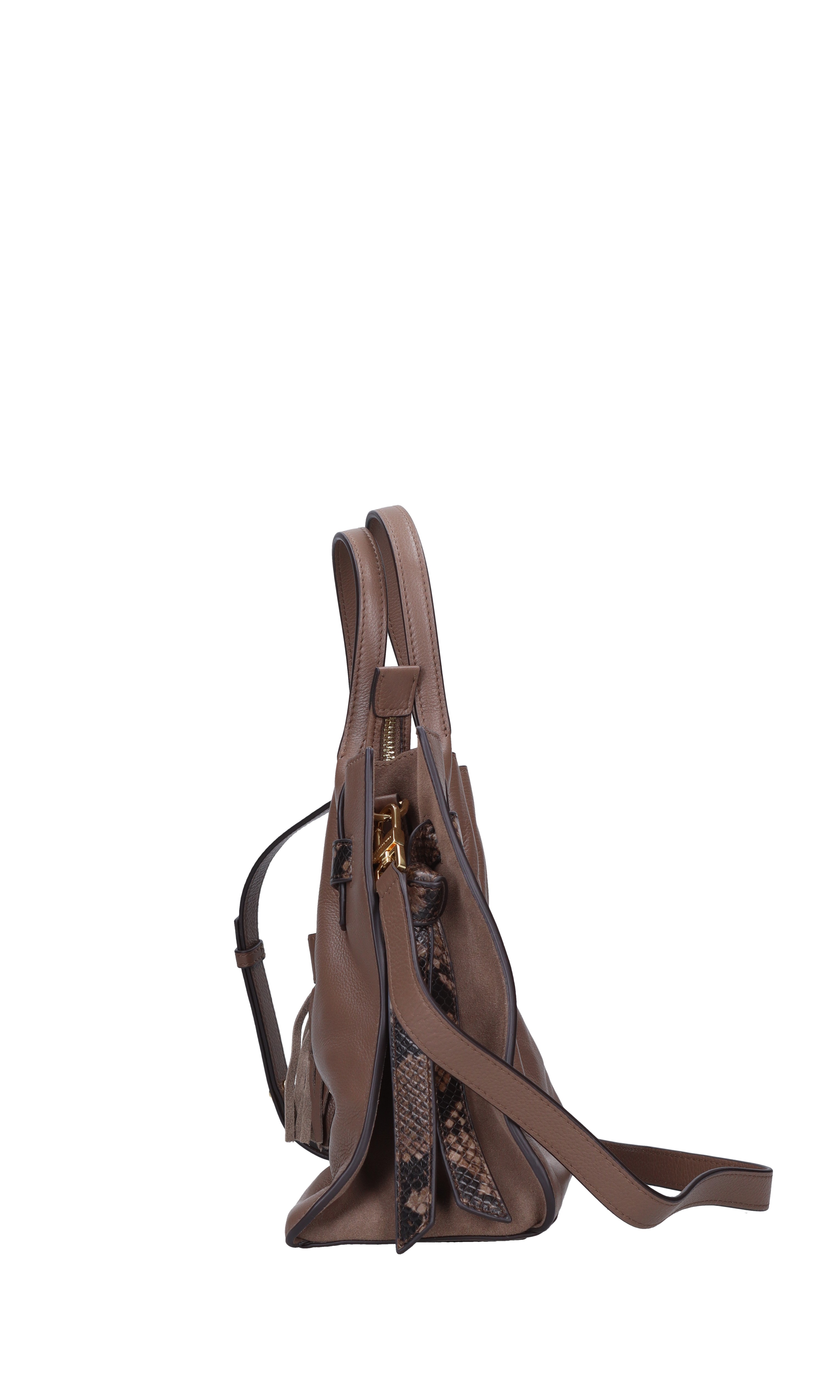 Bolso de cuero. Martellata. 3 departamentos. Cierre de cremallera y botones automáticos. Interior forrado con tela de logotipo y bolsillos. Un encanto extraíble de servilleta. Correa de hombro ajustable y desmontable. Inserción de pitón de cuero.