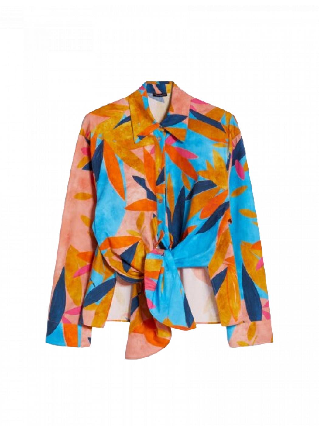 Camisa amplia en pinzas de algodón con patrón acuarelado. Se puede usar de varias maneras gracias a los bordes alargados en la parte delantera, las aberturas laterales y dos cordones desmontables. Atado en la parte delantera, cruzado y abrochado en la espalda o suelto en su silueta recta, siempre será perfecto.