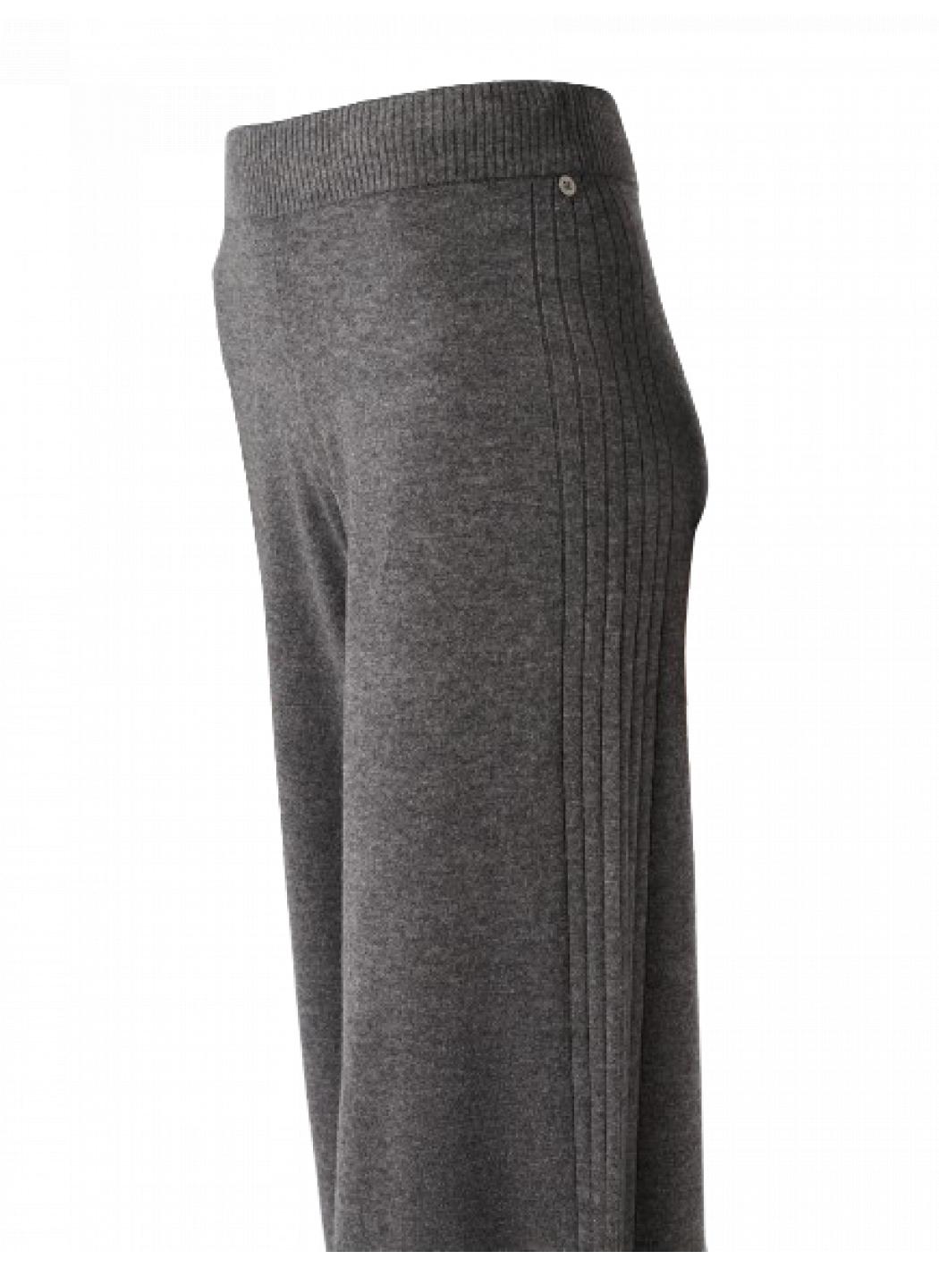 Pantalones de malla en mezcla de lana. Tienen líneas anchas y rectas, cintura regular con bandas elásticas internas y laterales con costillas planas. Tricot total con las camisas en el mismo hilo, para elegir en la colección.