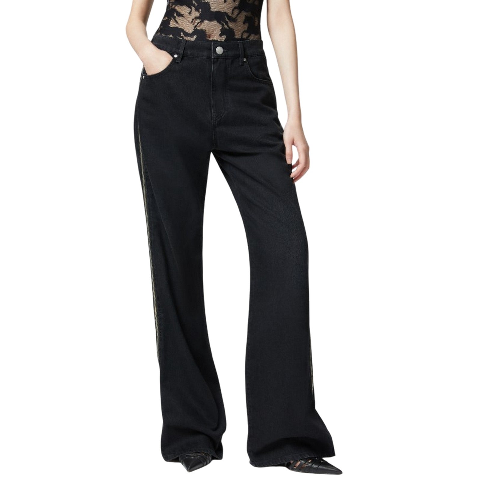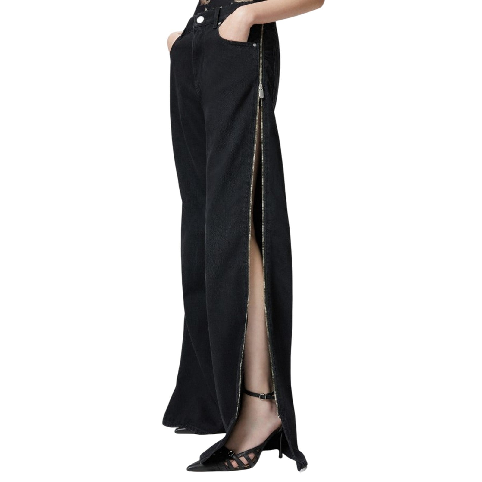 mujer - wanda ancho pierna cremallera denim - negro