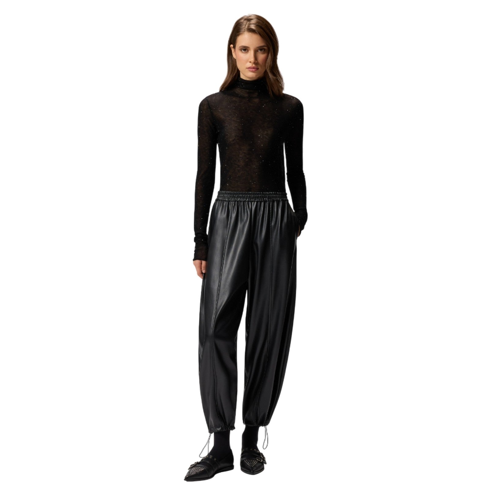 Pantalón de mujeres - zapatillas de cuero especiado - negro