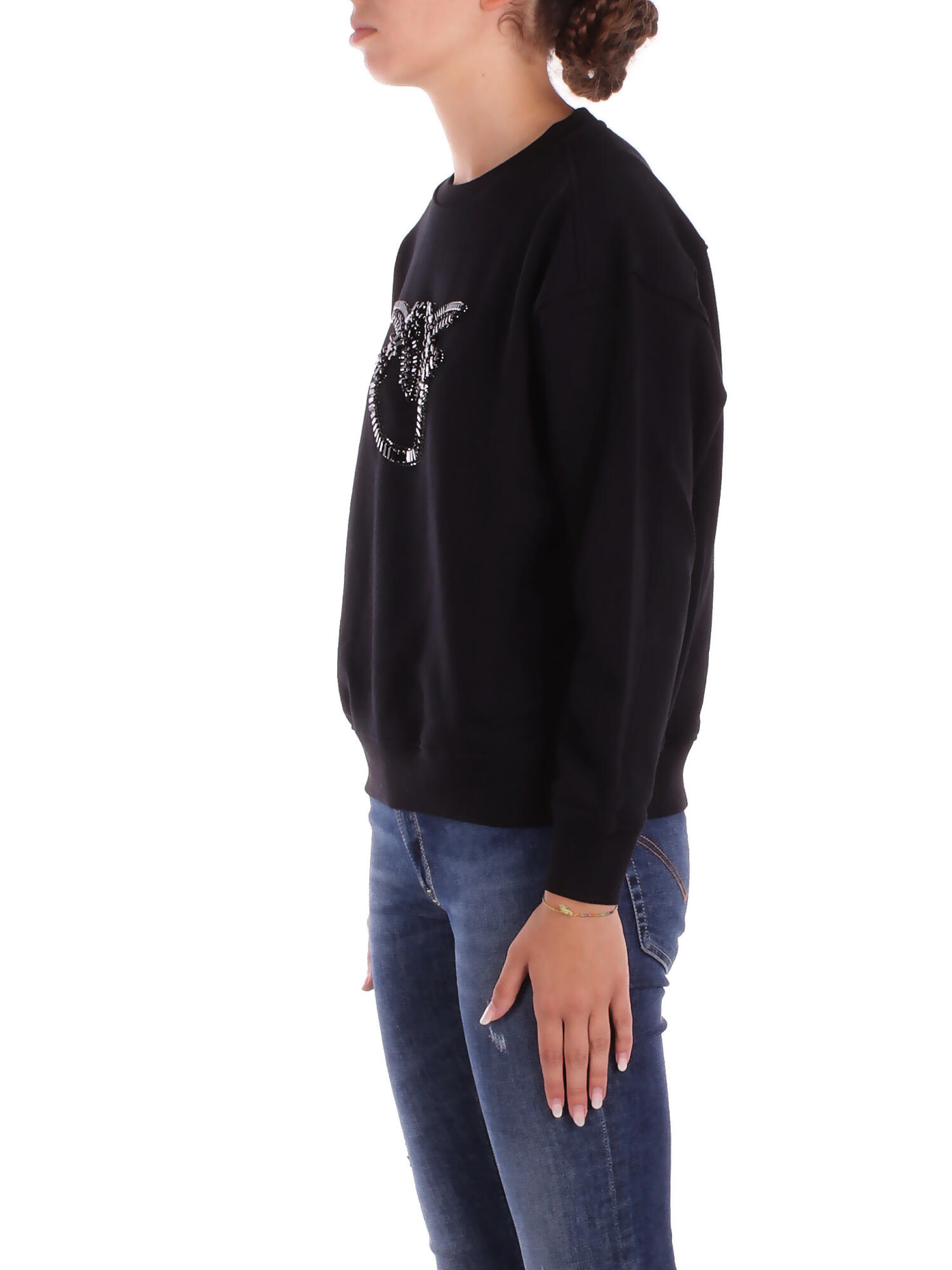 Sudadera de mujeres Pinko Front logo Altura modelo: 1,76 cm Tamaño del desgaste : XS ita Fit : Composición regular : 64% algodón 36% poliéster , bordado 100% vidrio , segunda fibra de polivinilo bordado , tercer proveedor de acero bordado : 100534 A2ROZ99
