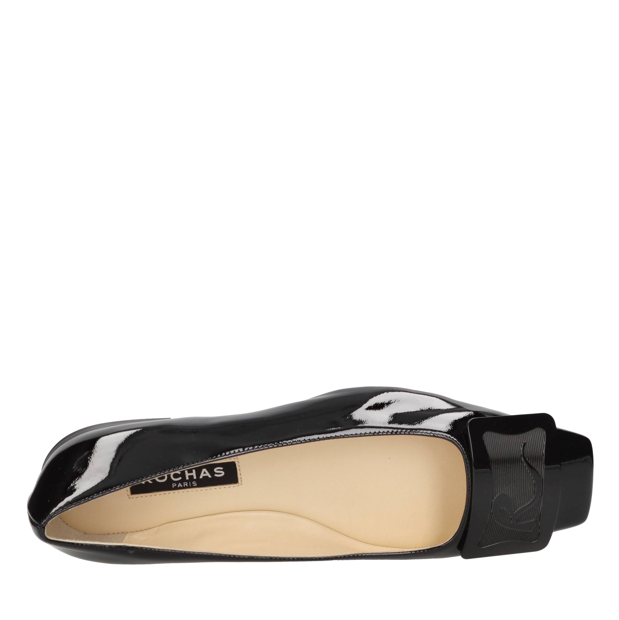 Bailarinas de charol. Parte superior interna de cuero. Suela exterior de piel.