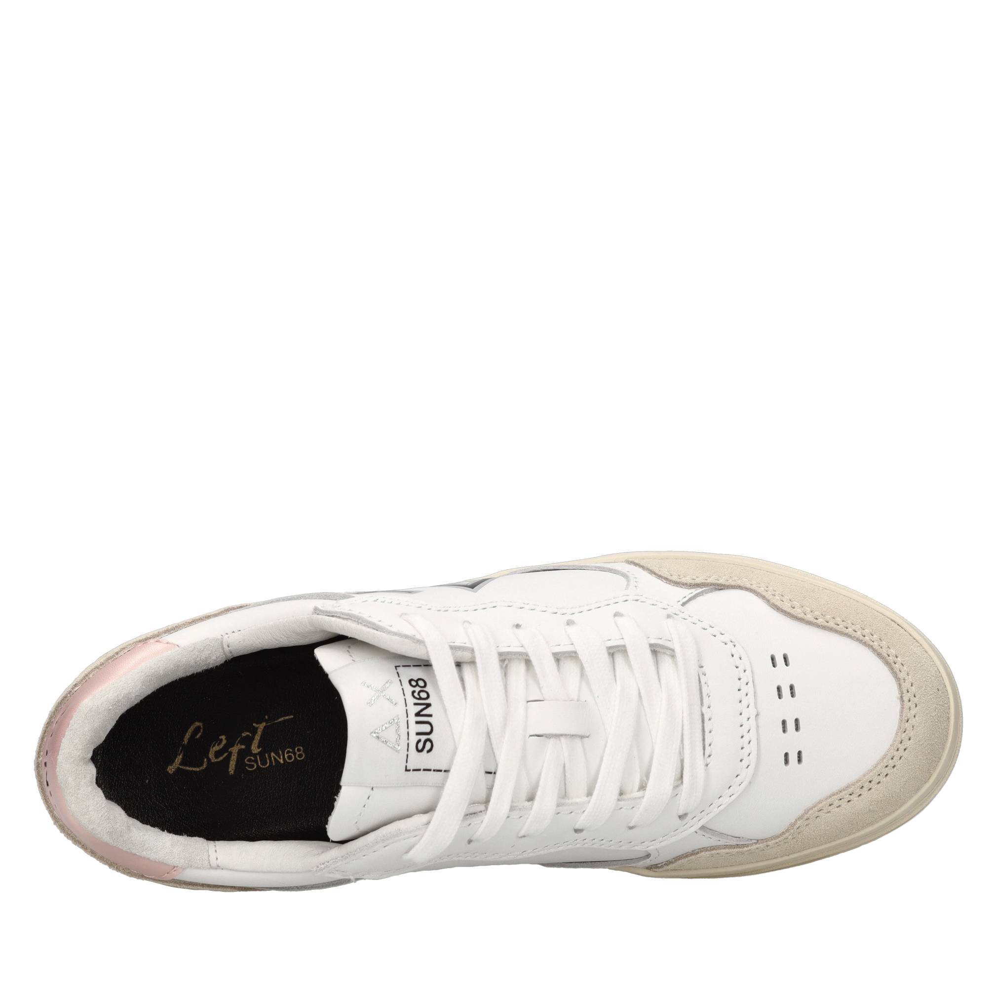 Modelo Sneakers Z44234 Sun68 cuero. Cierre frontal con cordones. Suela exterior de caucho. Parte superior interna en tela con bucle en Eva logate que garantiza estabilidad y amortiguación.