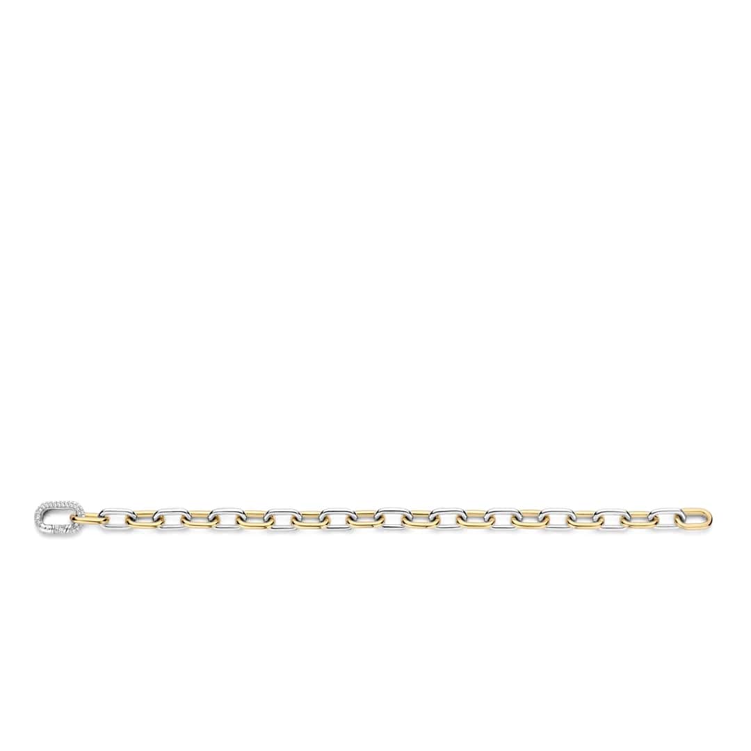 Pulsera en Plata 925% Gold Plated, presenta una interesante interacción de la malla de plata y la plancha de oro.