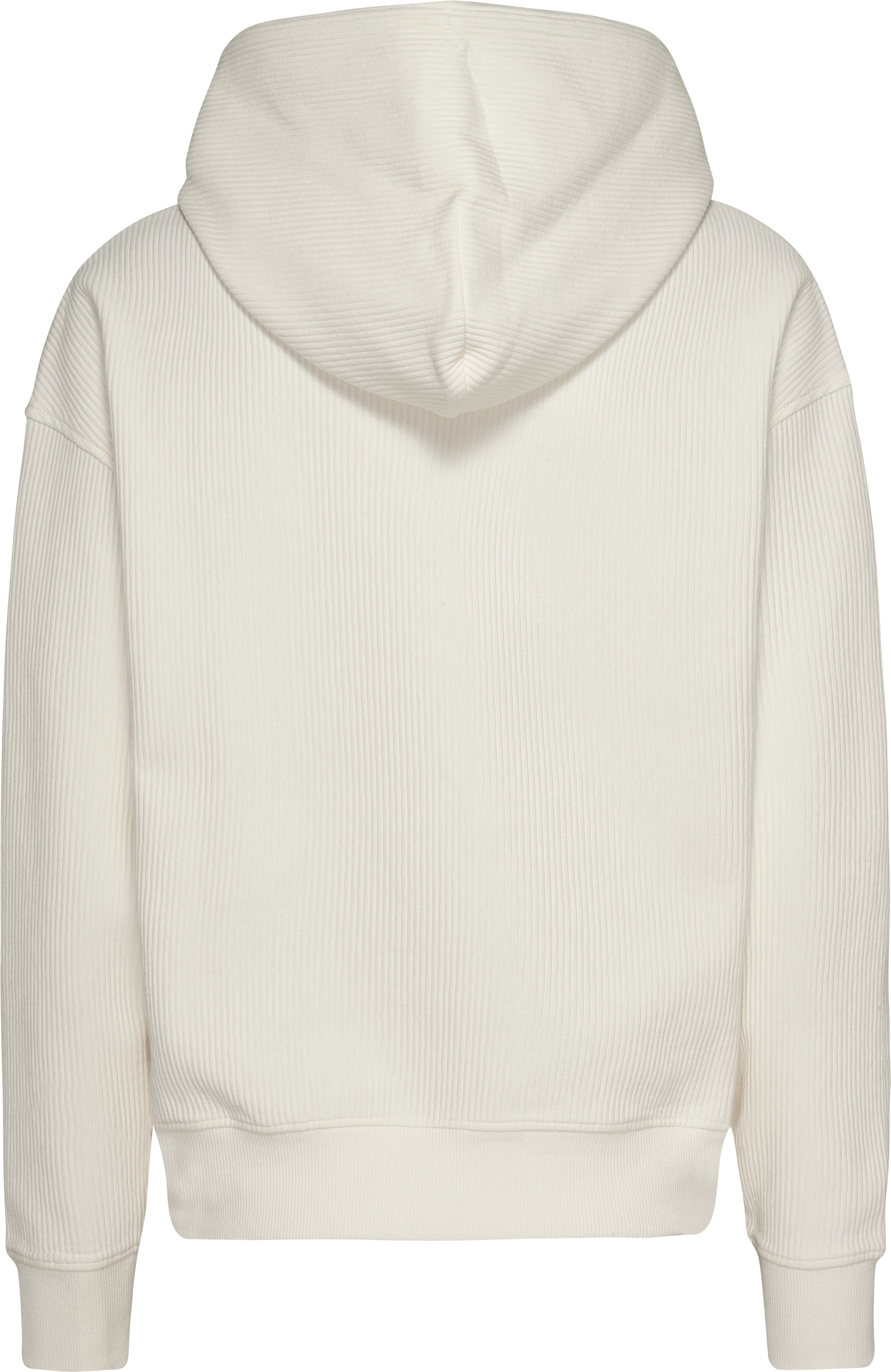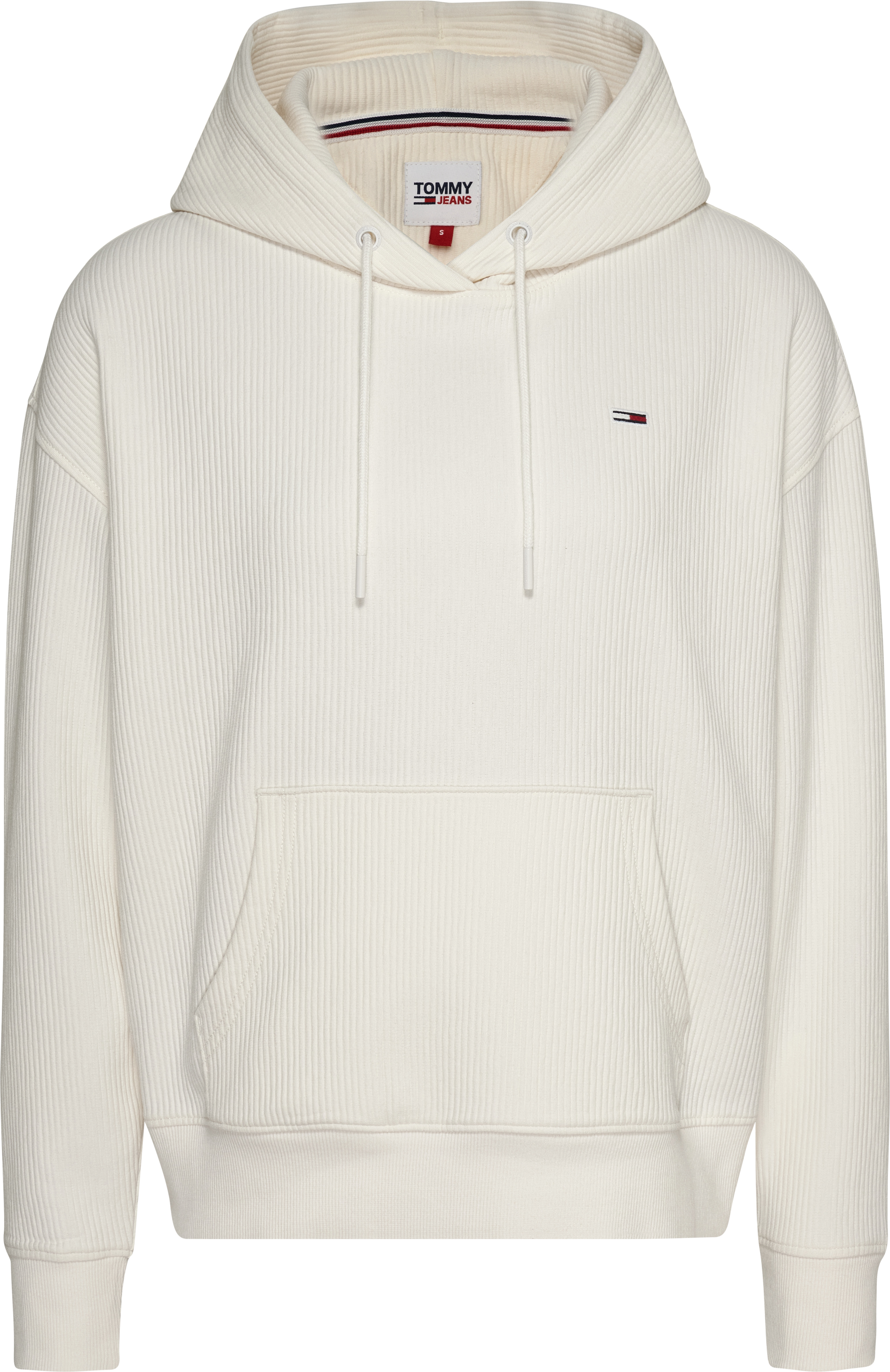 Características principales Tejido otomana en mezcla de algodón elástico Textura acanalada Cuello con capucha y cordones Bolsillo canguro Detalle de la marca Tommy Jeans Parche con la bandera de Tommy Jeans en el pecho Modelo y corte Boxed fit Hombros caídos Composición y lavado 57% algodón en conversión, 41% poliéster, 2% elastano DW0DW16418YBH