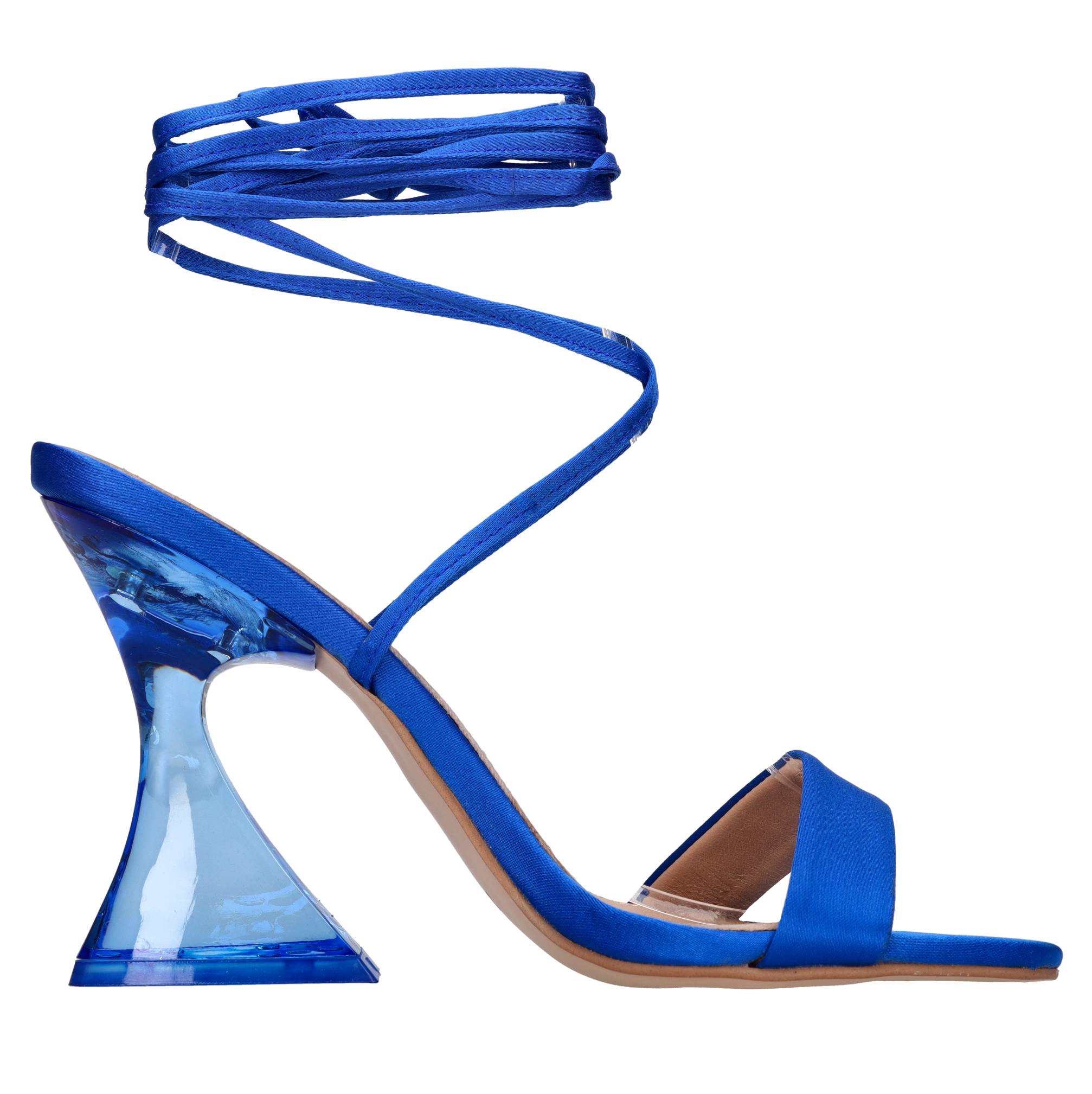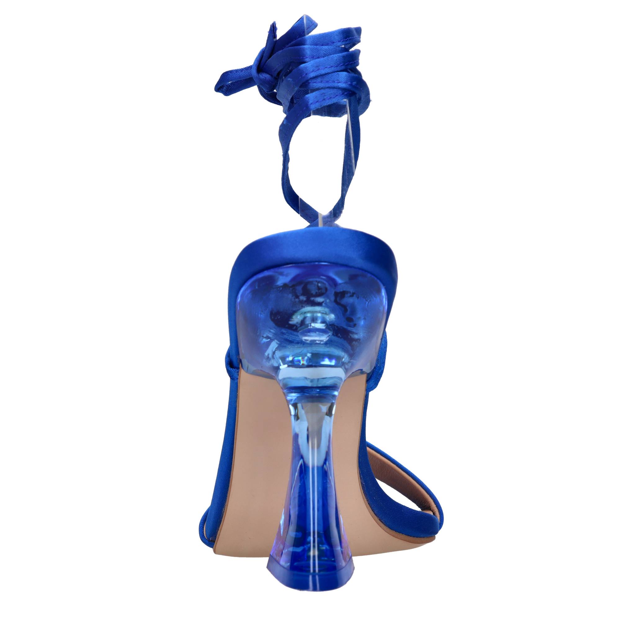 Sandalias de cuero y satén. Cuero superior. Suela exterior en cuero. Tacón de pléxi transparente.