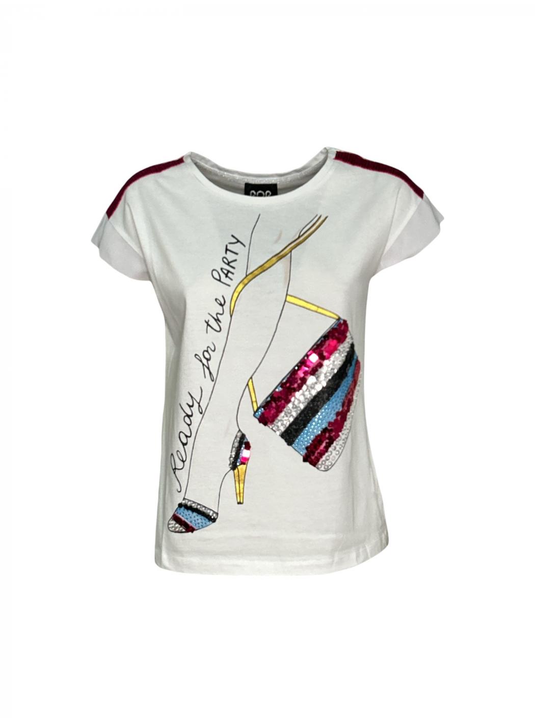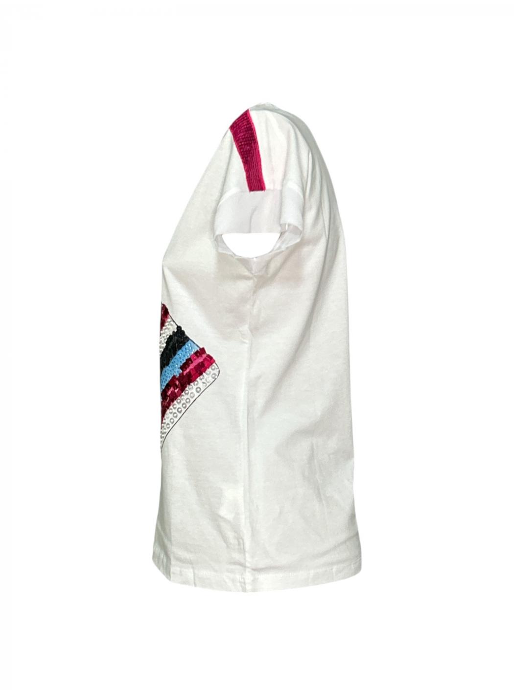 Camiseta manga corta con impresión y aplicaciones y lentejuelas