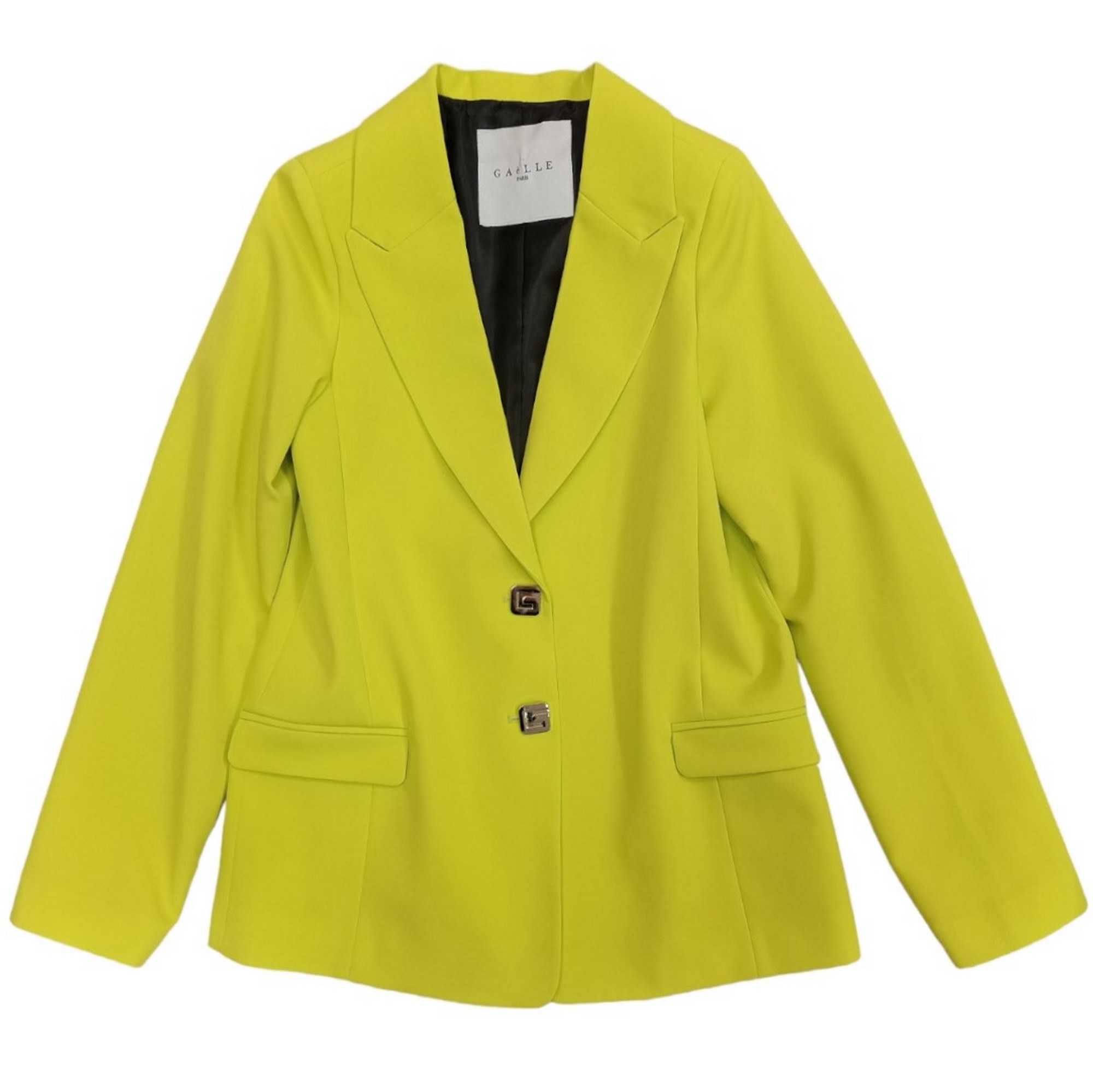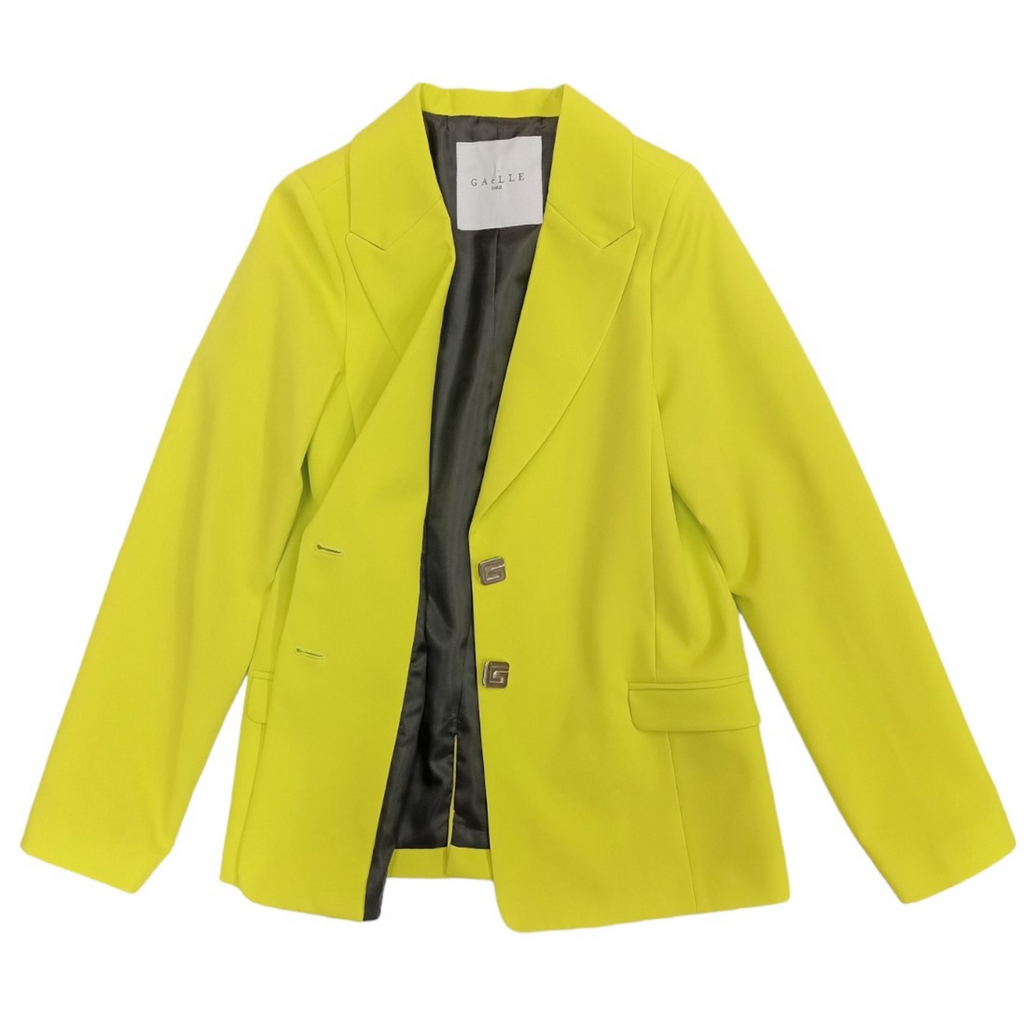 Chaqueta de limón verde GAELLE con botones de oro en forma de G.