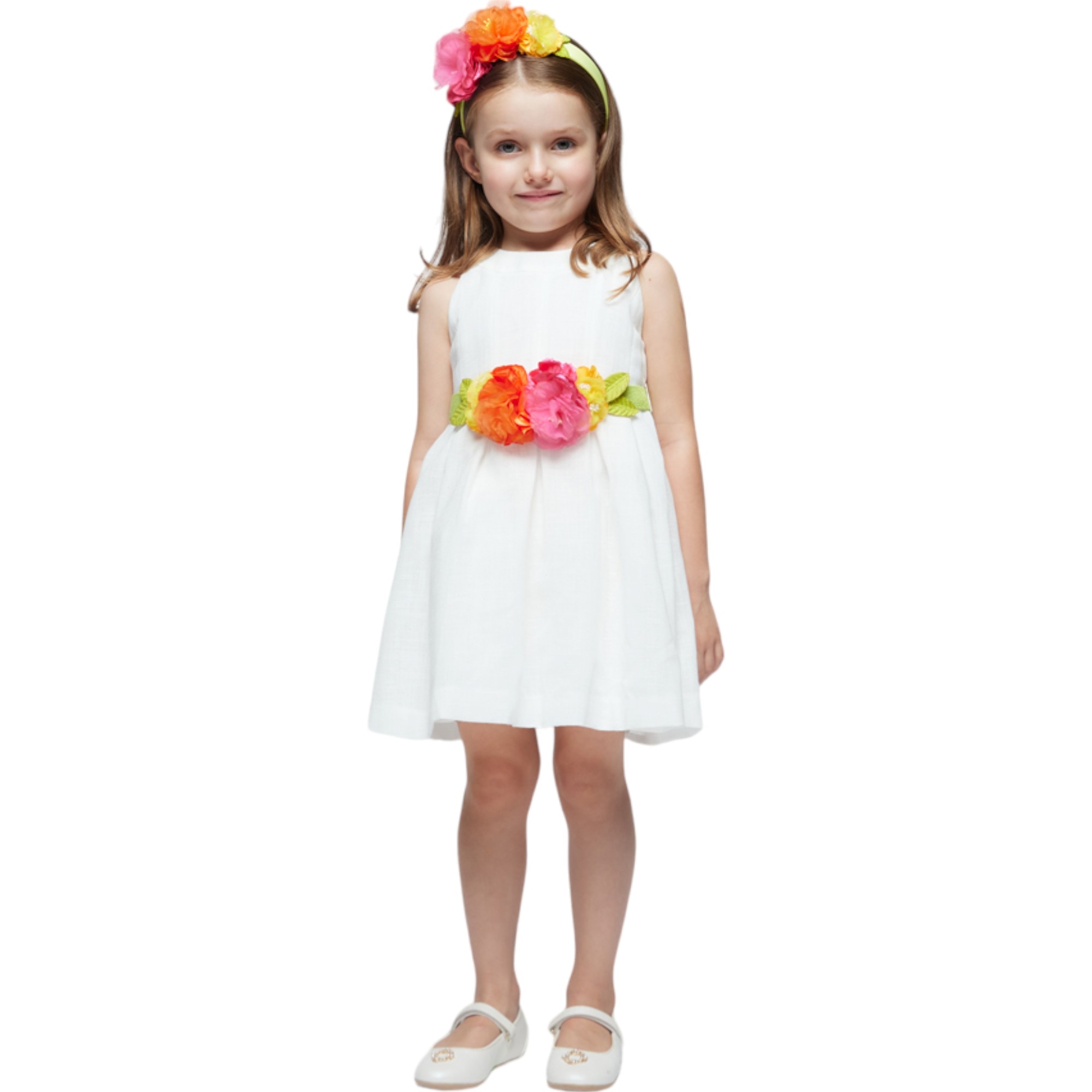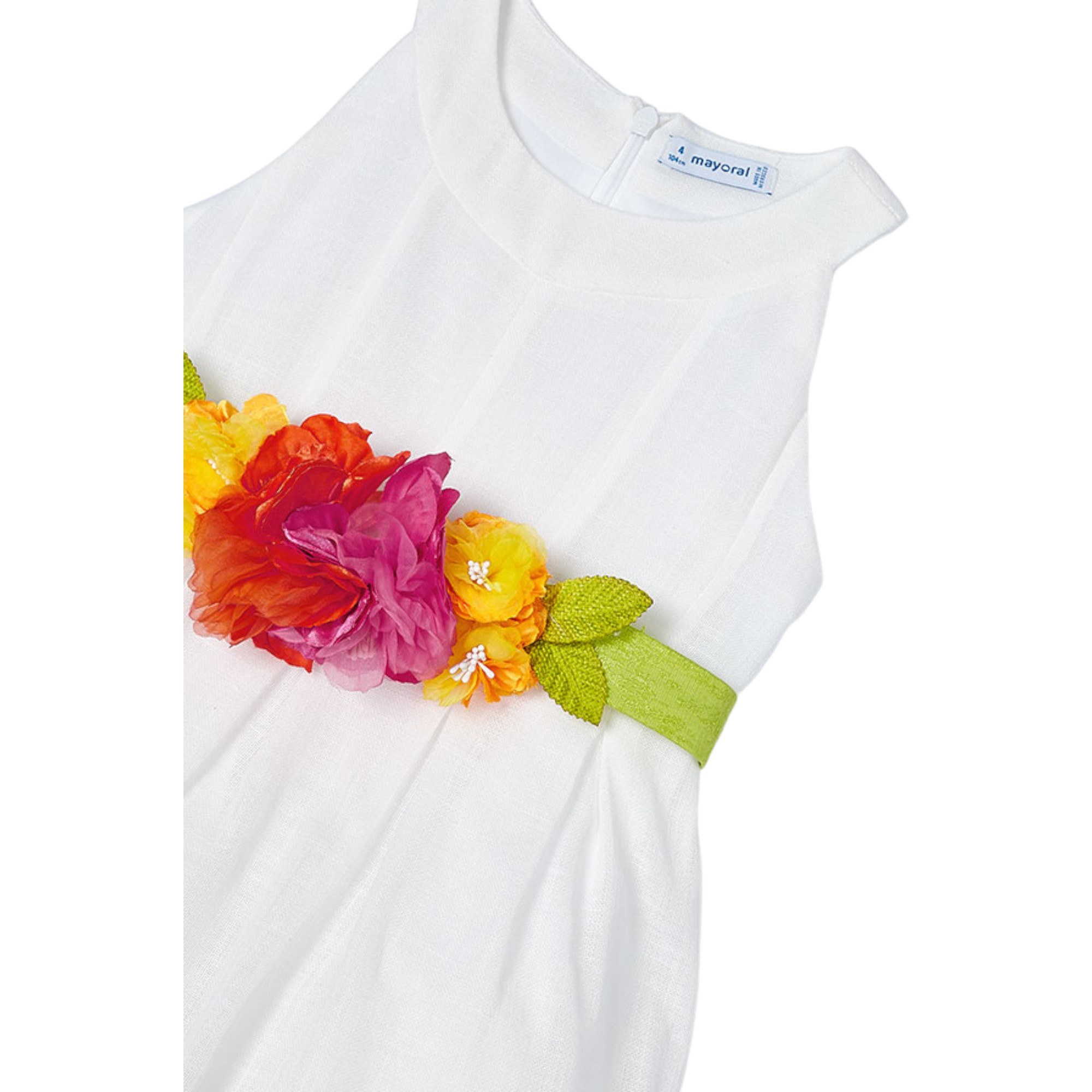 Mayoral - Vestido 014 White Belt Flores 3959
