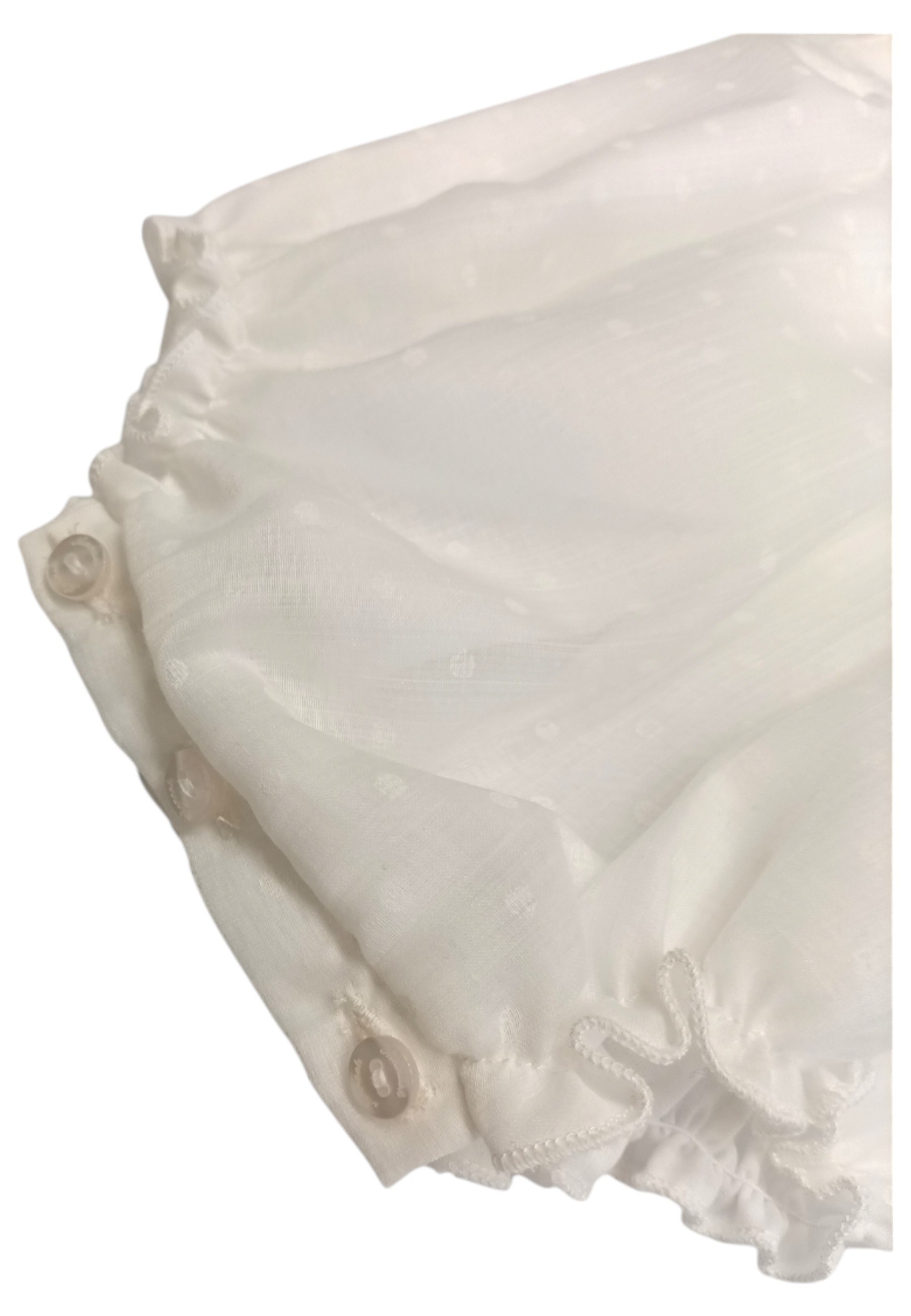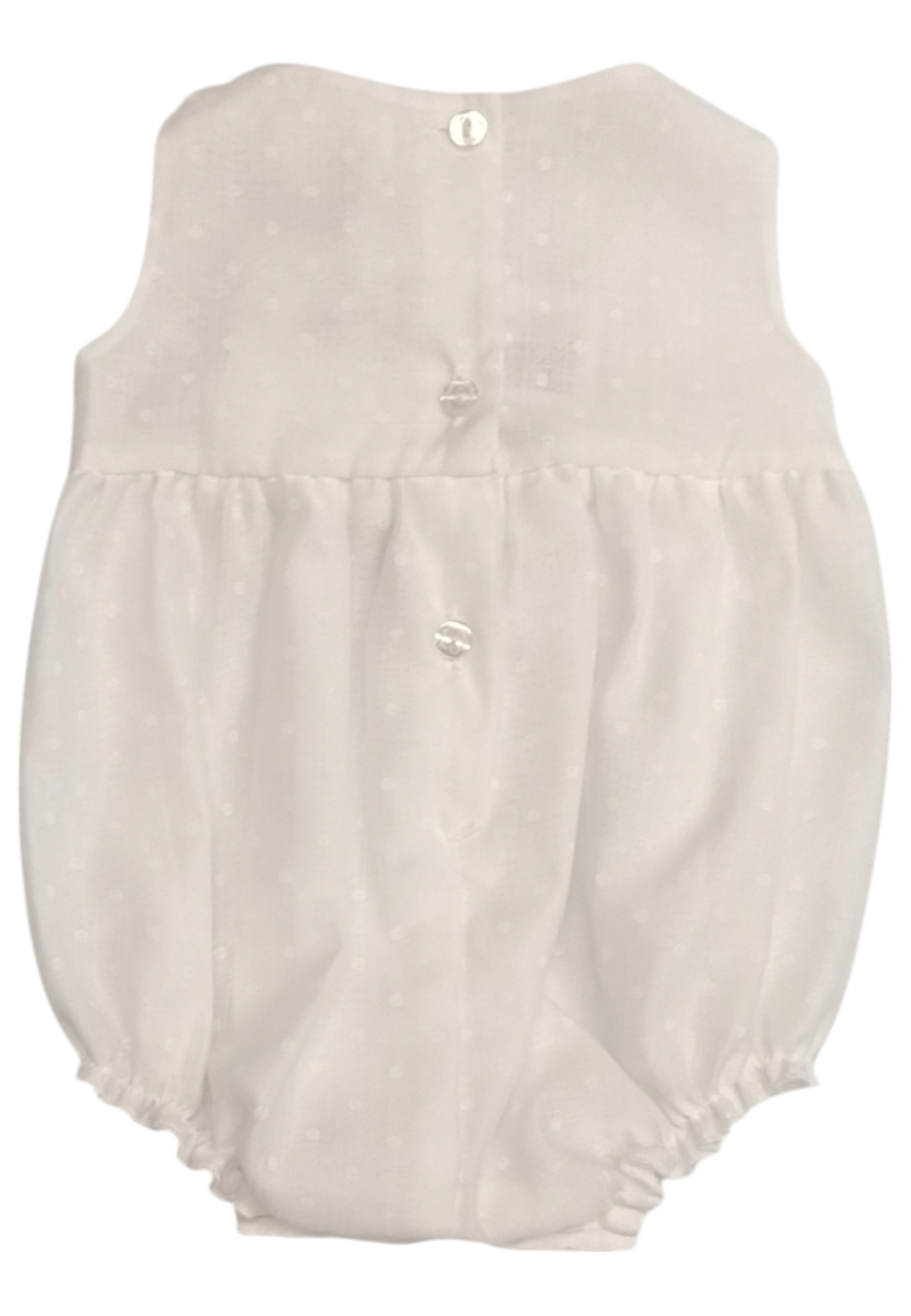 Almohadilla de algodón recién nacido en color blanco con flores aplicadas en el frente.