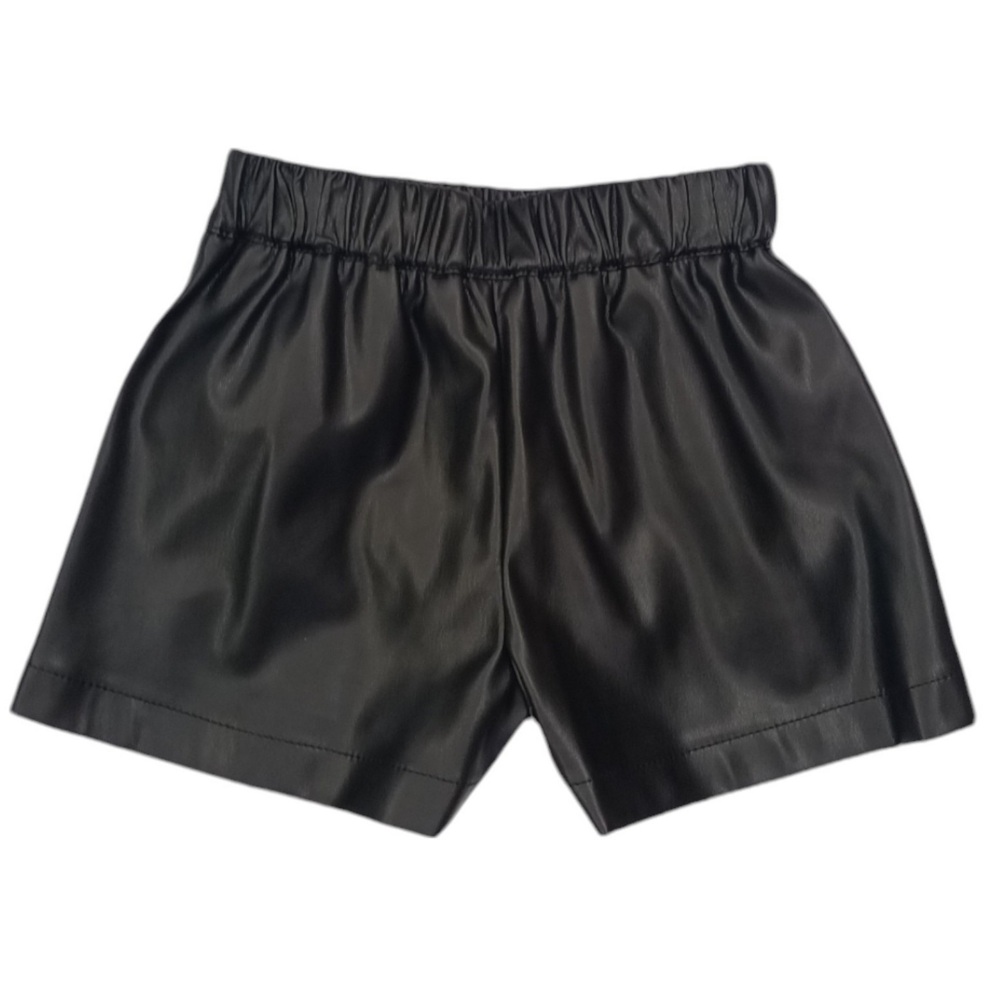 Bermuda noir en éco-cuir avec ceinture élastique.